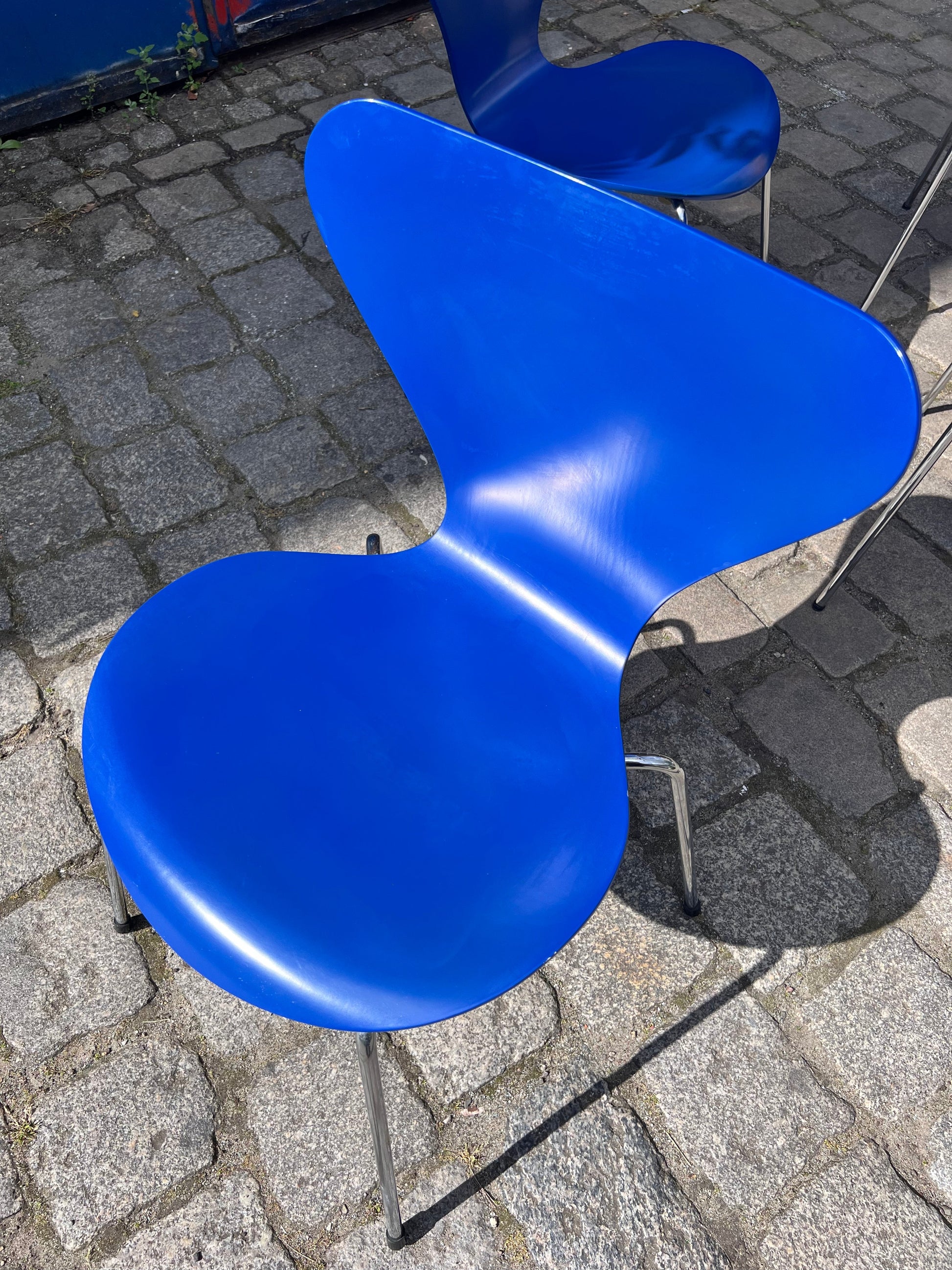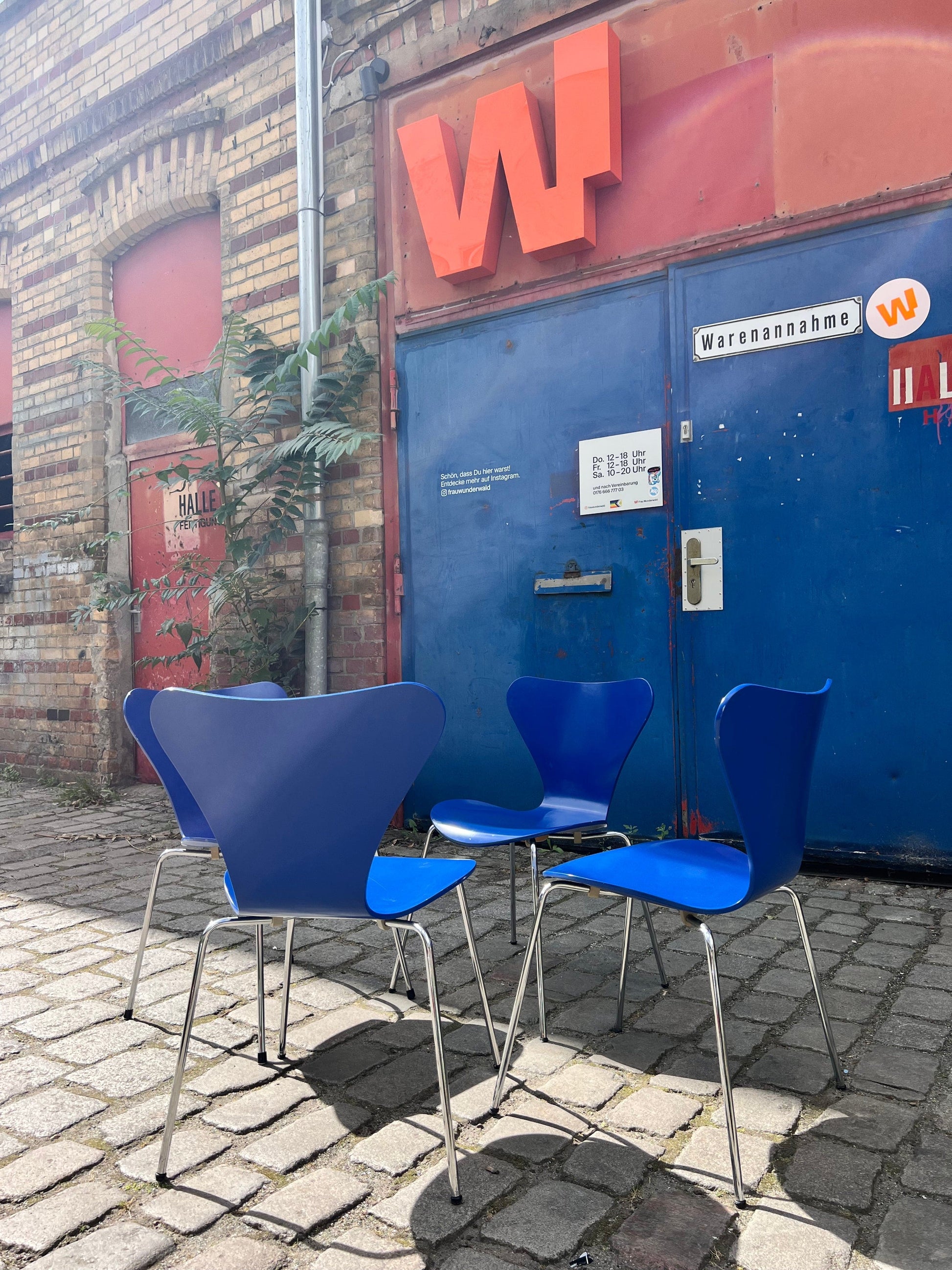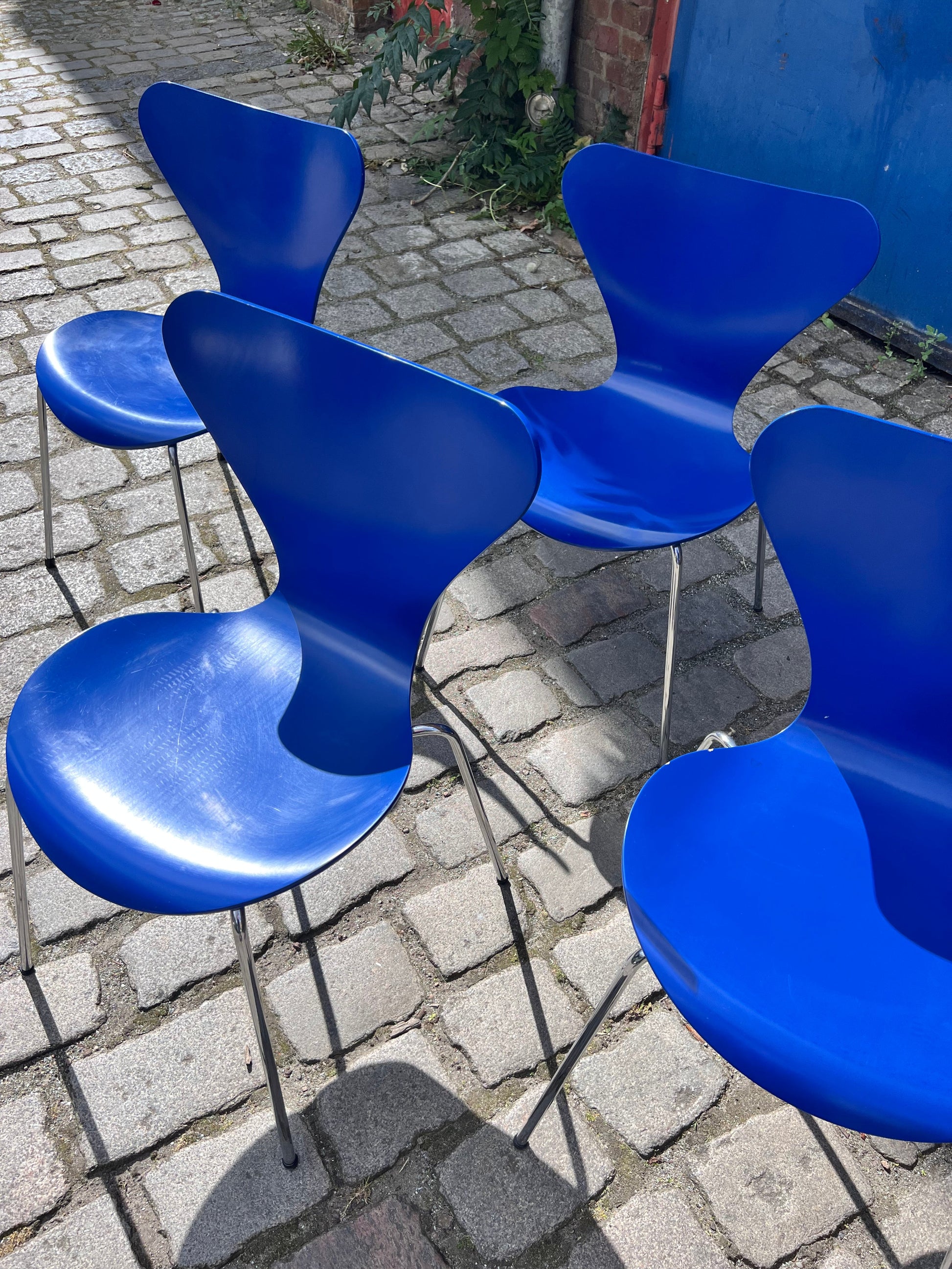 Chaise vintage Série 7 Bleu roi par Arne Jacobsen pour Fritz Hansen Lot de 4