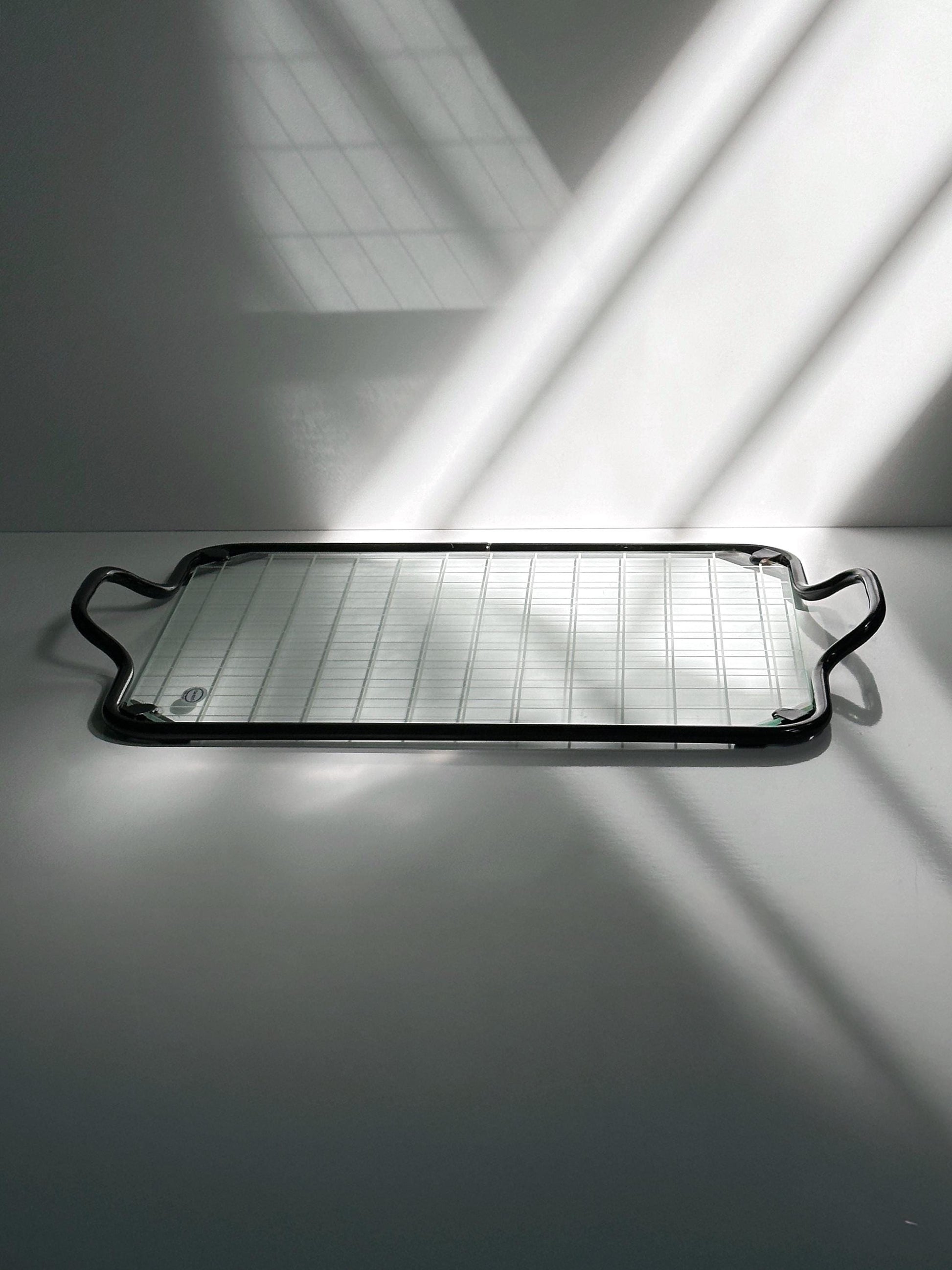 Découvrez le plateau vintage unique des années 1980 de Club House Italia, un véritable incontournable pour les amateurs de design moderne et futuriste du milieu du siècle. Associant métal noir et verre aux accents graphiques, ce plateau apporte l'élégance italienne à votre table. Club House Italia est synonyme de qualité supérieure et de designs intemporels alliant parfaitement fonctionnalité et style. Ce plateau de service est non seulement pratique, mais aussi une pièce maîtresse élégante pour votre intérieur.