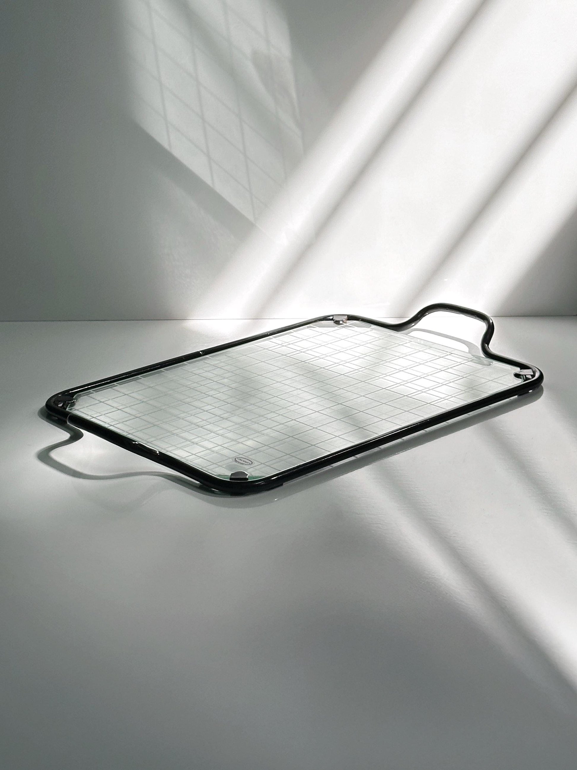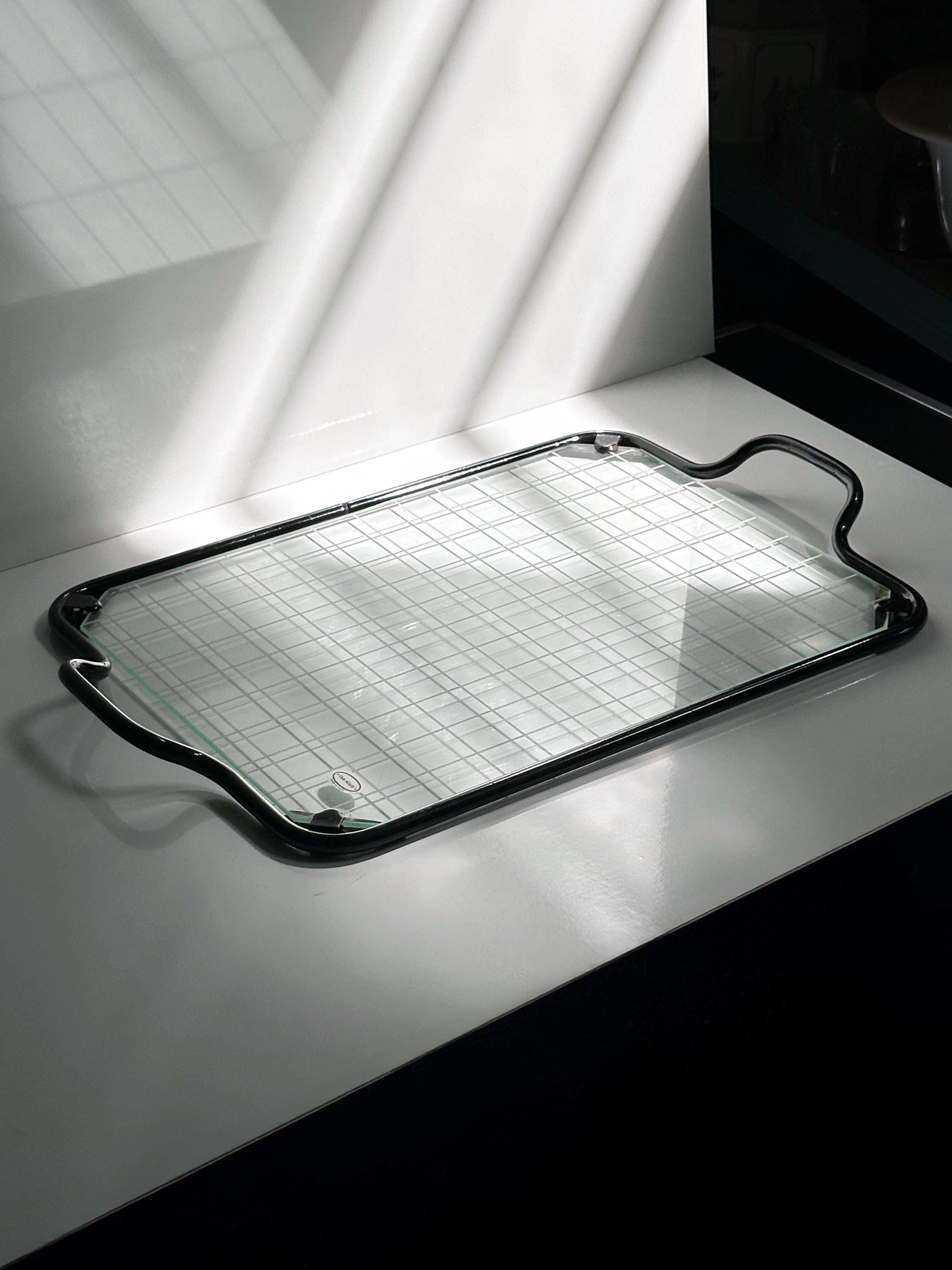 Plateau vintage en métal et verre par Club House Italia années 1980