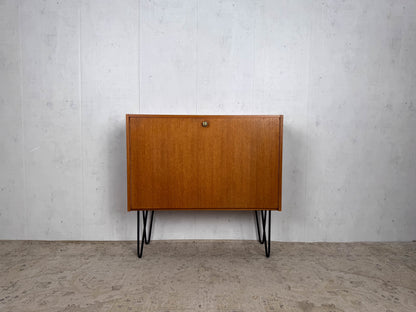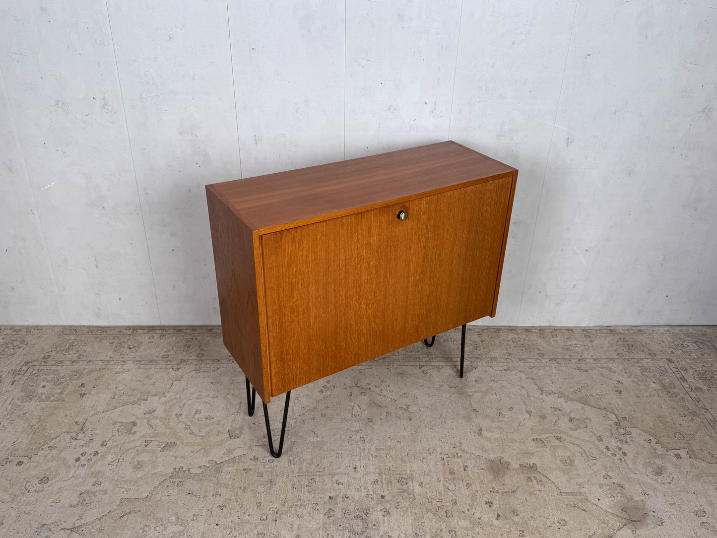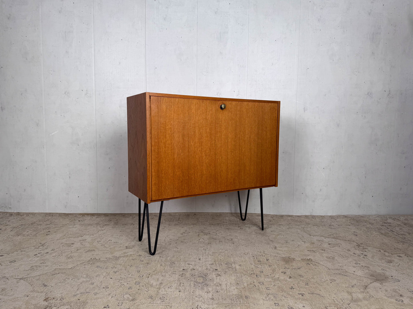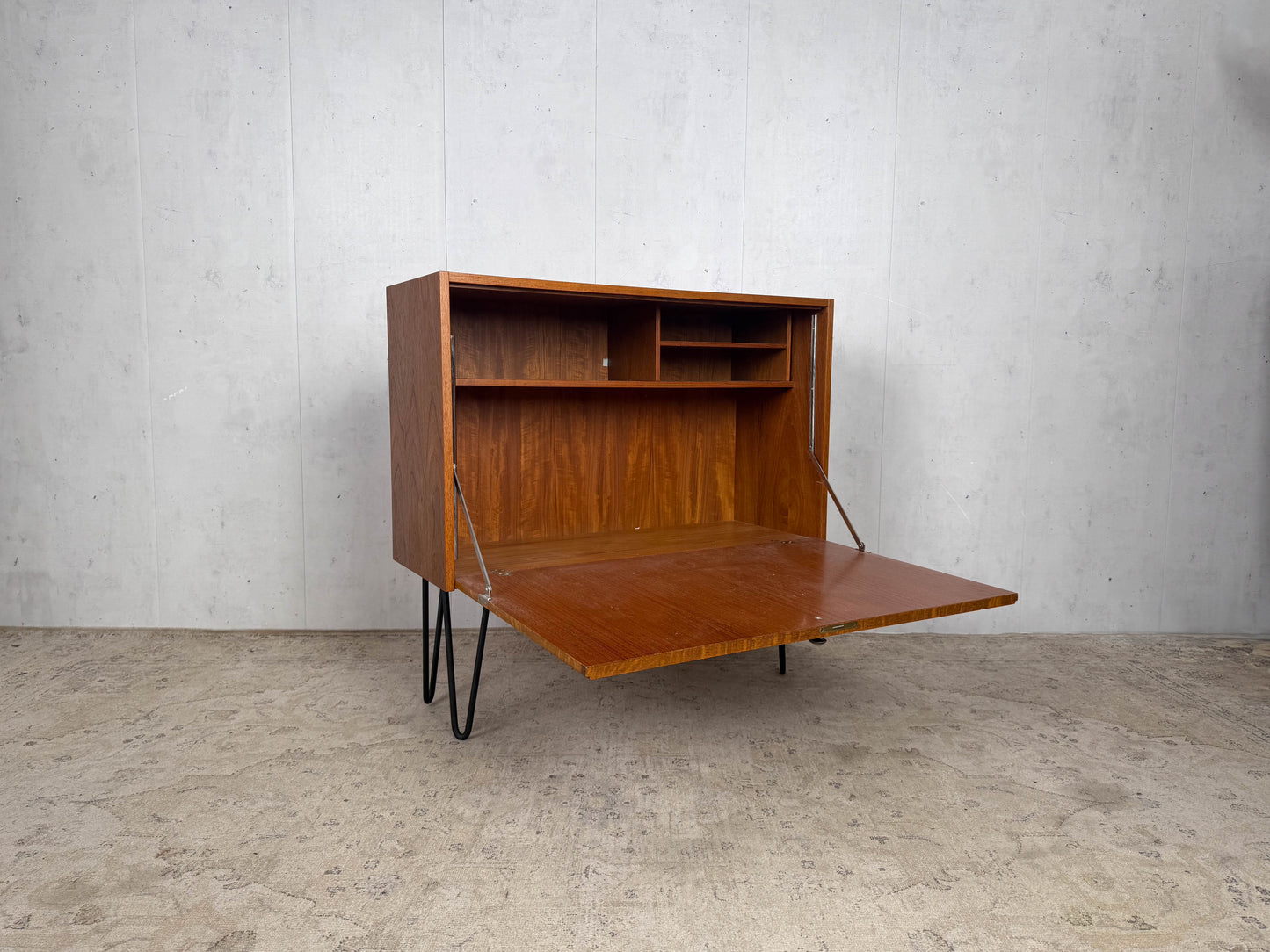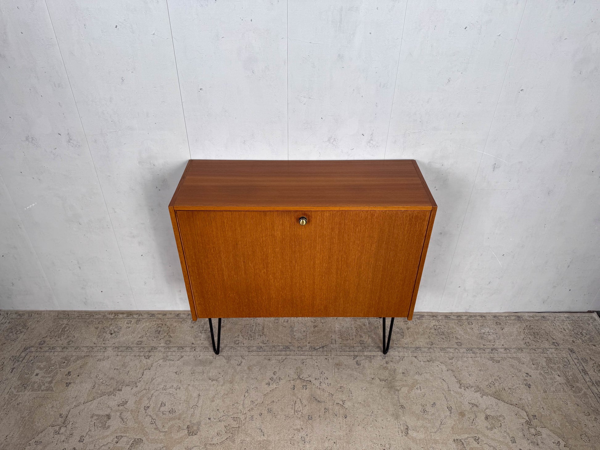 Découvrez le design intemporel de l'étagère vintage en teck des années 1960, qui s'intègre parfaitement dans tout intérieur moderne du milieu du siècle. Ce chef-d'œuvre danois allie fonctionnalité et esthétique et est un incontournable pour les amateurs de style rétro. Avec sa surface en teck brun chaleureux et ses élégants pieds en épingle à cheveux noirs, il apporte une touche de Space Age dans votre maison. La fabrication de haute qualité garantit une très bonne qualité qui durera des décennies.
