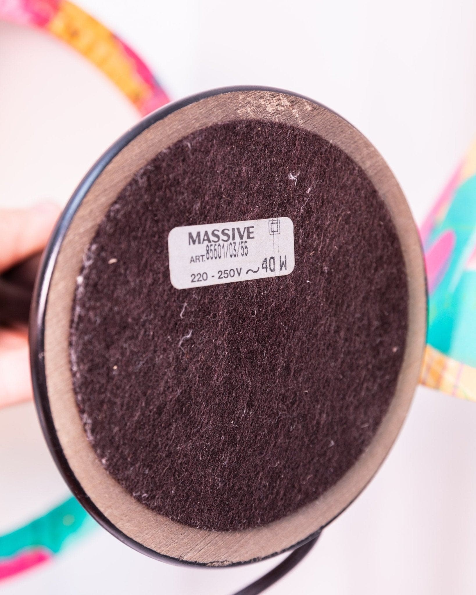 Découvrez un ensemble exceptionnel de deux lampes de table vintage de style Pop Art Memphis, conçues par le célèbre fabricant belge Massive dans les années 1980. Ces lampes rares du milieu du siècle sont de véritables atouts pour tout intérieur, apportant une touche Space Age et années 80 à votre intérieur grâce à leurs abat-jour colorés en forme de ski. L'association de formes originales et de couleurs vives fait de ces lampes un véritable accroche-regard, parfaites comme lampes de chevet ou de bureau. Massive est synonyme d'excellente qualité et d'un design intemporel qui a conservé son attrait même après des décennies.