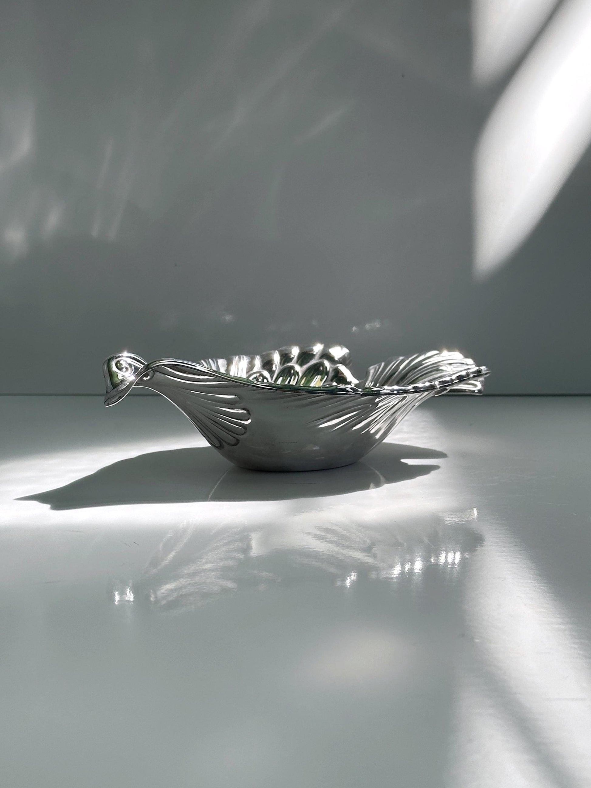 Bol vintage en métal argenté oiseau colombe années 70 Italie