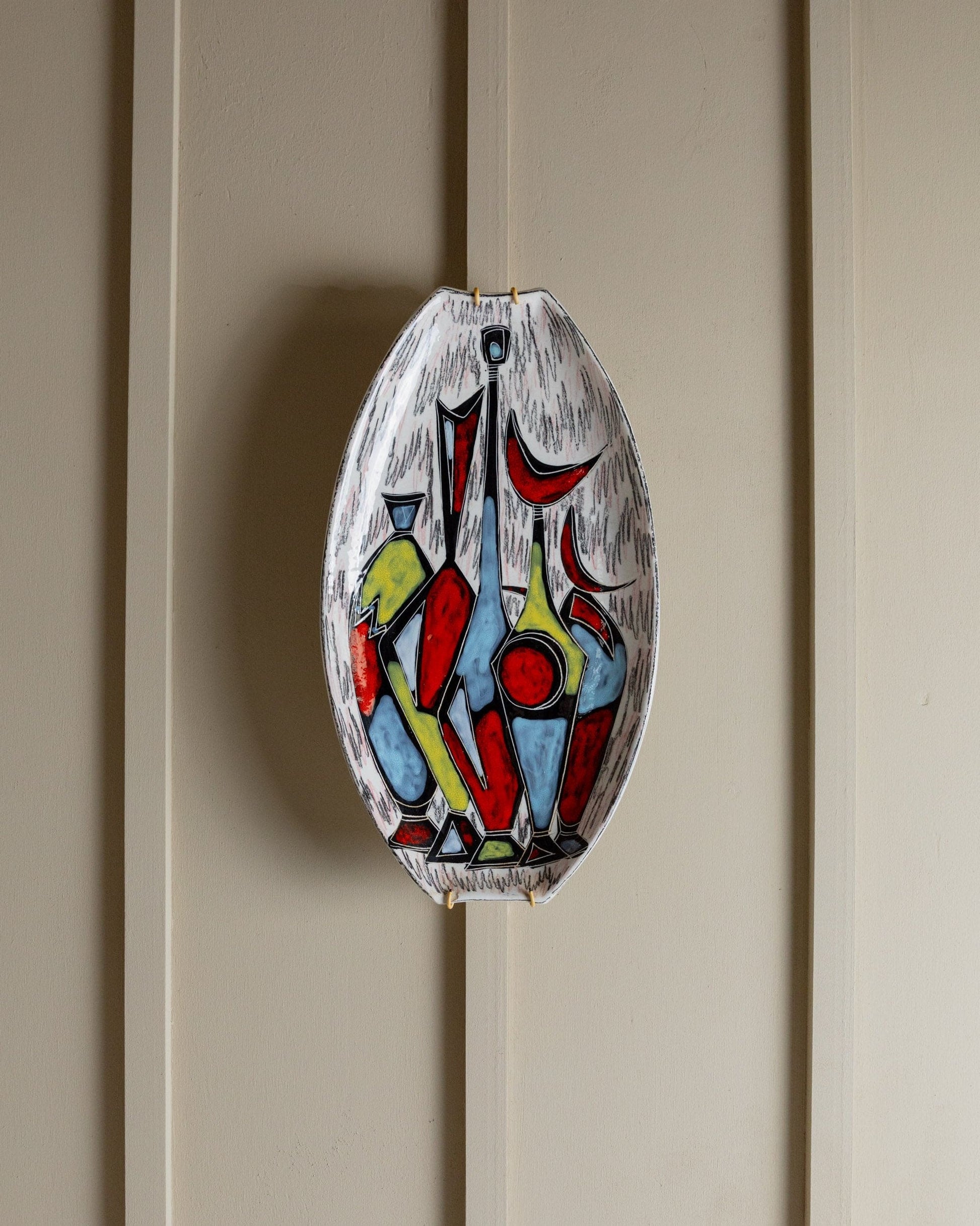 Assiette murale vintage en céramique motif abstrait coloré Design Mid Century Italie années 1970