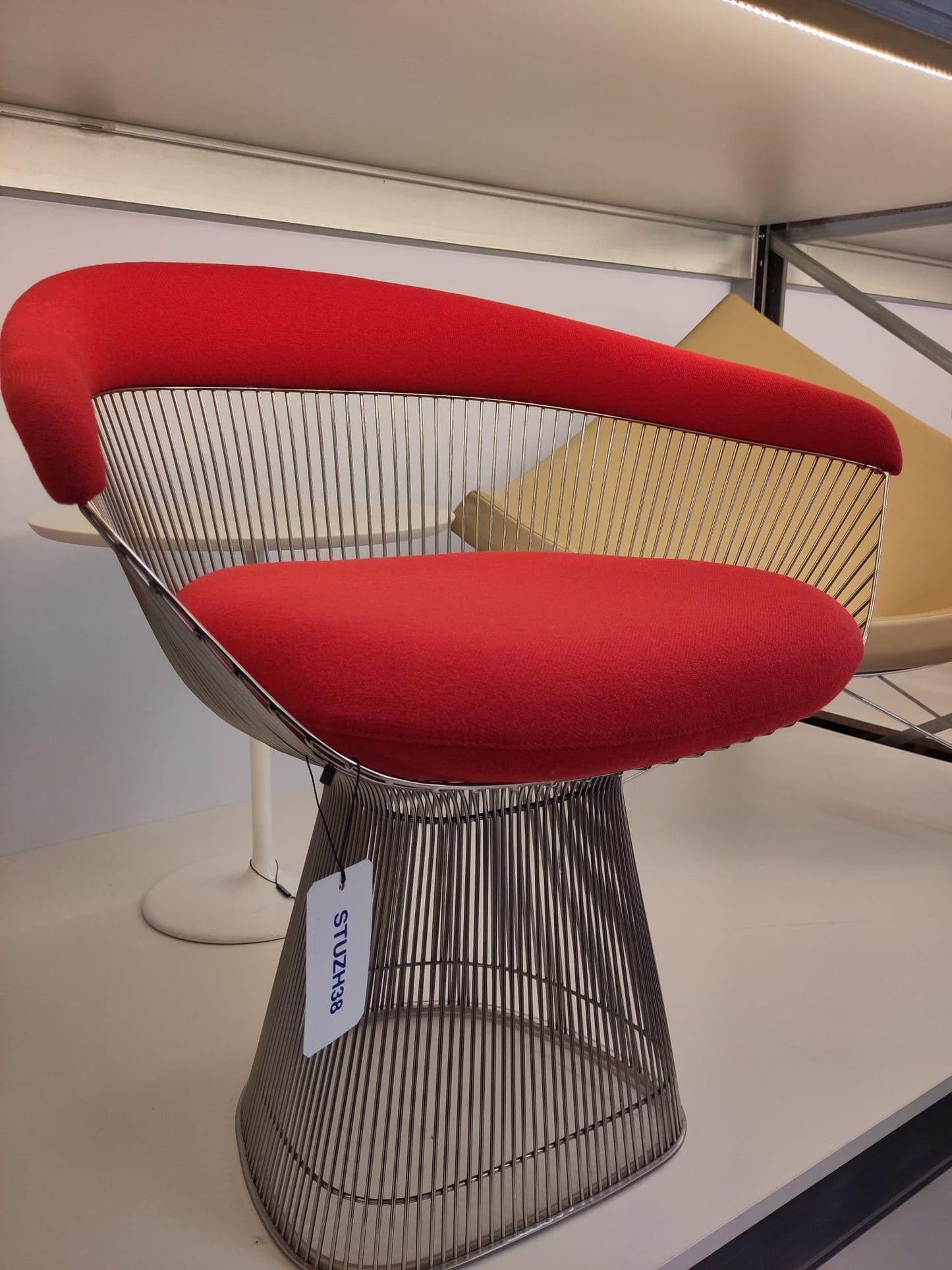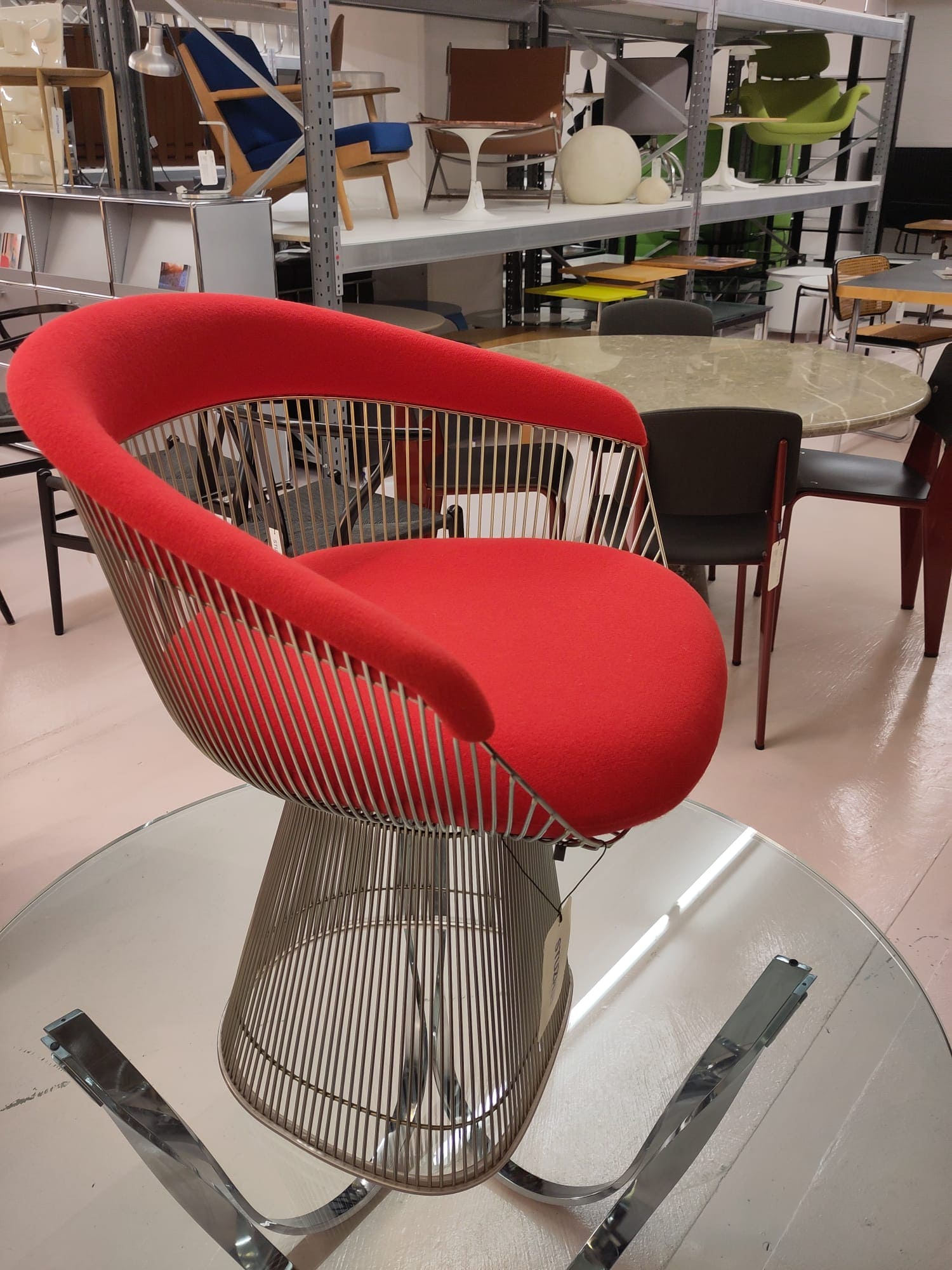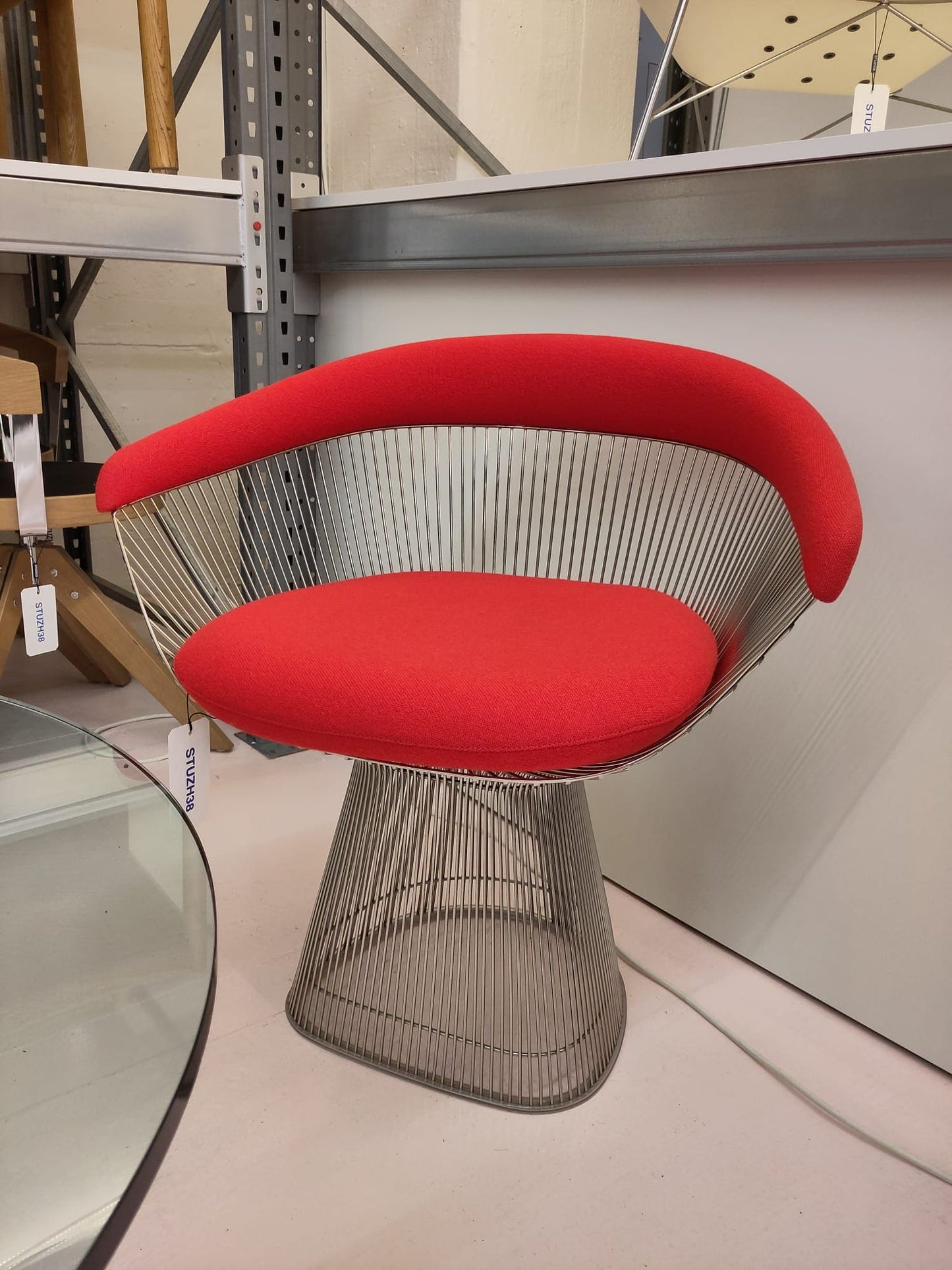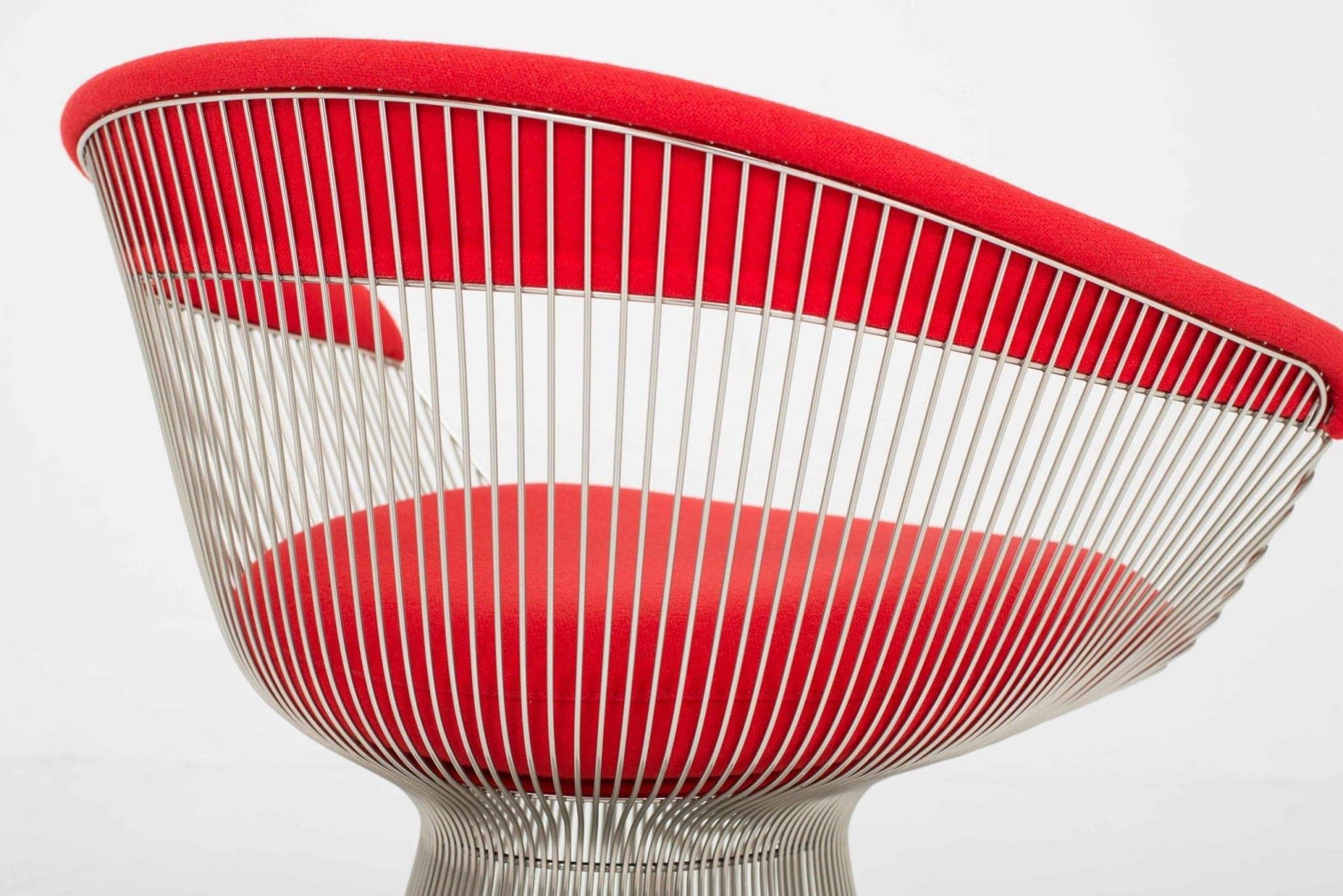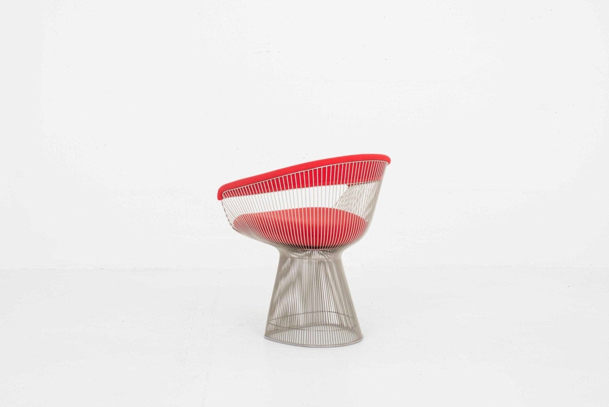 Fauteuil Vintage Platner de Warren Platner pour Knoll International rouge chrome