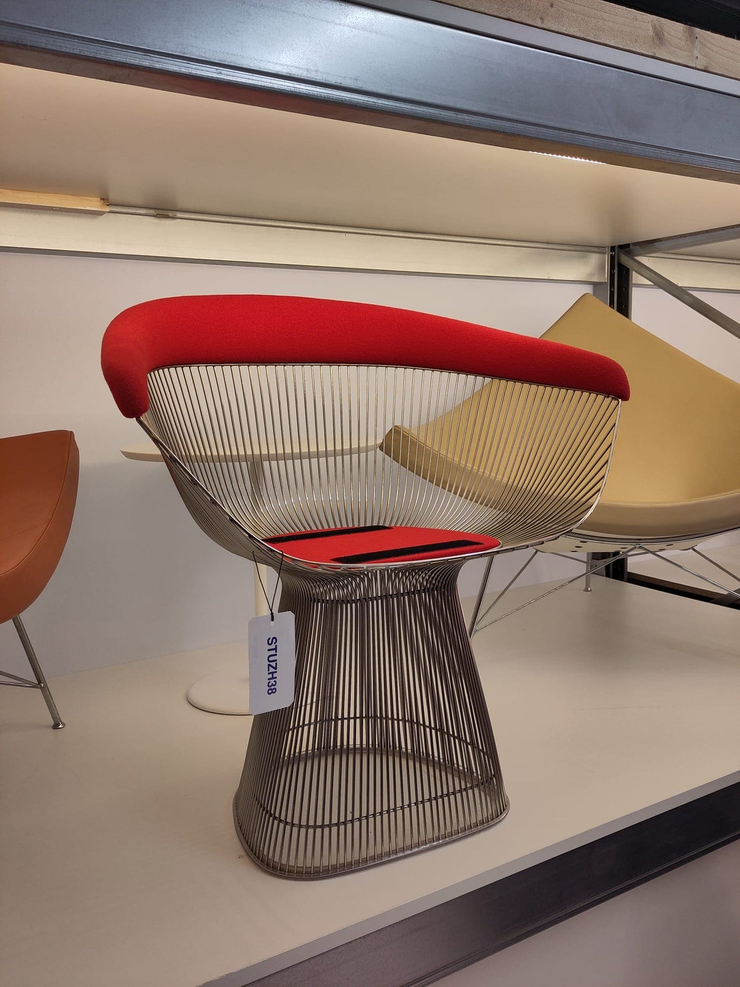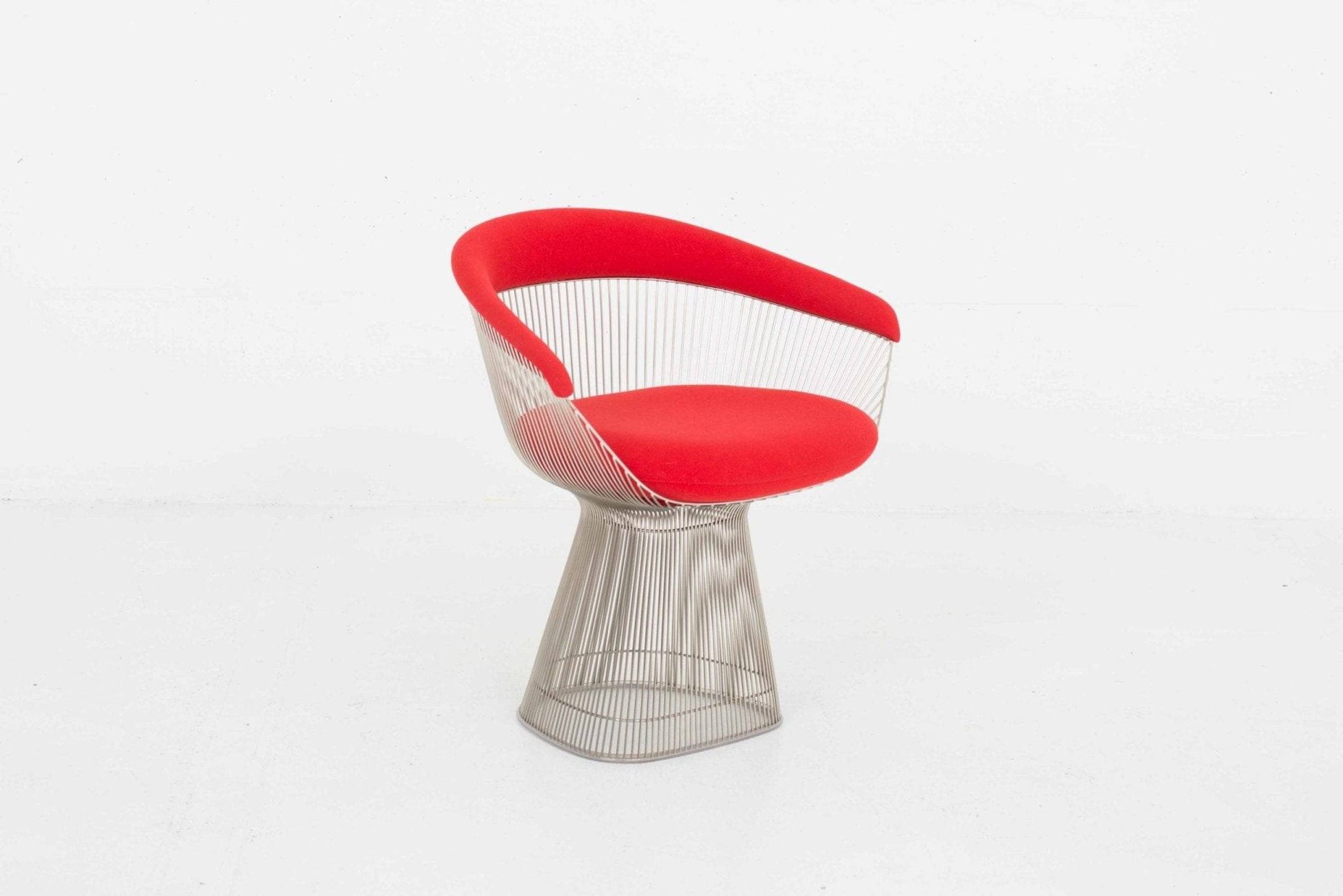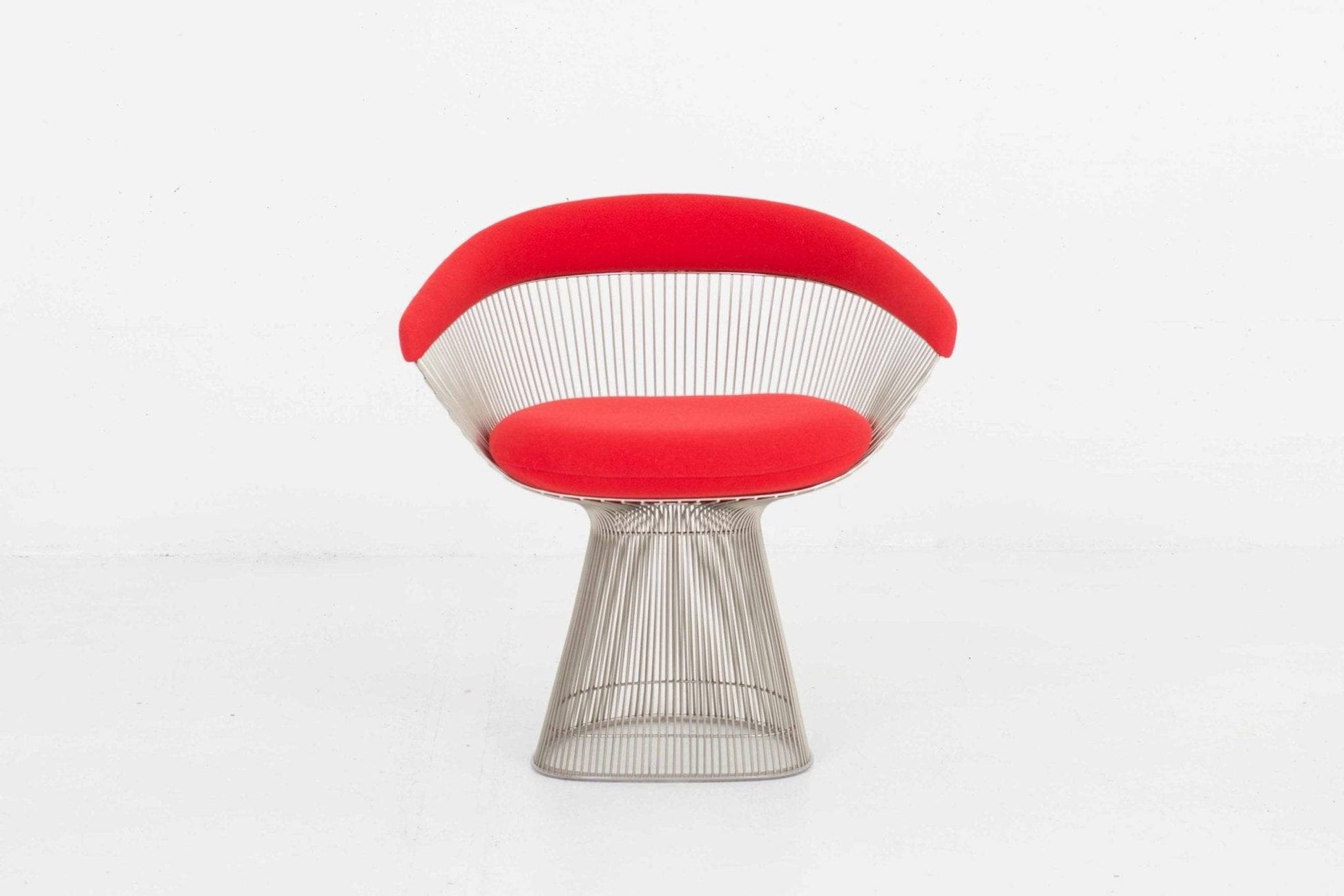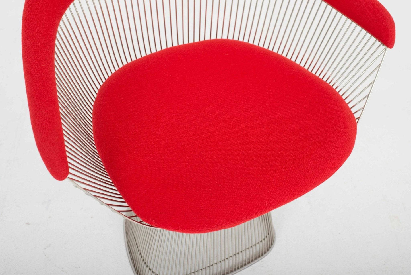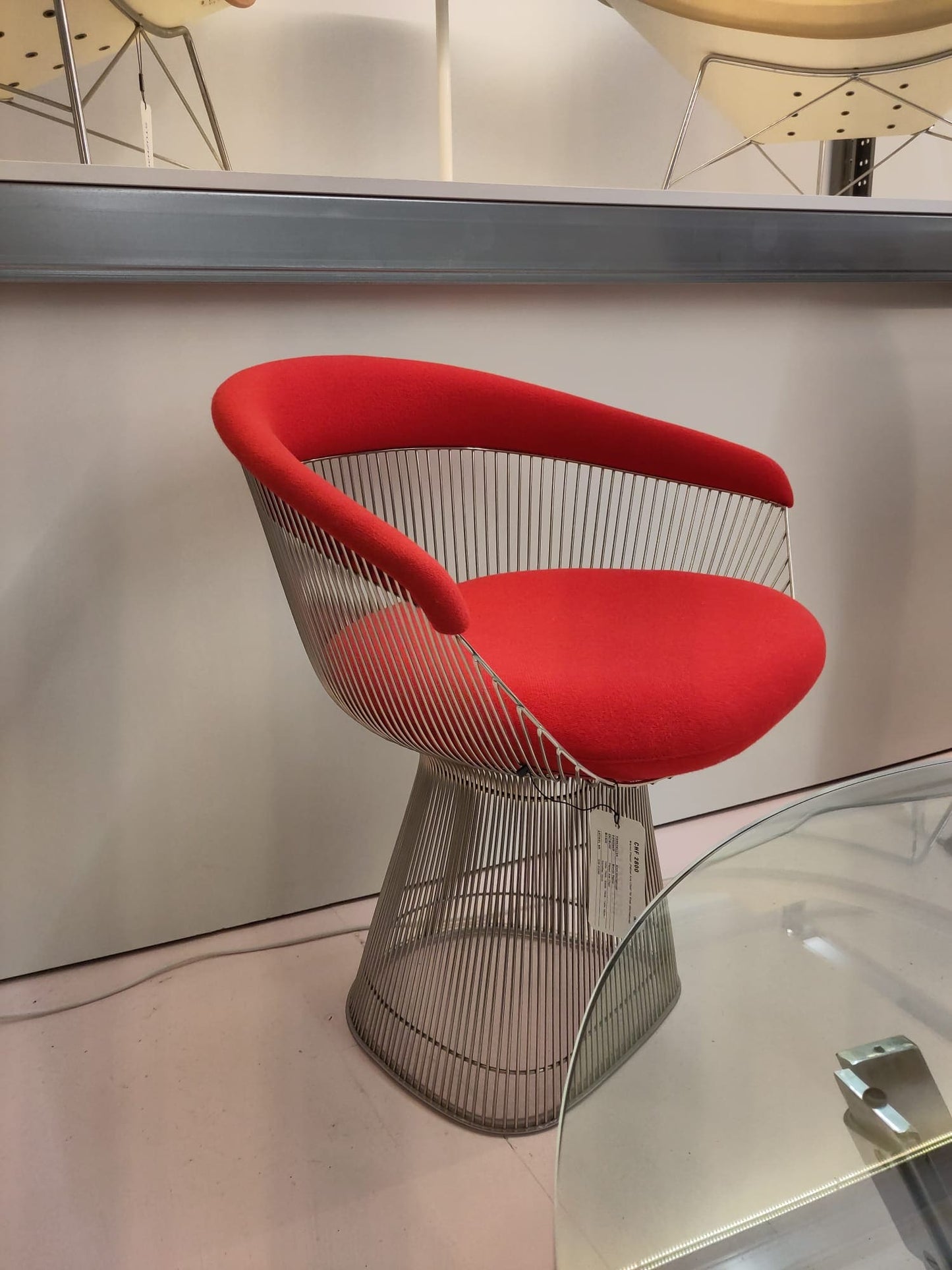 Fauteuil Vintage Platner de Warren Platner pour Knoll International rouge chrome