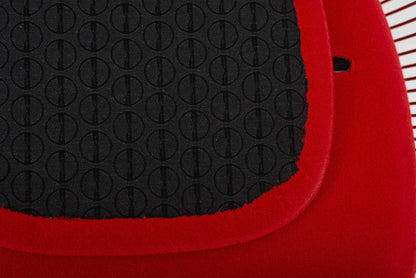 Knoll propose diverses options de revêtement, notamment des textiles et du cuir dans des couleurs telles que le gris, le beige et le bleu. Nous avons ici un rouge merveilleux et unique.