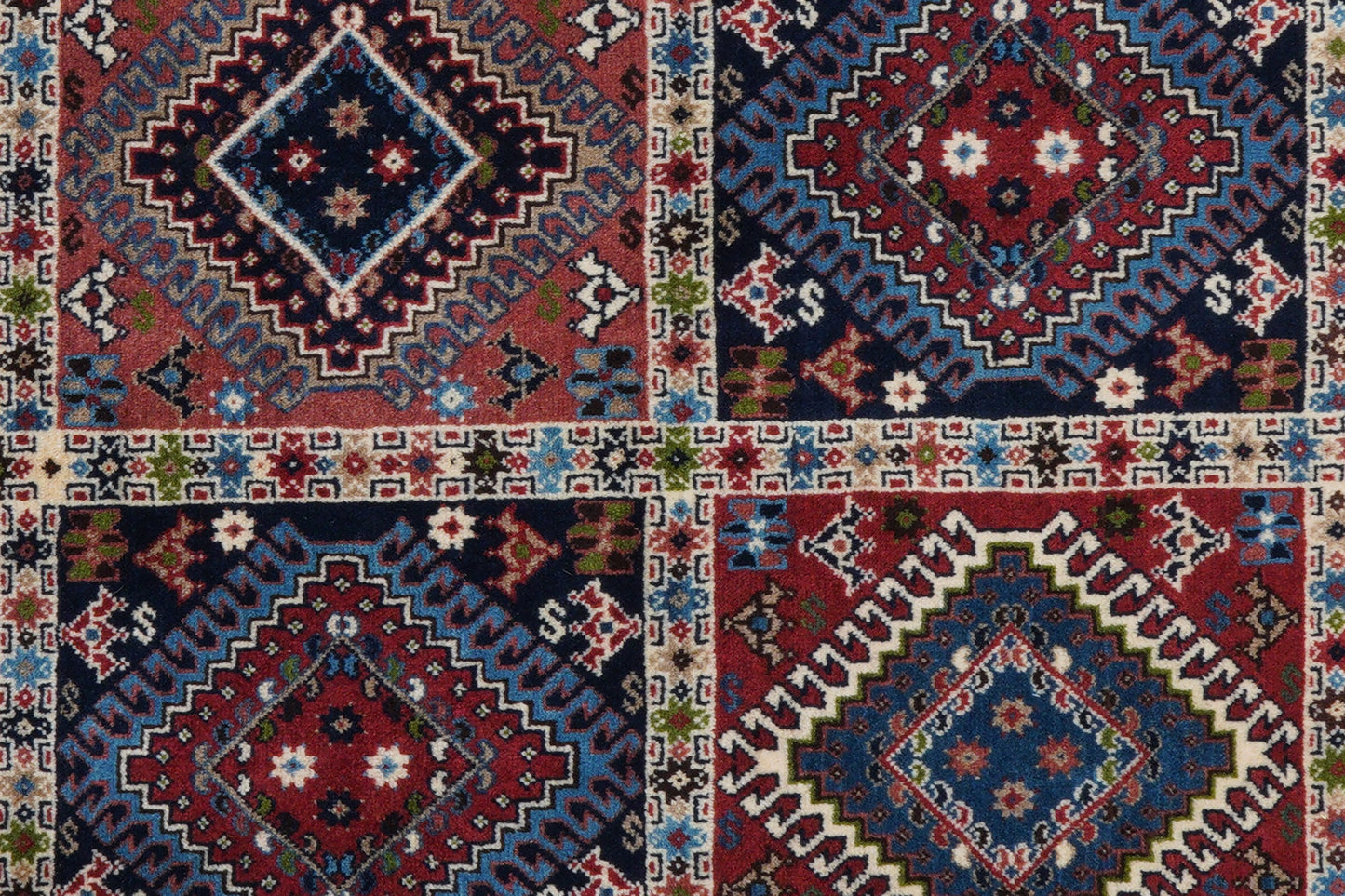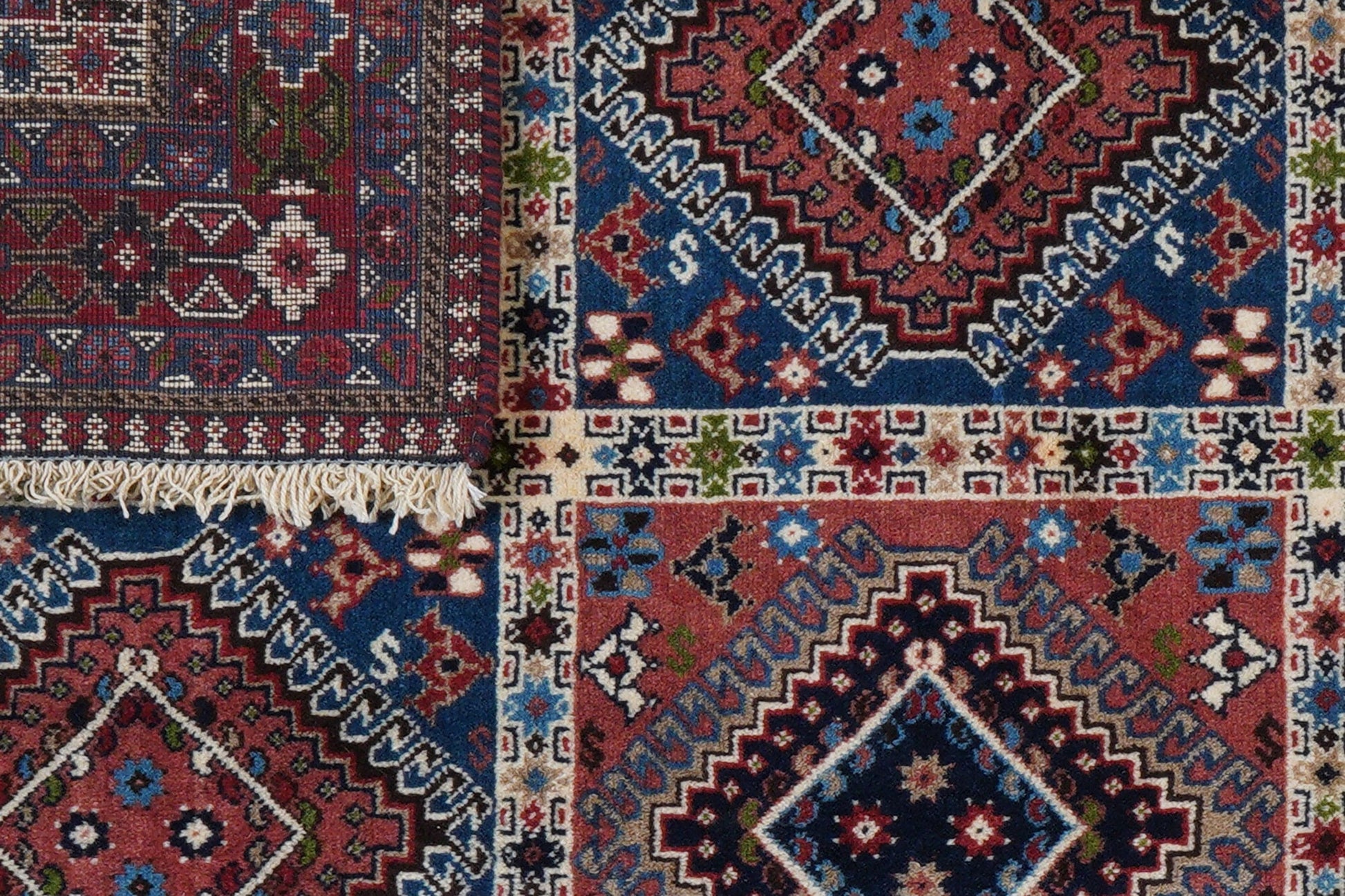 Le tapis vintage Yalameh au format 201x149cm est une expression d'un savoir-faire magistral et d'une histoire culturelle. Ces tapis sont connus pour leur tissage serré et leur utilisation de laine filée à la main, ce qui leur confère une texture et une durabilité uniques. Les designs sont souvent inspirés de la nature et du mode de vie des nomades Gashgai et Lori qui fabriquent ces tapis. Ils sont non seulement décoratifs mais aussi fonctionnels car ils apportent chaleur et confort à n'importe quelle pièce.