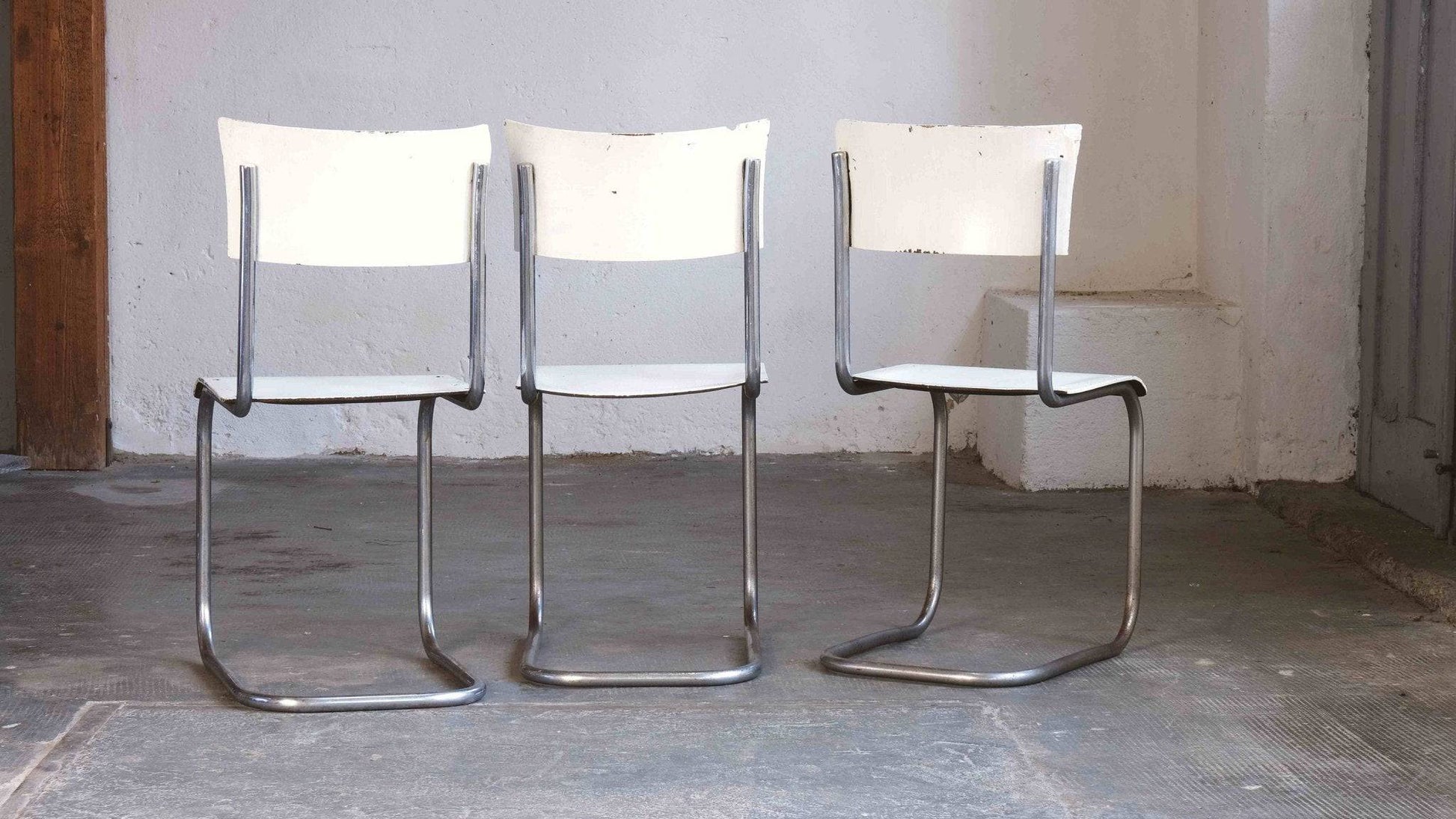 Vintage Freischwinger Bauhaus von Mart Stam weiß 1 von 3