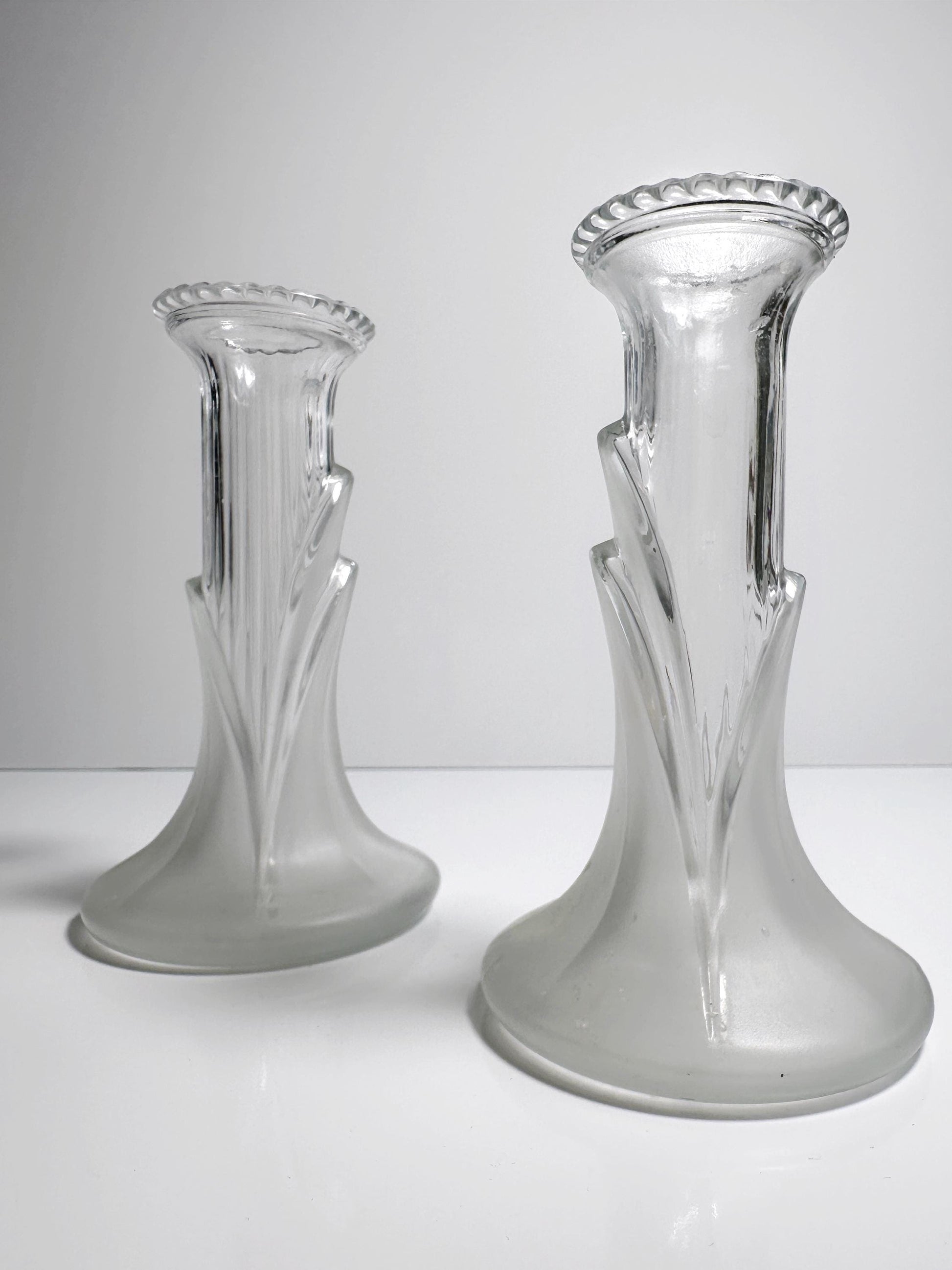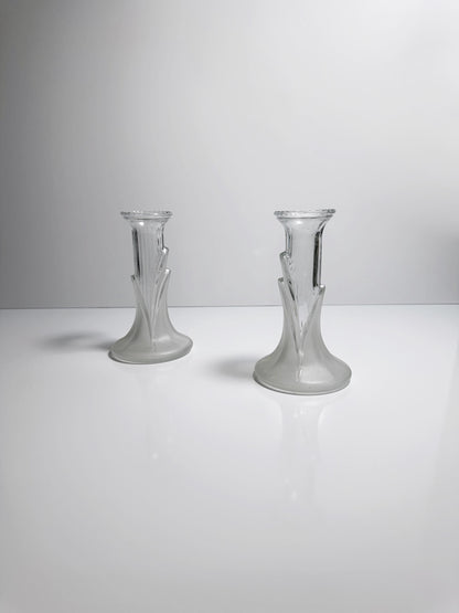 Vintage Kerzenhalter Glas Floral Matt Satiniert Set von 2