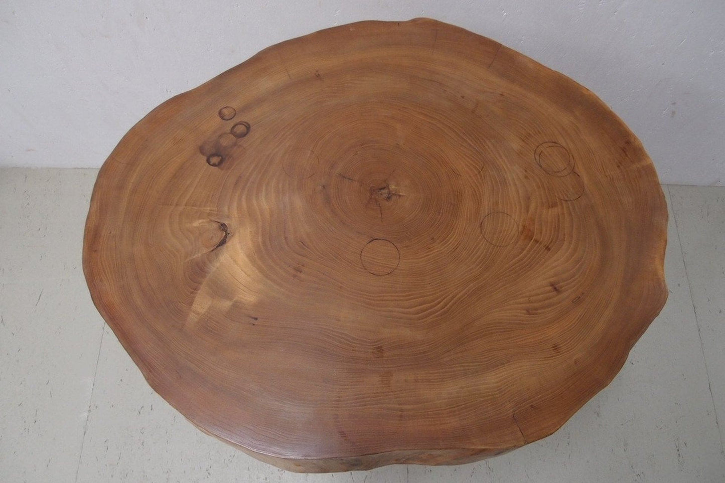 Massive Baumscheibe: 10 cm dick, gefertigt aus hochwertigem Rüsterholz.