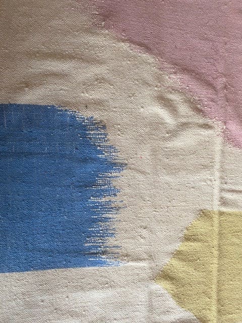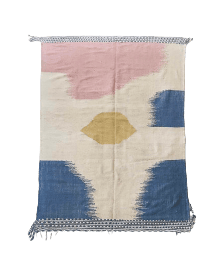 Vintage Berberteppich ecru, rosa, sand, blau nachhaltige Wolle 200x190cm