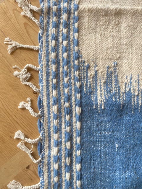 Die natürlichen Materialien und die robuste Webart garantieren Langlebigkeit, während die Fransen an den Enden dem Teppich eine spielerische Note verleihen. Dieses Stück ist nicht nur ein Bodenbelag, es ist ein Kunstwerk, das Wärme, Komfort und Stil in Dein Heim bringt. Ideal für jene, die eine Verbindung zur Natur und eine Vorliebe für handgefertigtes Design schätzen.