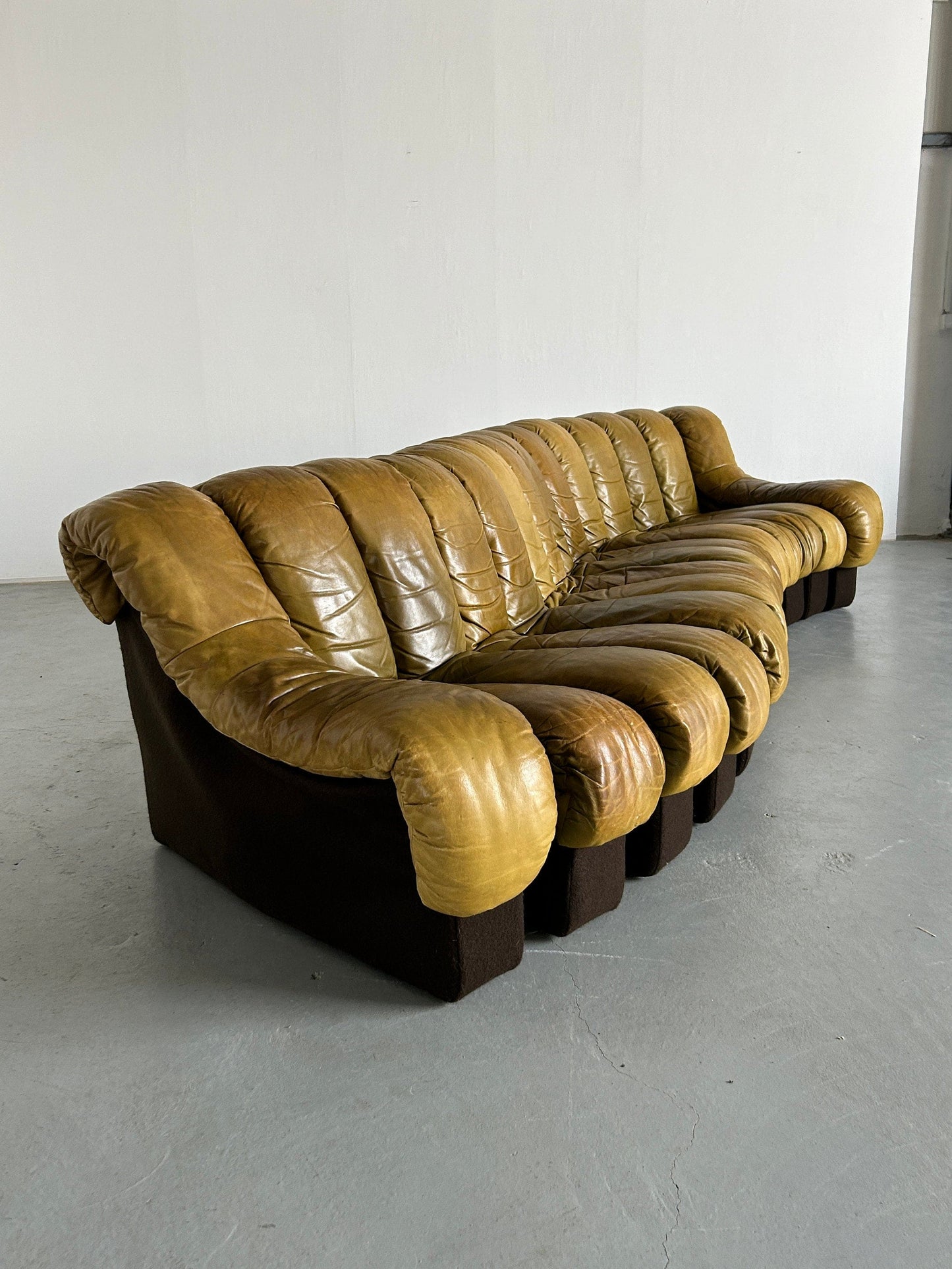 Die schlangenförmige Form des DS-600 und die Möglichkeit, eine durchgehende Sitzanordnung zu schaffen, machen es zu einem unverwechselbaren Stück in jedem Raum. Dieses Sofa bietet eine vielseitige Sitzlösung und repräsentiert ein Schlüsselstück des Möbeldesigns der 1970er Jahre.