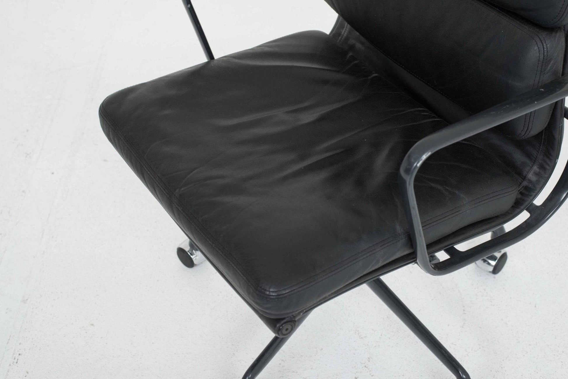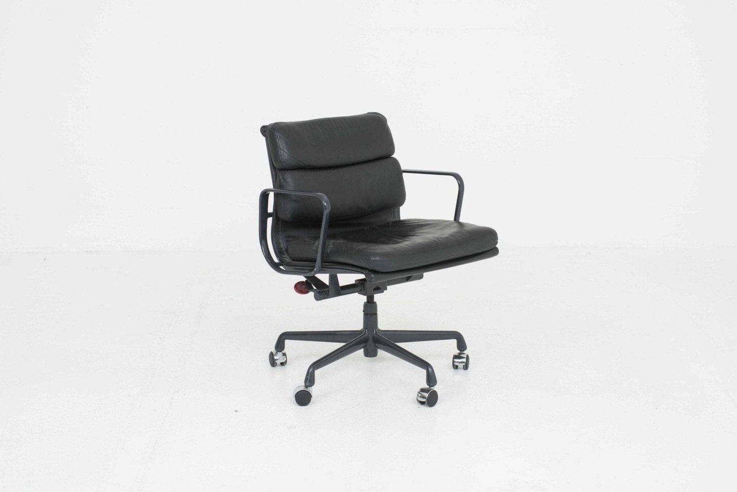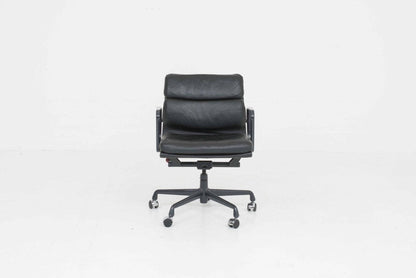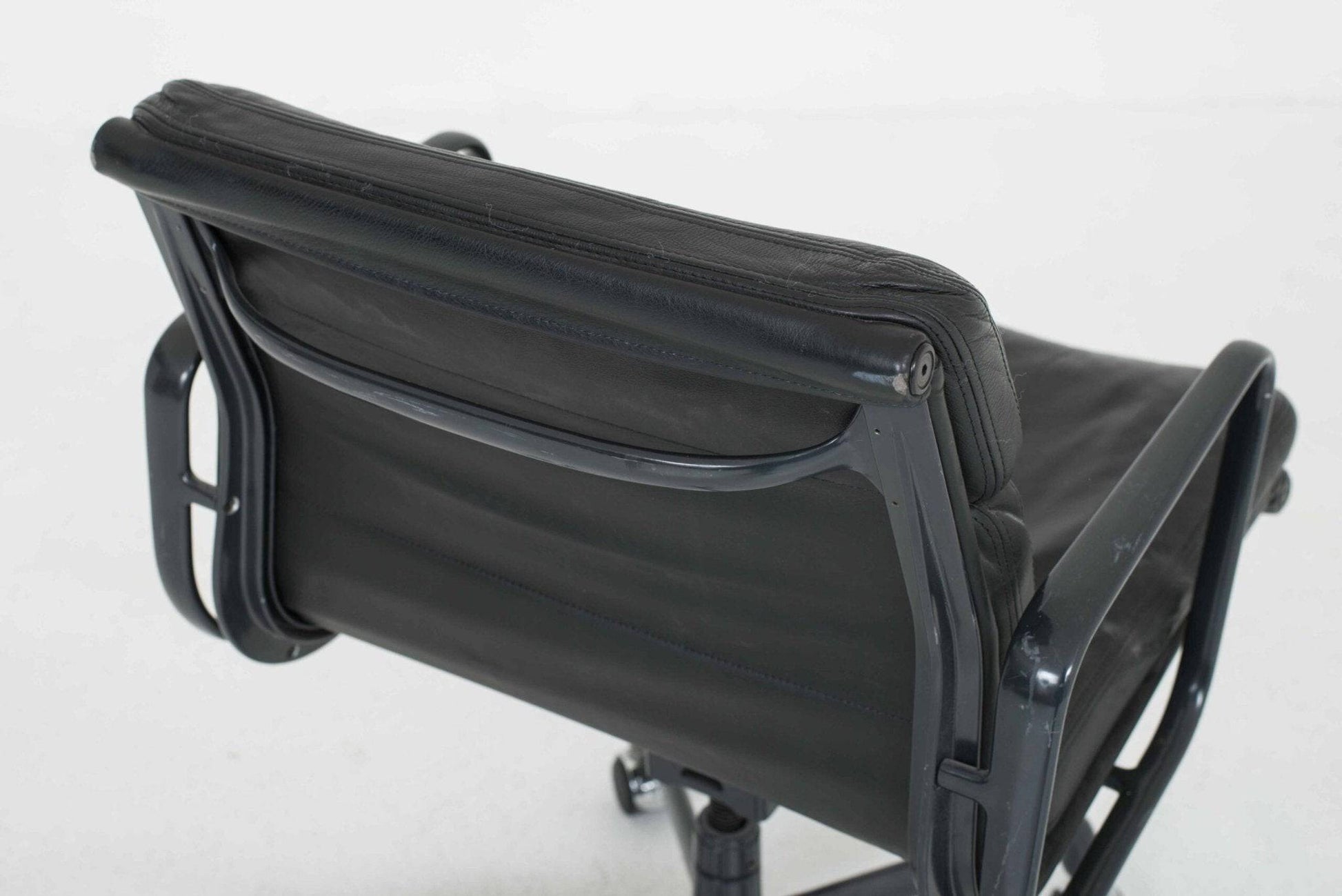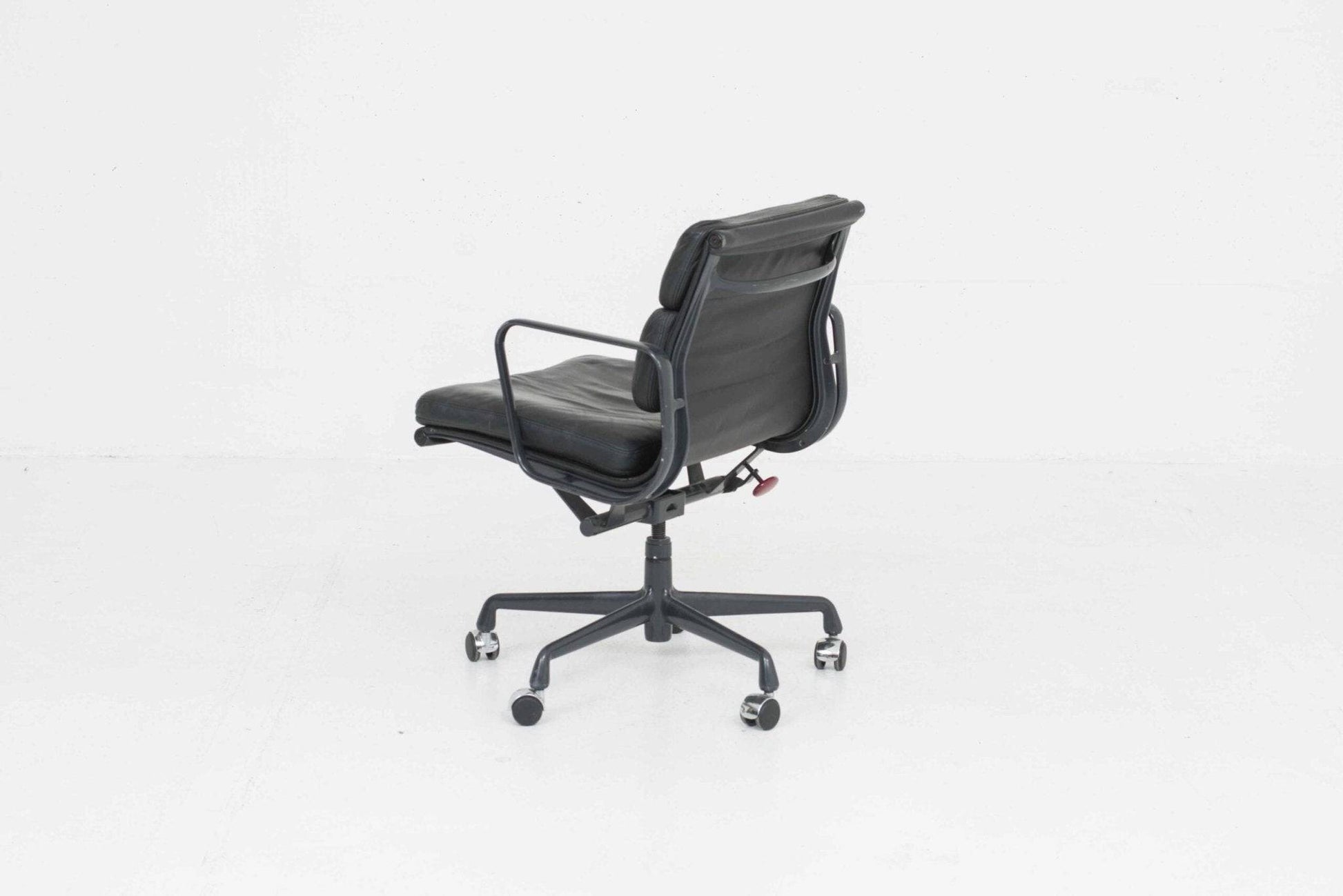 Vintage Bürostuhl Eames EA 217 von Herman Miller in schwarzem Leder
