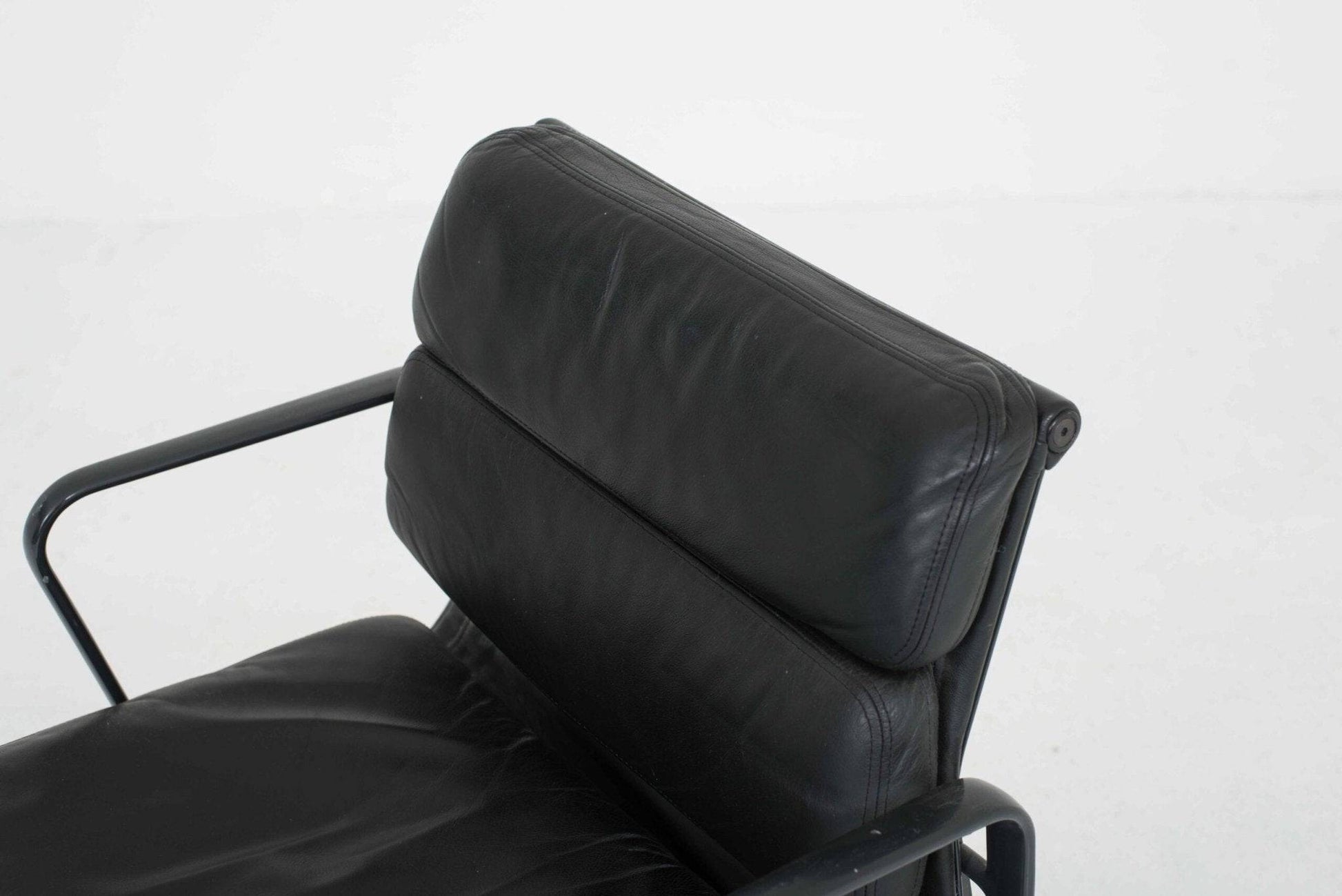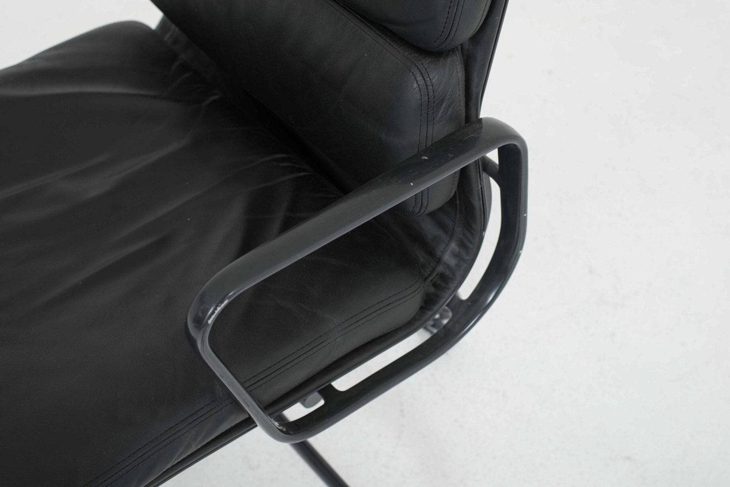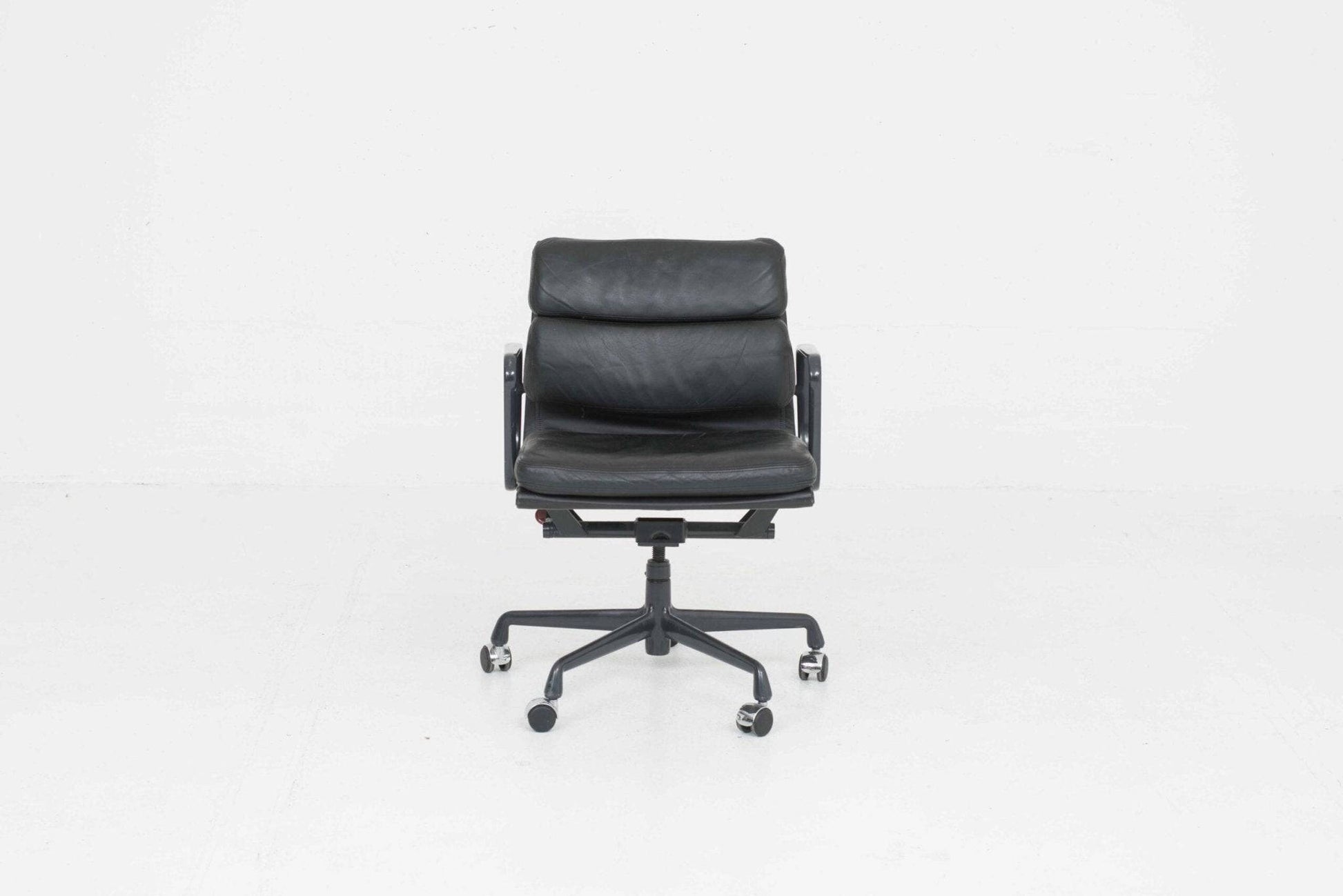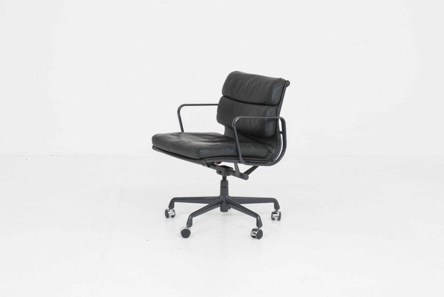 Vintage Bürostuhl Eames EA 217 von Herman Miller in schwarzem Leder