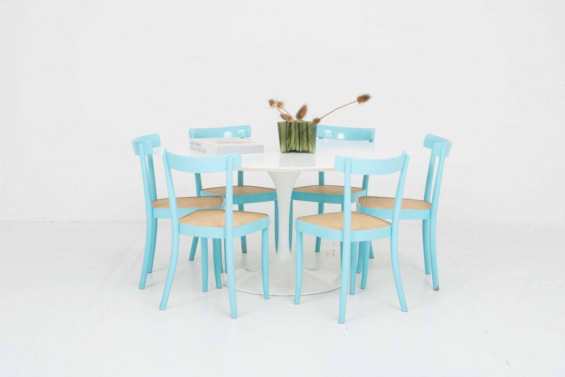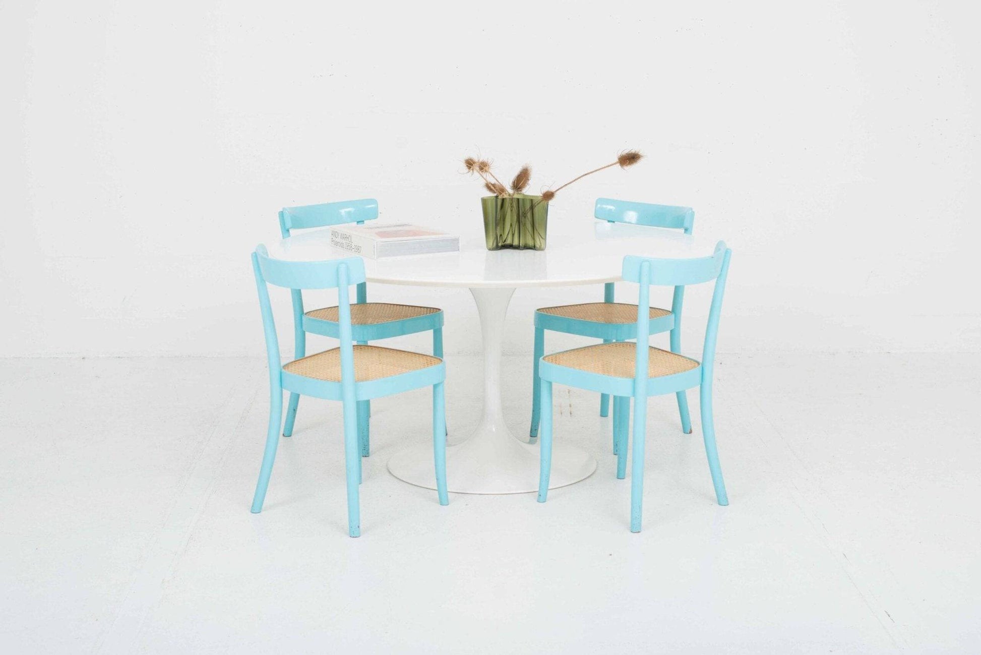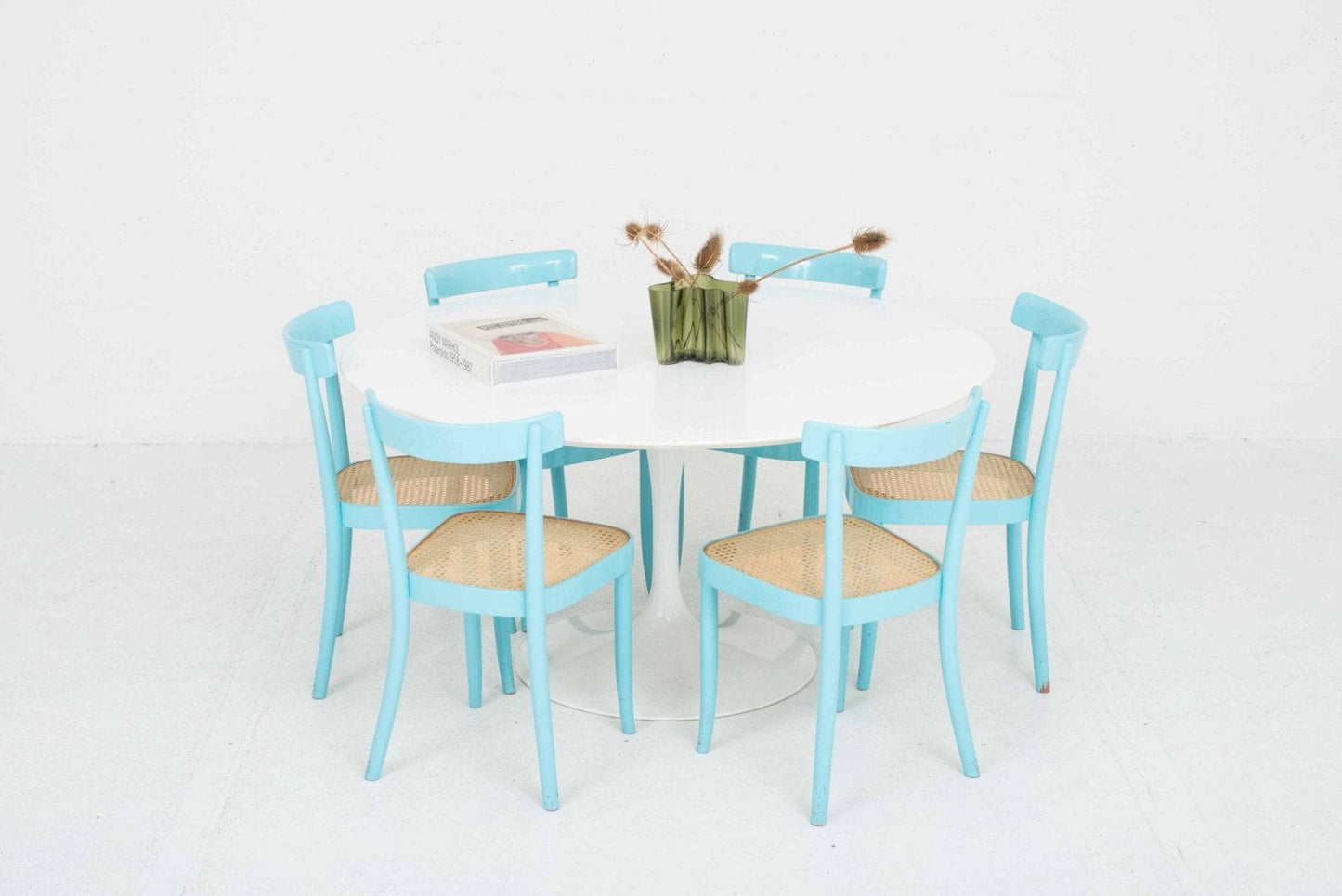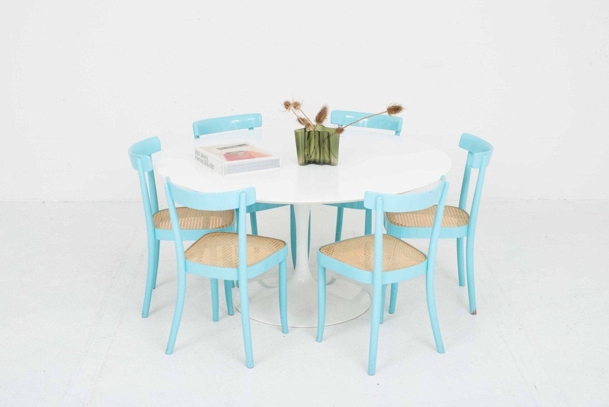 Kombiniere den Tisch mit passenden Vintage-Stühlen und achte auf harmonische Farb- und Materialkombinationen. Ein Esstisch aus der Mid-Century-Ära passt besonders gut zu warmen Holztönen und schlichten Accessoires.