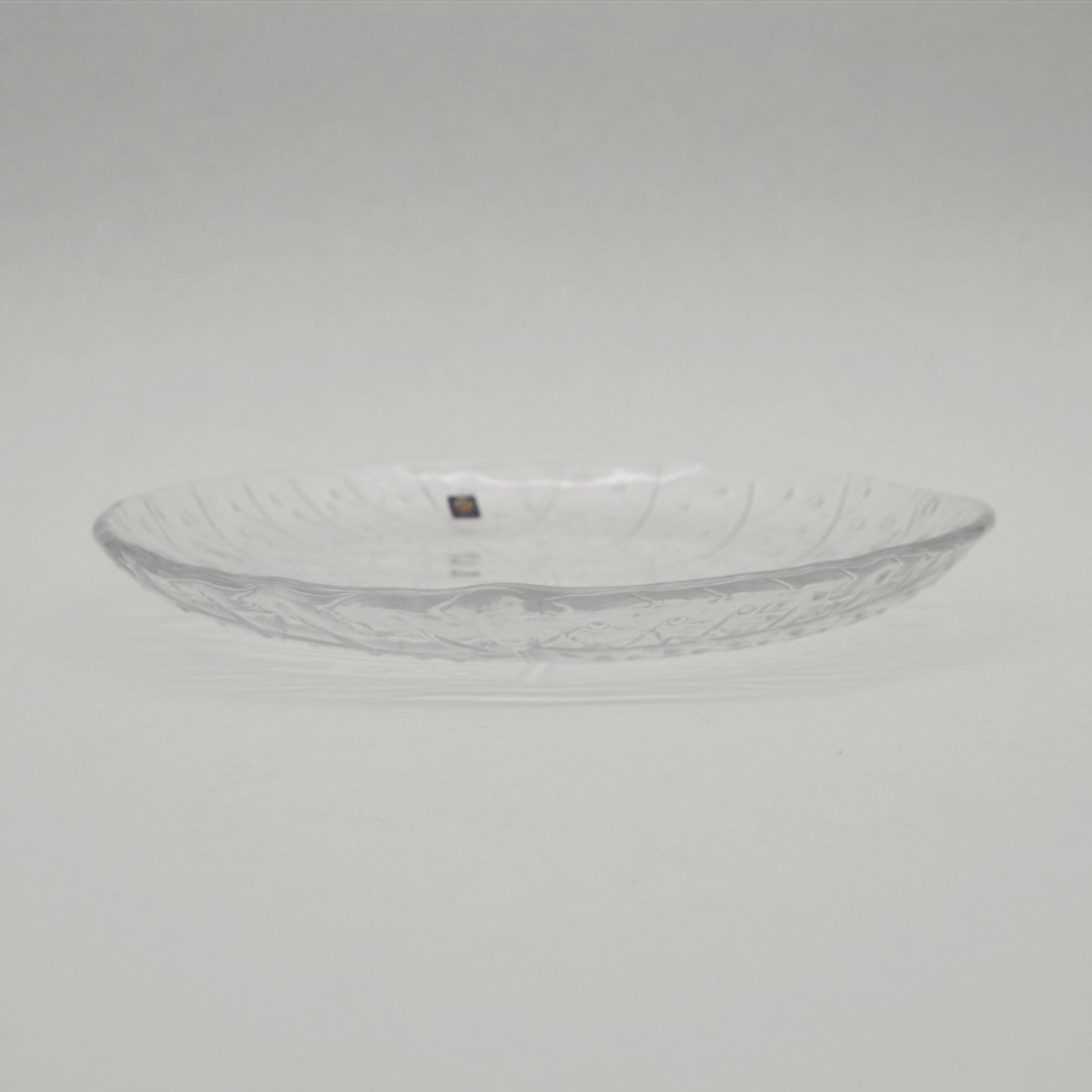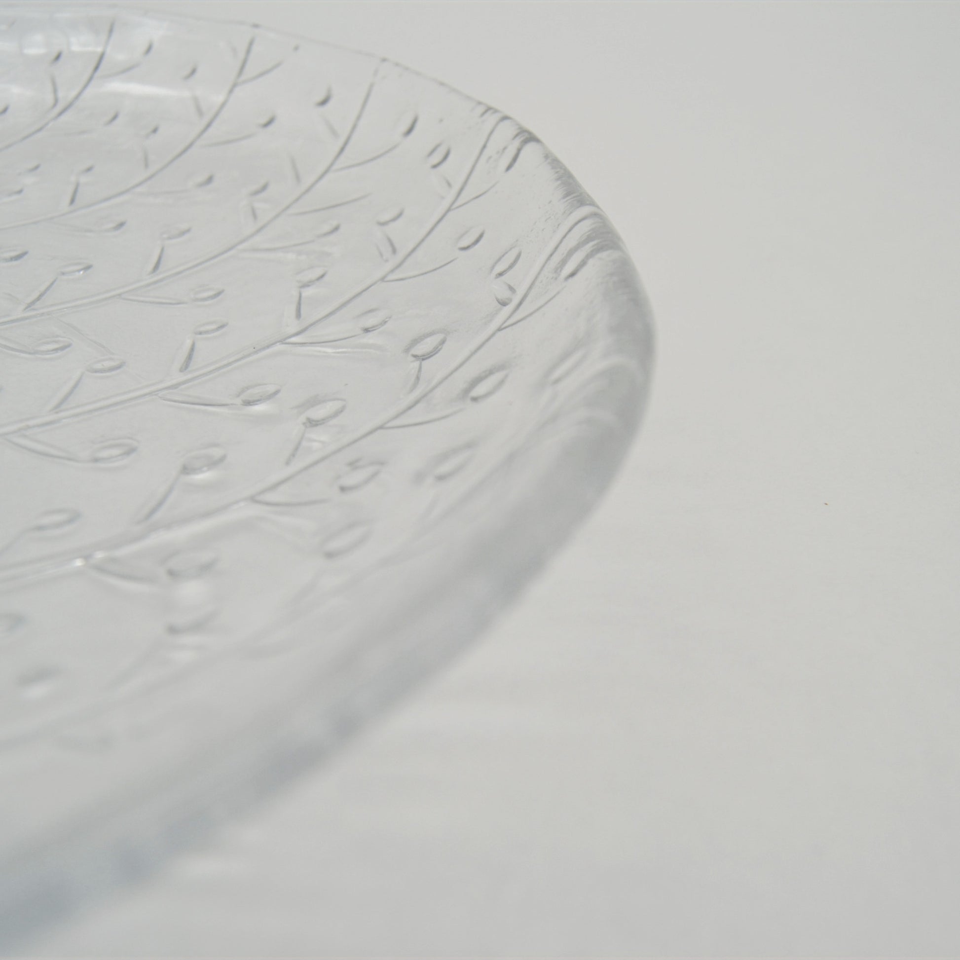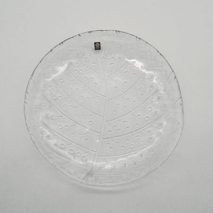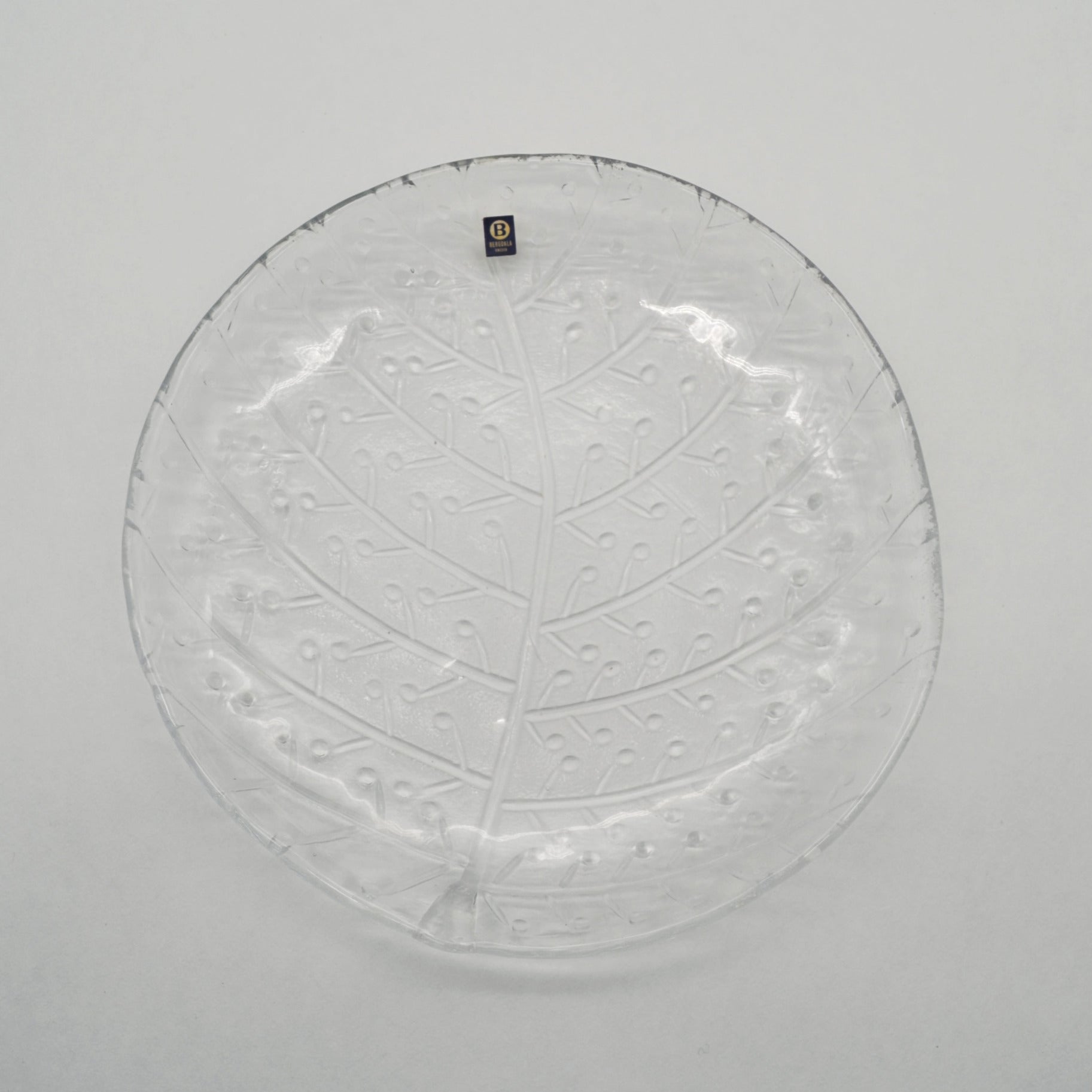 Vintage Glasteller Kristallglas von Bergdala Schweden Blattstruktur