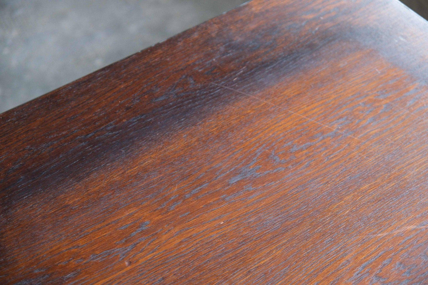 Das Stahlrohrgestell ist in einem guten Zustand mit wenig Patina; die Holzplatten weisen Abnutzungsspuren auf (s. Bilder). Es handelt sich um eine sehr stabile und massive Konstruktion; die Rohre haben bei diesem Modell einen größeren Durchmesser als bspw. die Marcel Breuer Tische.