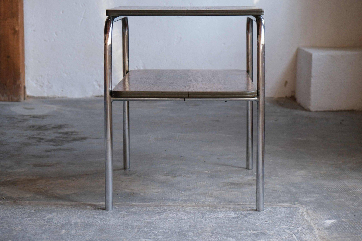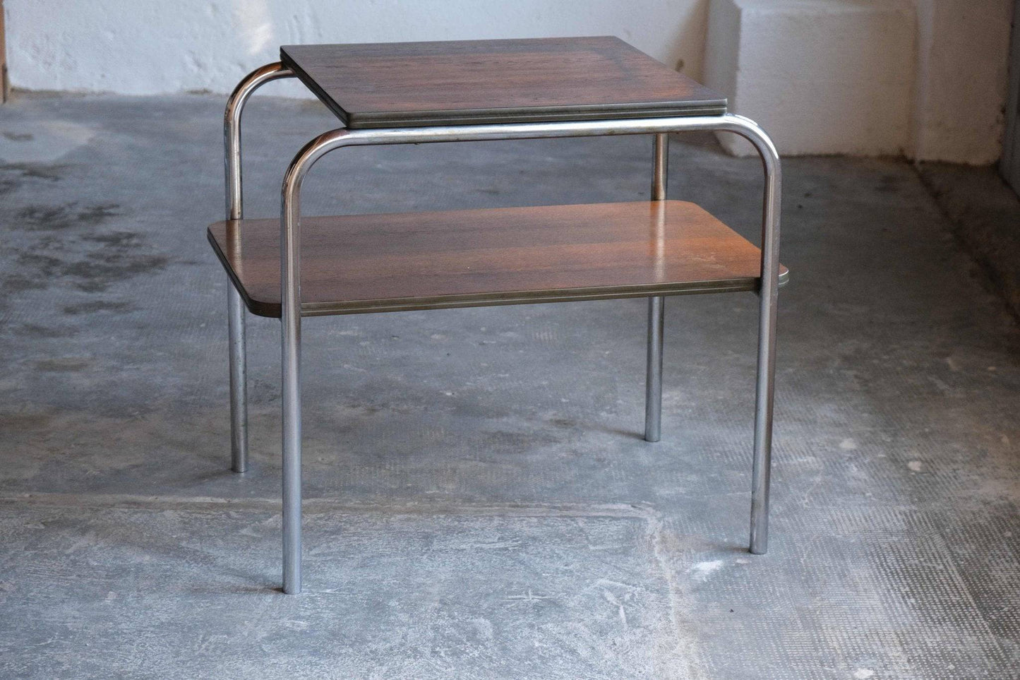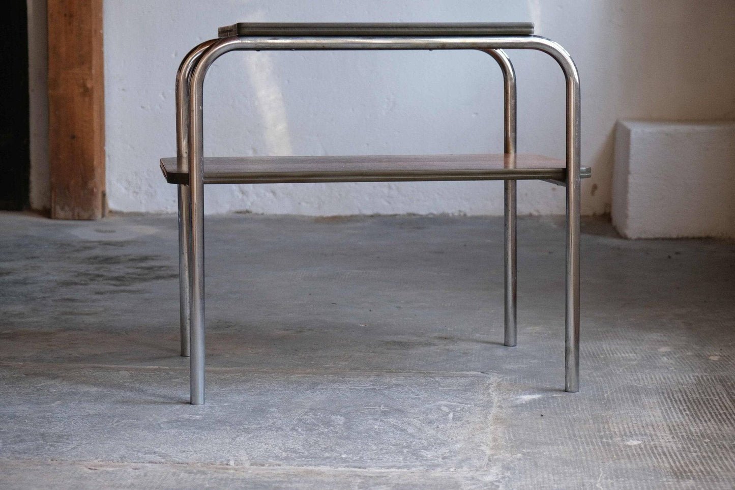 Vintage Beistelltisch Bauhaus dunkelbraun Holz Stahlrohr Chrom