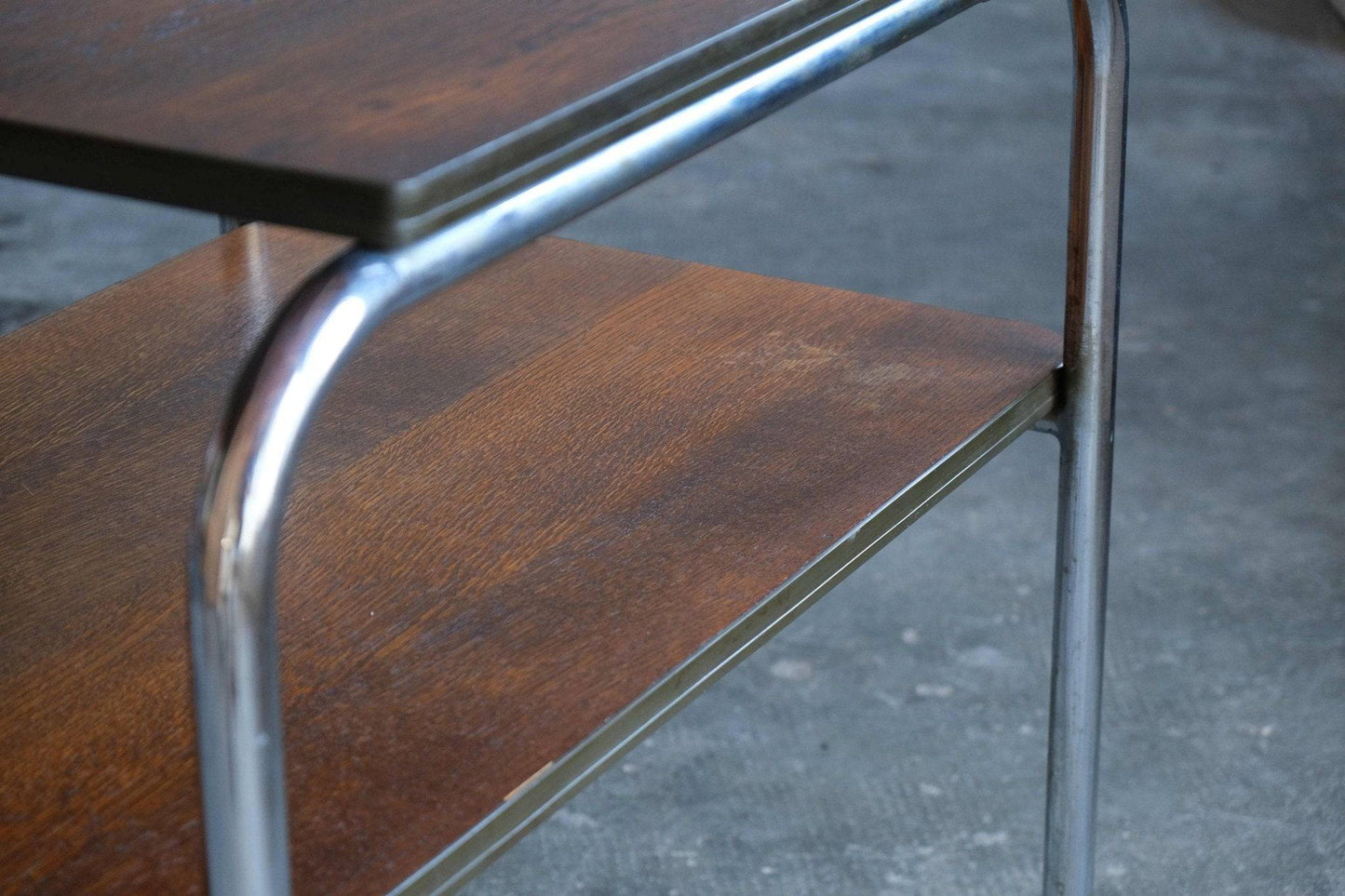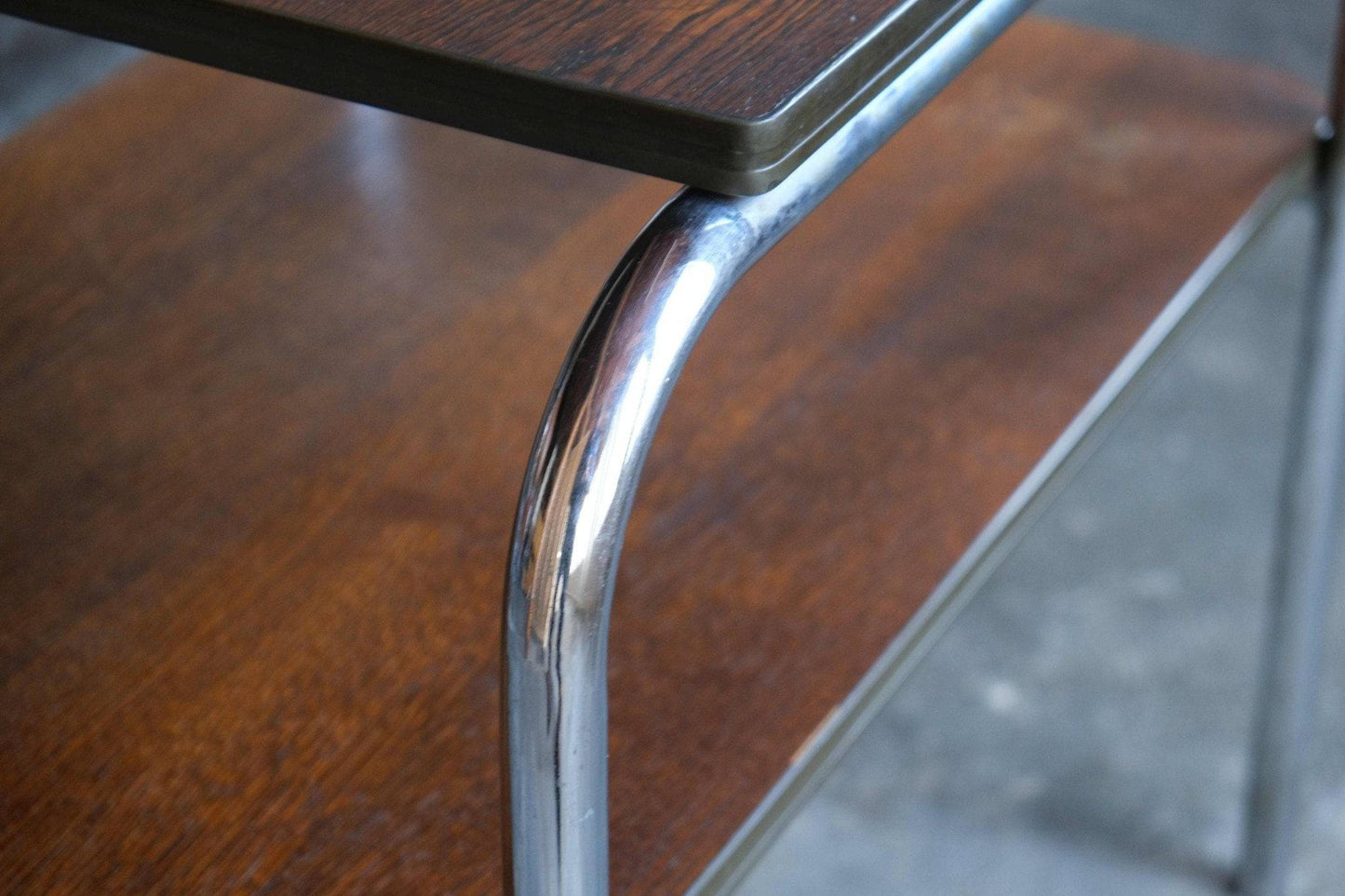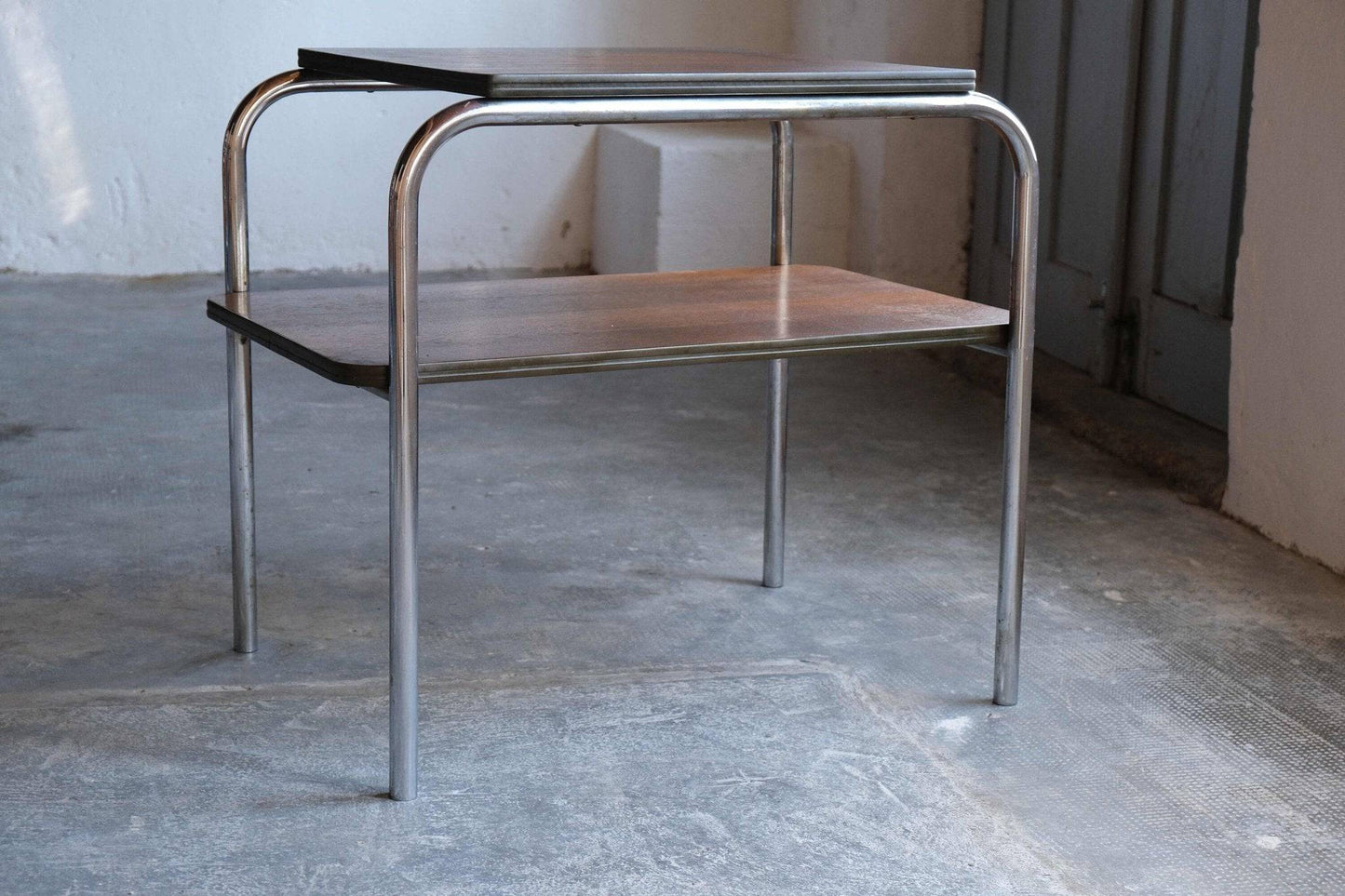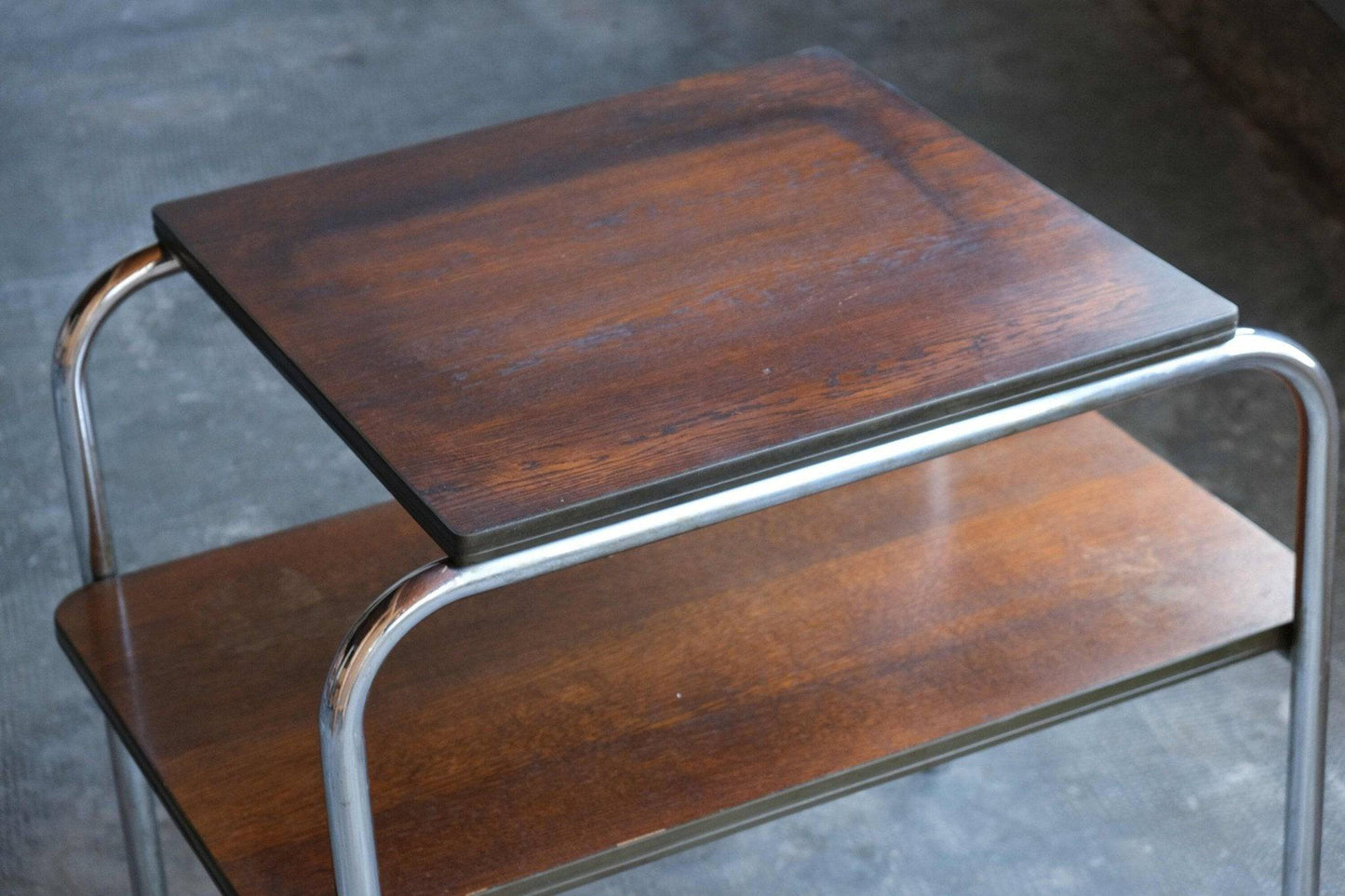 Vintage Beistelltisch Bauhaus dunkelbraun Holz Stahlrohr Chrom