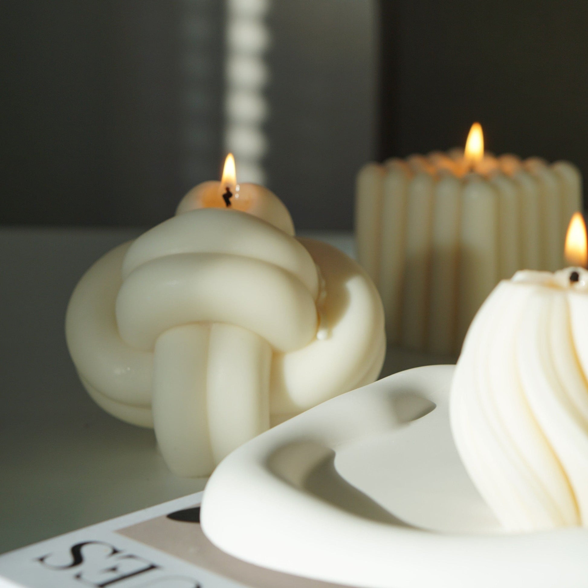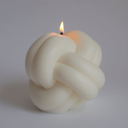 Handgefertigte Knotenkerze von Inuti, Rapswachs, vegan, ohne Duft, 10x10cm
