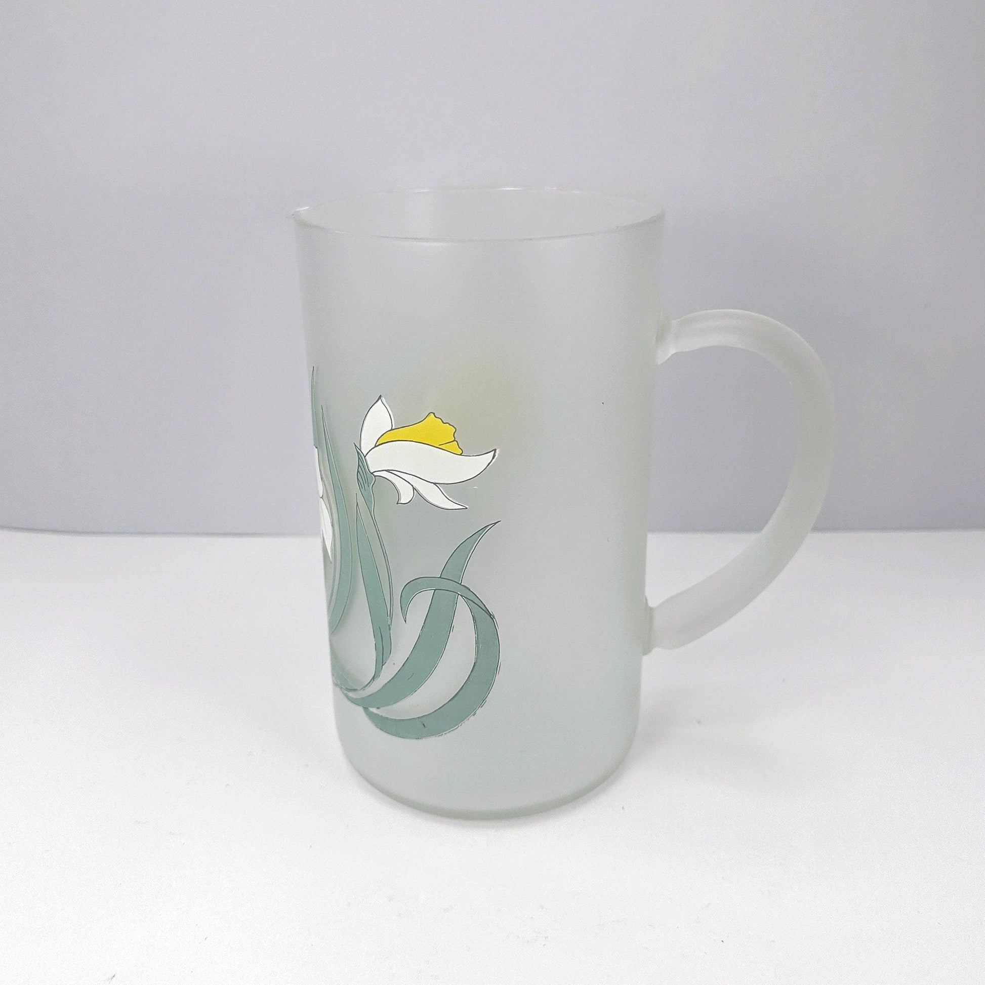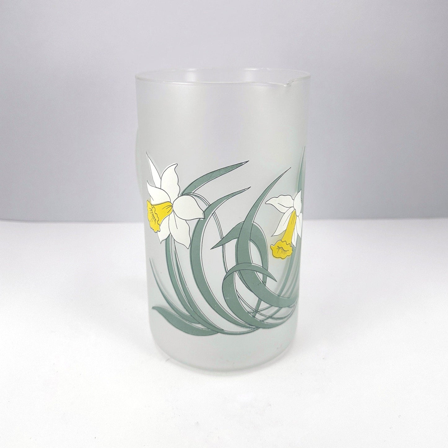 Art Deco Revival Formensprache mit stilisierten Blumen (Narzissen) auf mattiertem Glas. Bestens erhalten.