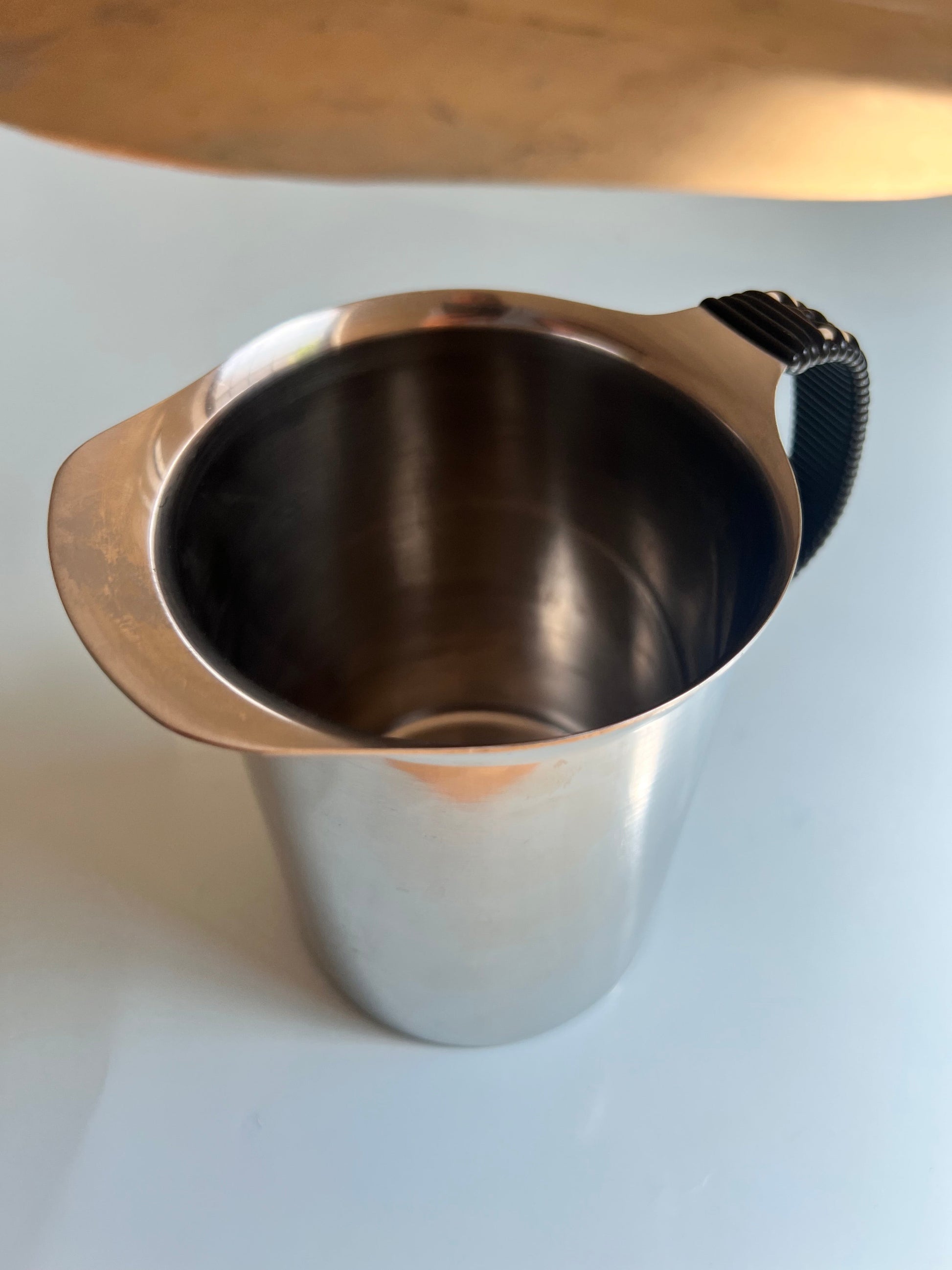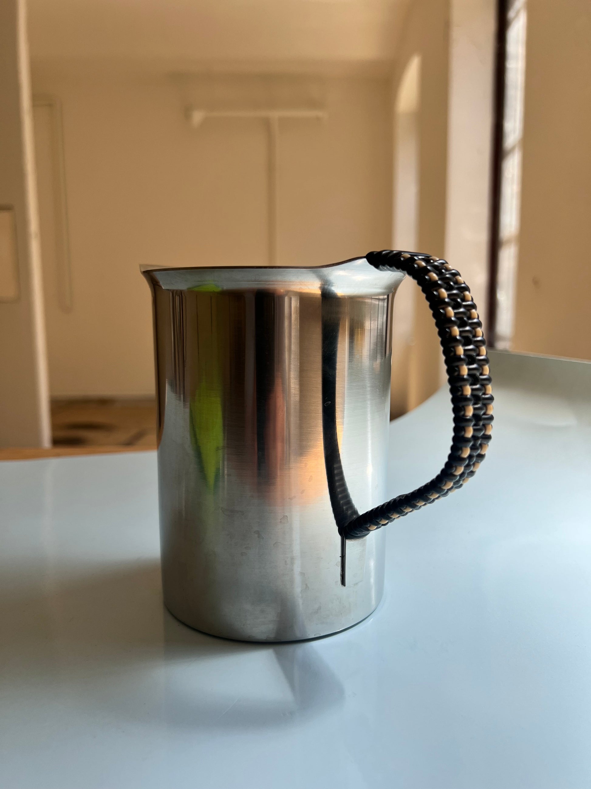Entdecke die zeitlose Eleganz der dänischen Kanne aus Edelstahl, inspiriert vom ikonischen Mid-Century-Design der 50er Jahre. Diese stilvolle Kanne vereint Funktionalität mit einem minimalistischen Look und ist ein echtes Highlight für Deine Küche oder den gedeckten Tisch. Das hochwertige Edelstahl sorgt für Langlebigkeit und eine edle, silberne Optik, die zu jedem Einrichtungsstil passt. Perfekt geeignet für den täglichen Gebrauch oder als dekoratives Sammlerstück.