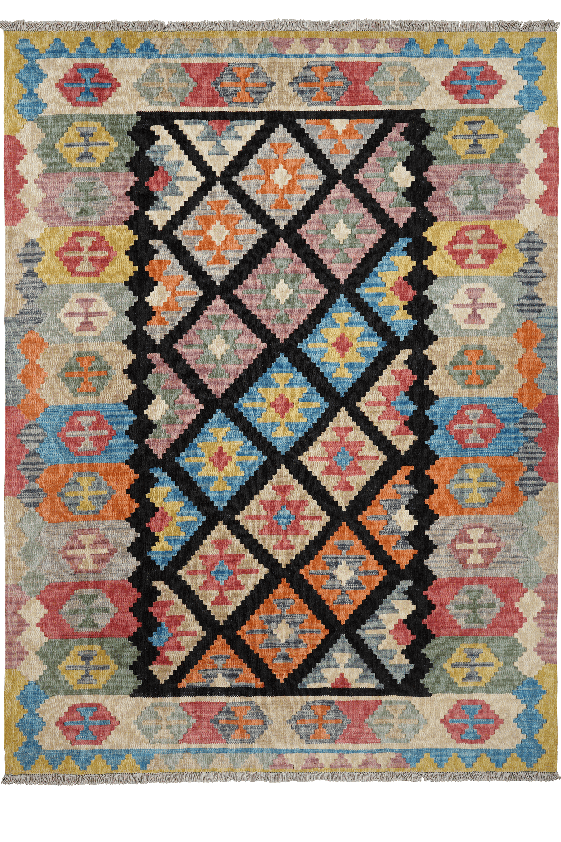 Entdecken Sie die Kunst der Ghashghai-Nomaden: Ihre einzigartigen, in Schlitzwebtechnik gefertigten Kelims aus der Provinz Fars begeistern mit eindrucksvollen geometrischen Mustern.