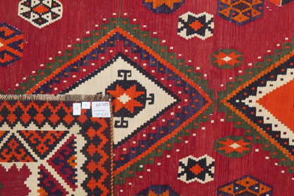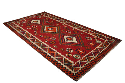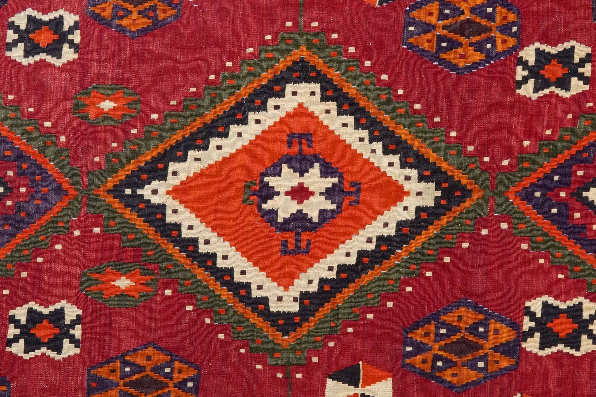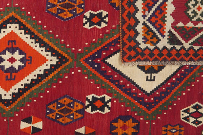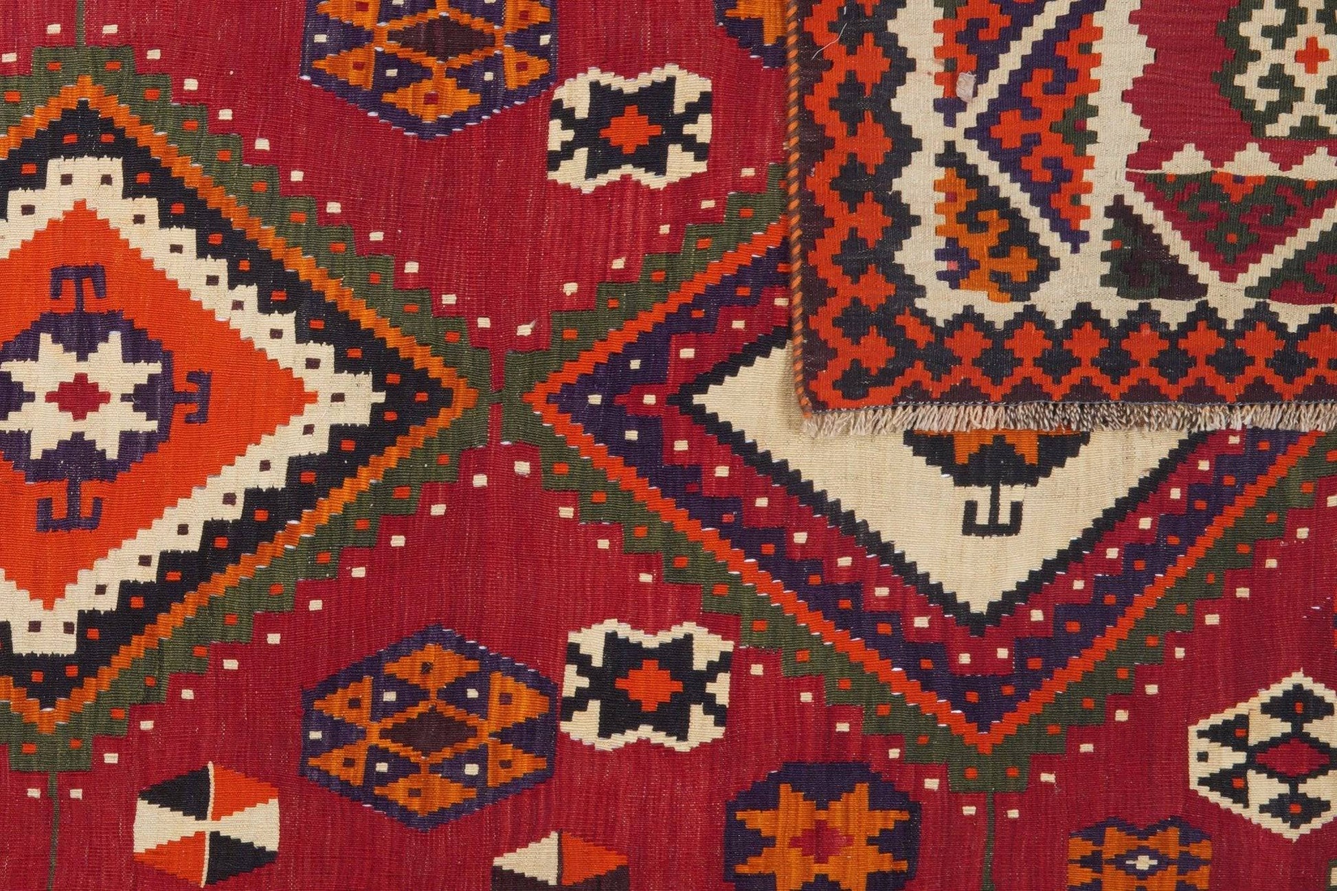 Dieser Vintage Teppich Kelim Gashgai 320x177cm wurde von türkisch sprechenden Nomadenstämme aus Fars, Iran, hergestellt. Verwendet wird die Schlitztechnik, die typisch für geometrische Motive ist und Farbwechsel ermöglicht. Jedes Teppichstück ist dank der Erfahrung und persönlichen Vorlieben der Nomaden einzigartig.