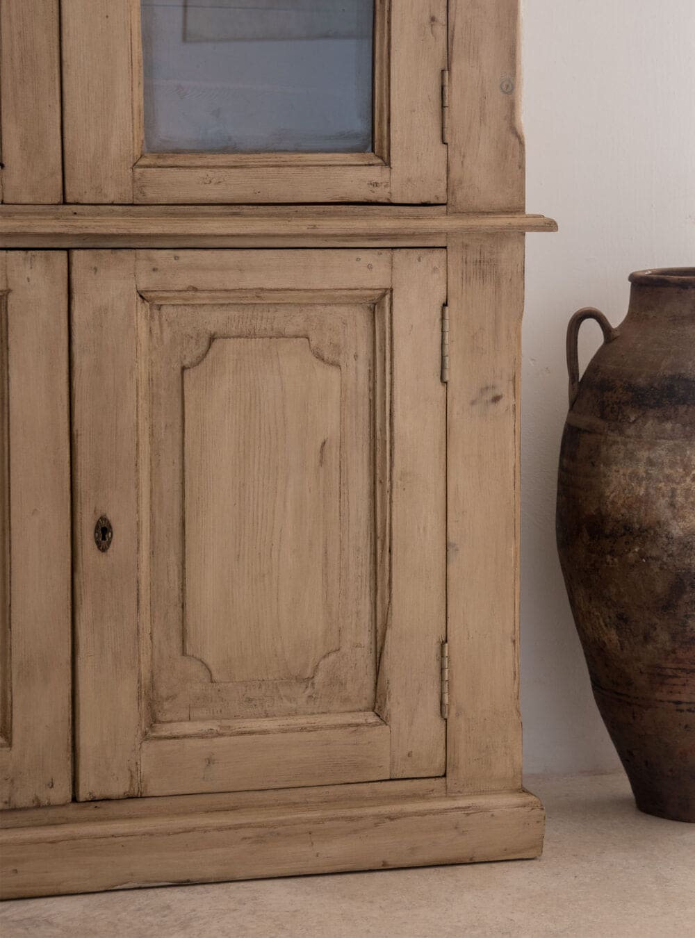 Eine schöne, patinierte Anrichte aus dem 19. Jahrhundert aus massivem Kiefernholz. Die Oberseite ist mit Glastüren verschlossen, während der untere Teil zwei wunderschön verzierte Paneele aufweist, dieEine schöne, patinierte Anrichte aus dem 19. Jahrhundert aus massivem Kiefernholz. Die Oberseite ist mit Glastüren verschlossen, während der untere Teil zwei wunderschön verzierte Paneele aufweist, dieEine schöne, patinierte Anrichte aus dem 19. Jahrhundert aus massivem Kiefernholz. Die Oberseite ist mit Glastüren verschlossen, während der untere Teil zwei wunderschön verzierte Paneele aufweist, die