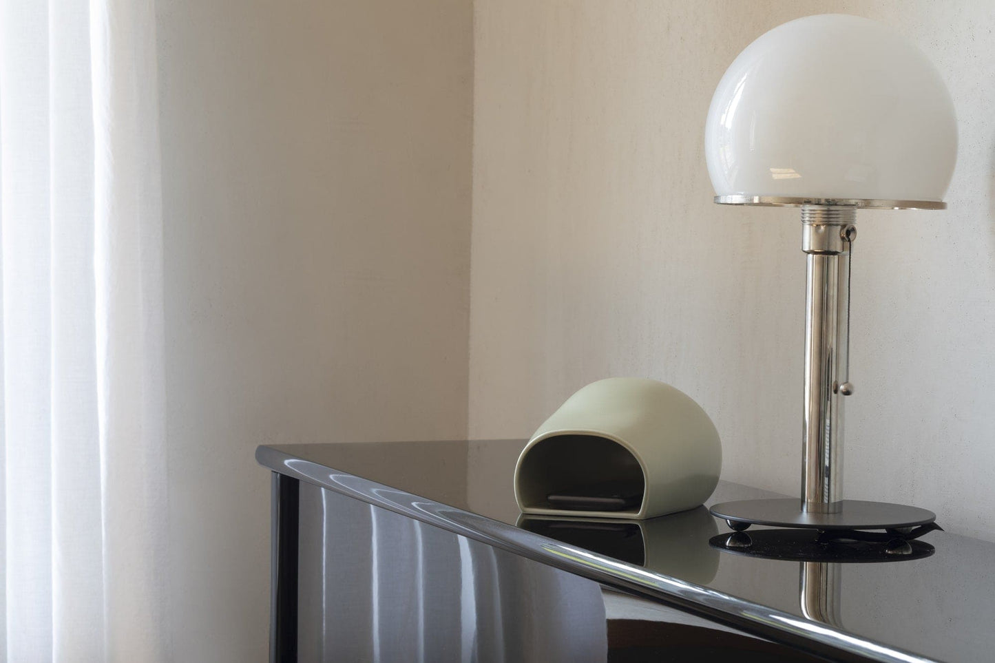 Die geschwungenen Linien und die seidige Oberfläche des SLEEPING BEAR machen es zu einem ästhetischen Highlight. Die sanfte Farbpalette passt sich jedem Interieur an – ob Schlafzimmer, Wohnzimmer oder Büro. Die skulpturale Form erinnert an eine schützende Höhle, in der Sie Ihr Smartphone sicher ablegen können, um selbst Ruhe zu finden.