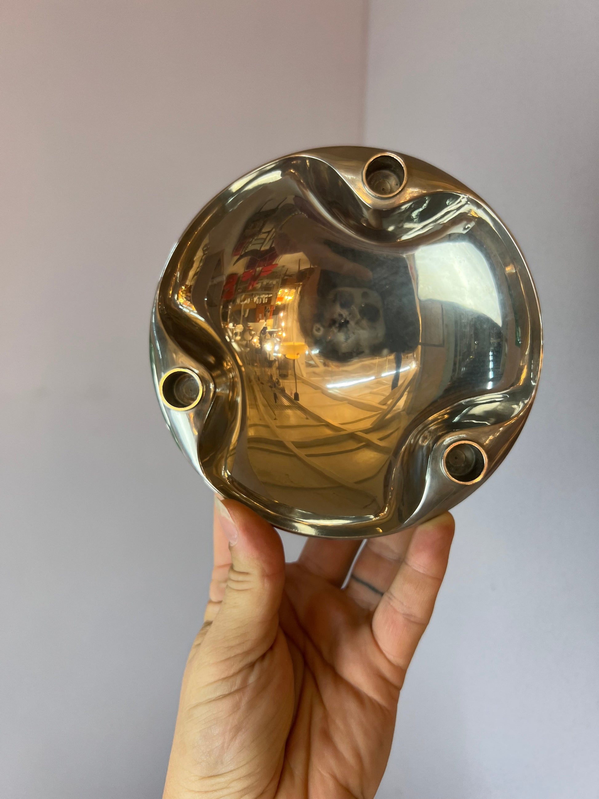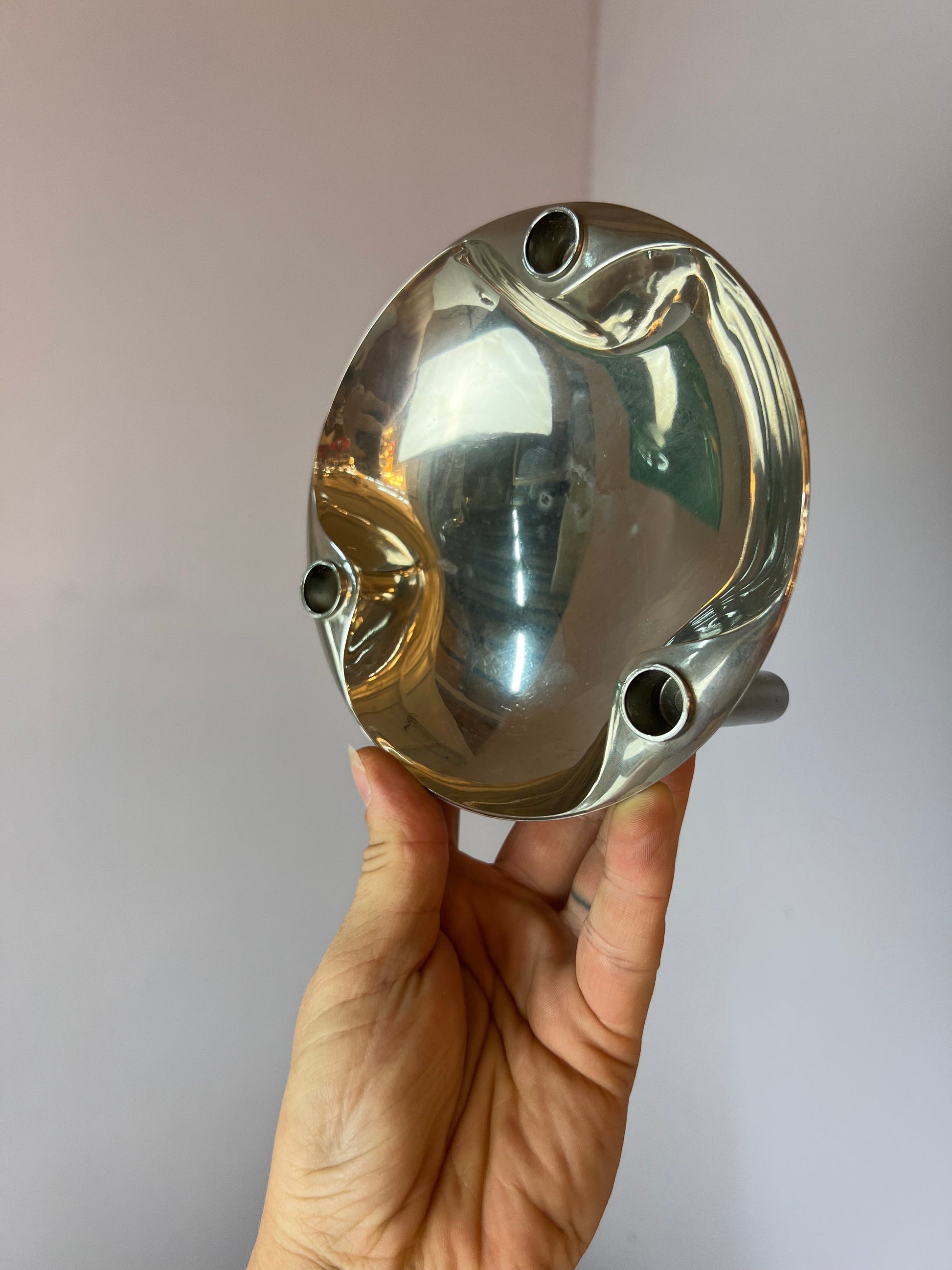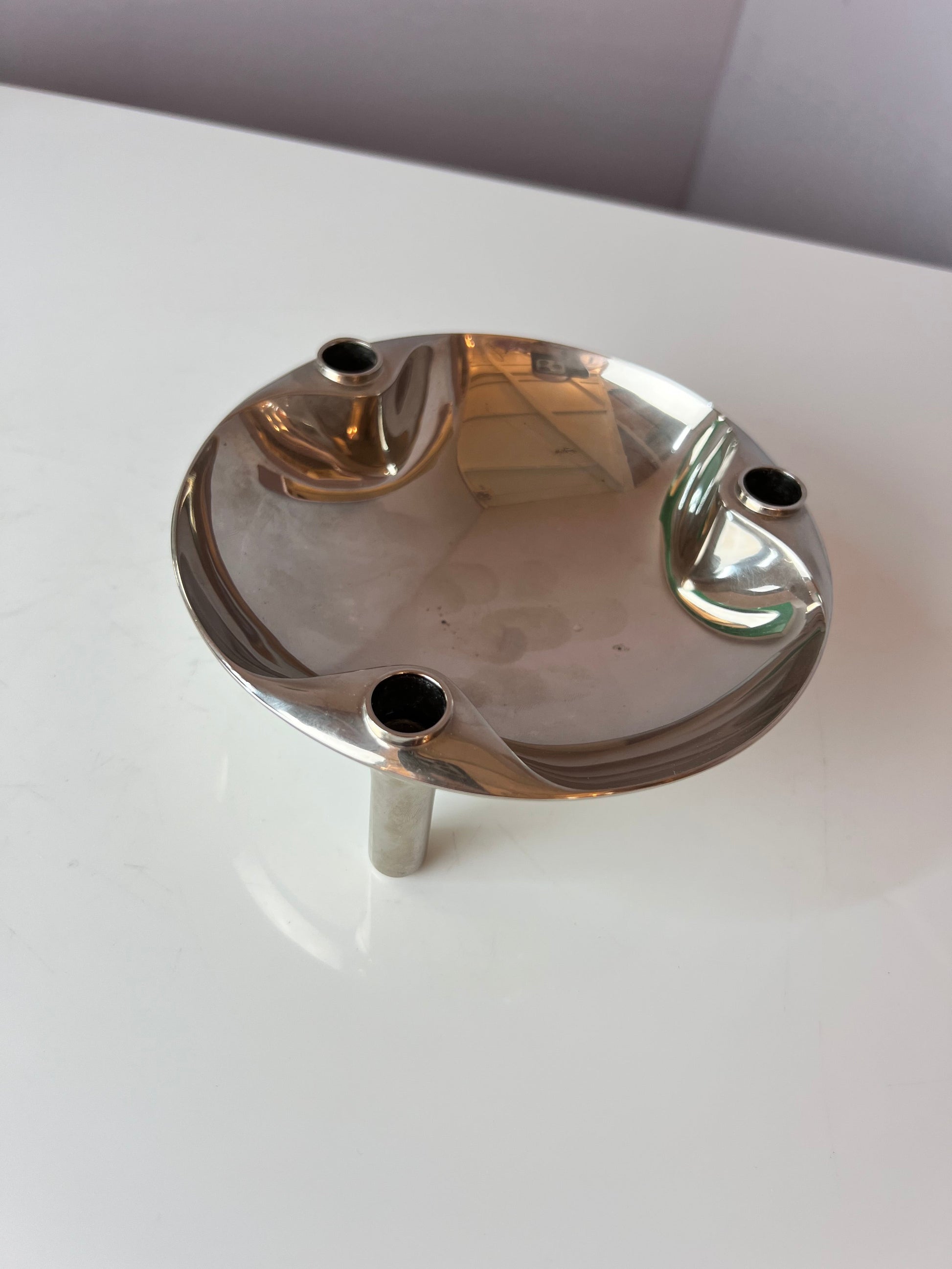 Entdecke die stilvolle Schale von Stoff und Nagel – ein echtes Highlight für Dein Zuhause. Das silberfarbene Design im Space Age-Stil bringt einen Hauch von Retro-Charme aus den 60er und 70er Jahren in Deine Einrichtung. Die Schale lässt sich perfekt mit den Kerzenständern der Stoff & Nagel Serie kombinieren und setzt elegante Akzente auf jedem Tisch. Dank der präzise gearbeiteten Löcher mit einem Durchmesser von 1,2 cm ist sie vielseitig einsetzbar.