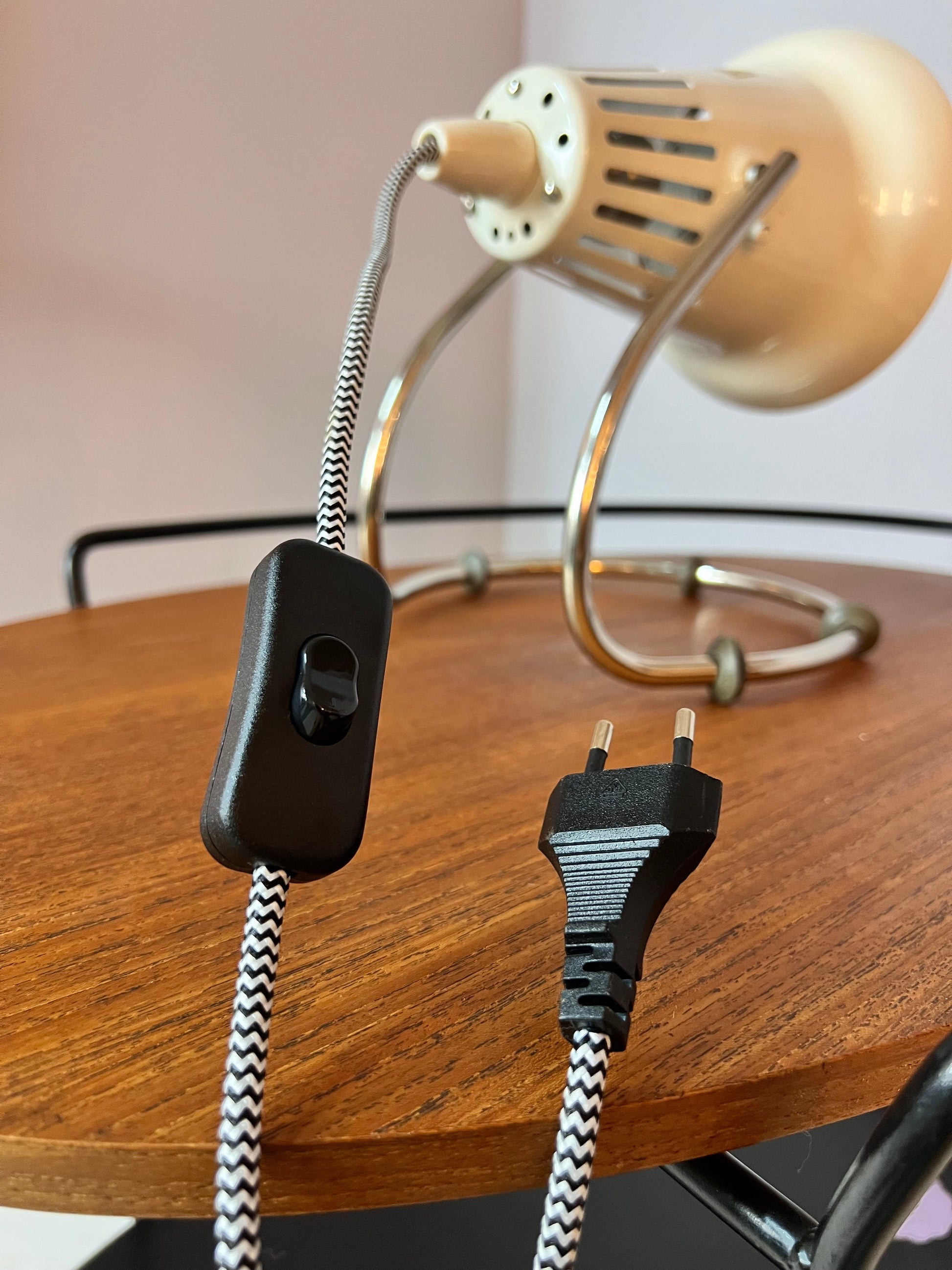- Ursprünglich als Wärmelampe, professionell umgebaut zur Tischlampe