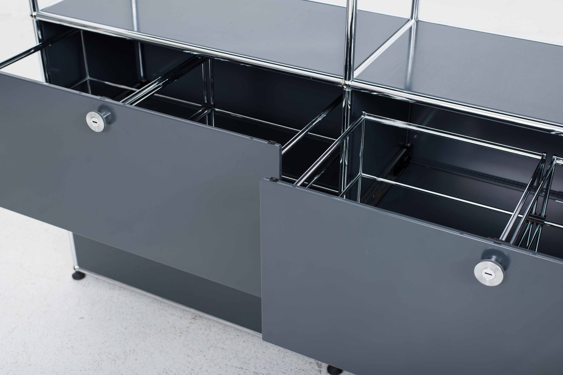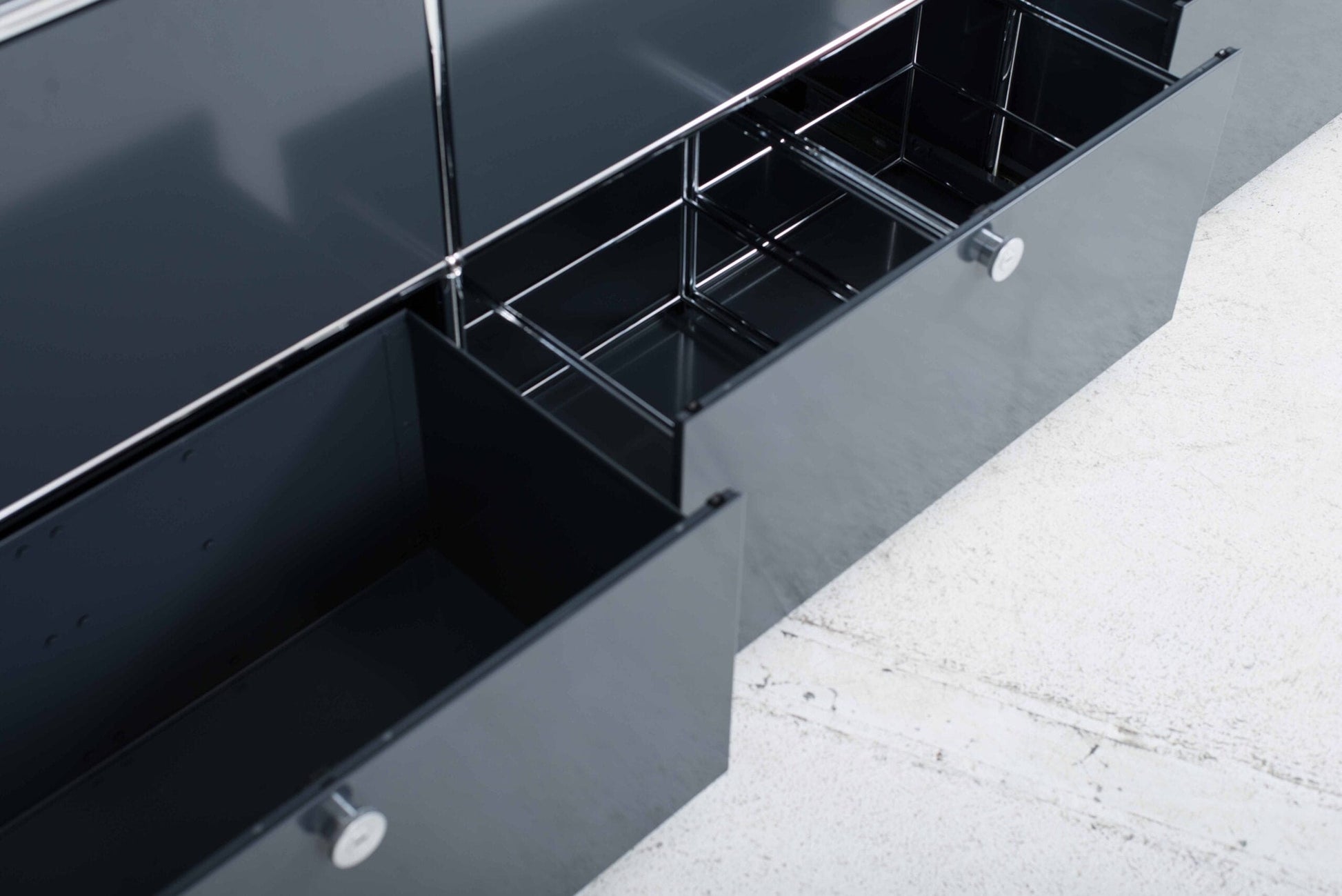 USM steht seit Generationen für nachhaltige Produktion, hochwertige Grundstoffe und innovative Designs. Das modulare System von USM Haller ist weltweit bekannt und geschätzt – ein echtes Statement für Designliebhaber. Preis auf Anfrage. Mehrere Regale und Sideboards in verschiedenen Farben und Ausführungen verfügbar – entdecke die Vielfalt und finde das passende Stück für Dein Zuhause!