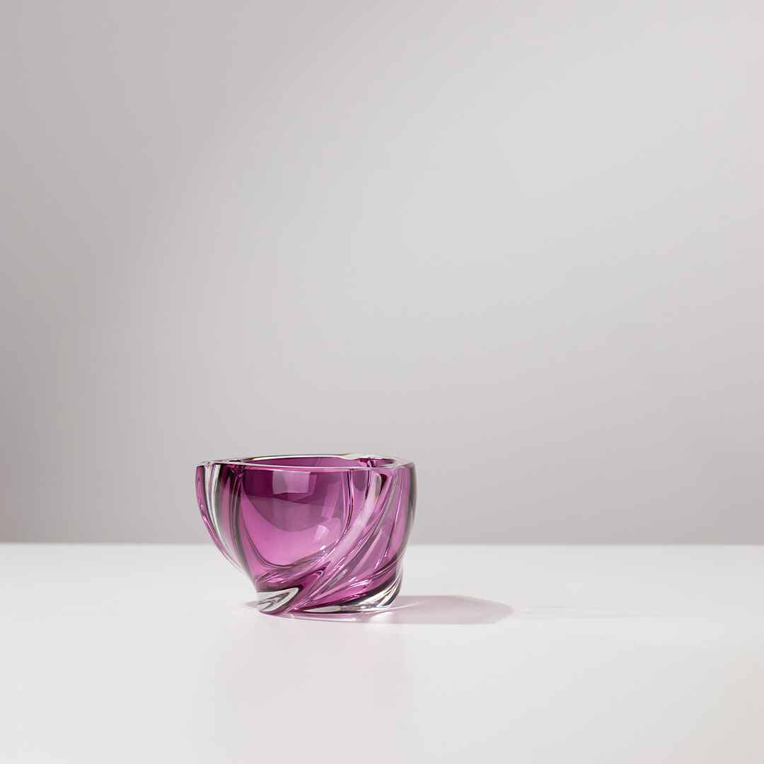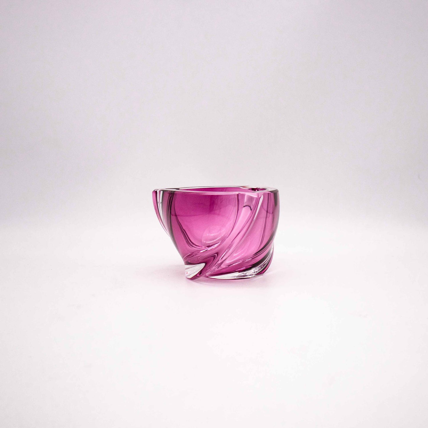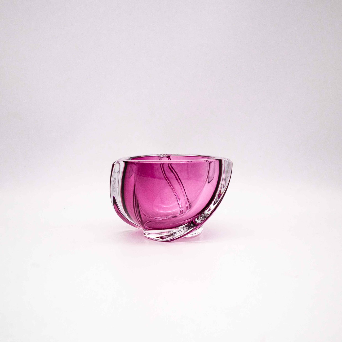 Der Glas Aschenbecher von Val-Saint-Lambert wurde in den 1950er Jahren aus klarem und pinken Kristallglas gefertigt. Er verfügt über eine wunderschöne Form und ist am Boden mit einer Signatur versehen, was seine Einzigartigkeit, Schönheit und Hochwertigkeit unterstreicht.