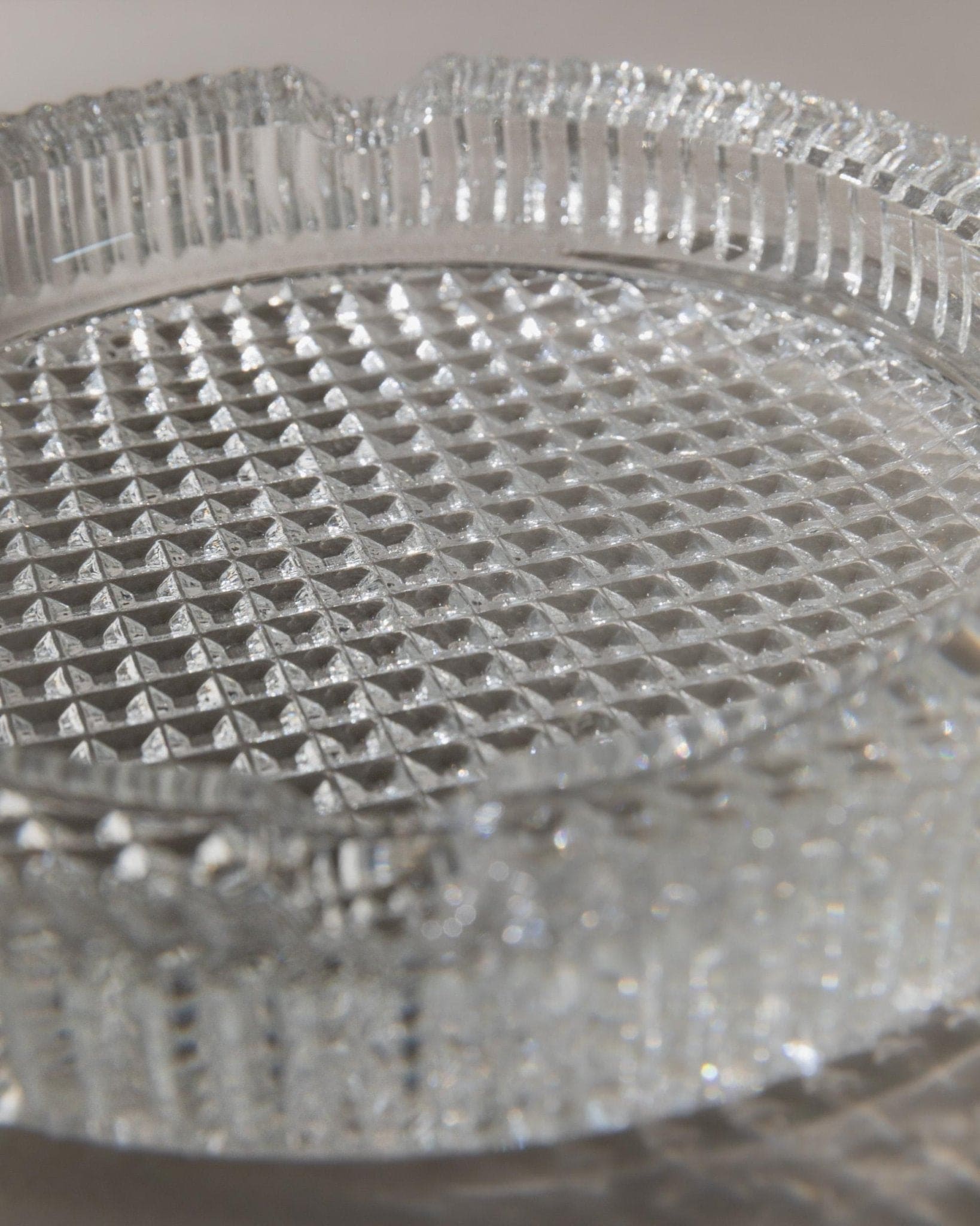 Entdecke einen außergewöhnlichen Vintage Aschenbecher aus strukturiertem Murano Glas, gefertigt in Italien in den 1960er Jahren. Dieses beeindruckende Stück vereint Space Age Ästhetik mit mid century modern Design und bringt einen Hauch von Retro-Charme in Dein Zuhause. Das dicke, klare Glas mit seinen vielfältigen Strukturen sorgt für faszinierende Lichtreflexe und macht den Aschenbecher zu einem echten Blickfang. Dank seiner schweren, sehr guten Qualität eignet er sich nicht nur als praktisches Accessoire, sondern auch als stilvolles Dekorationsobjekt oder besonderes Geschenk.