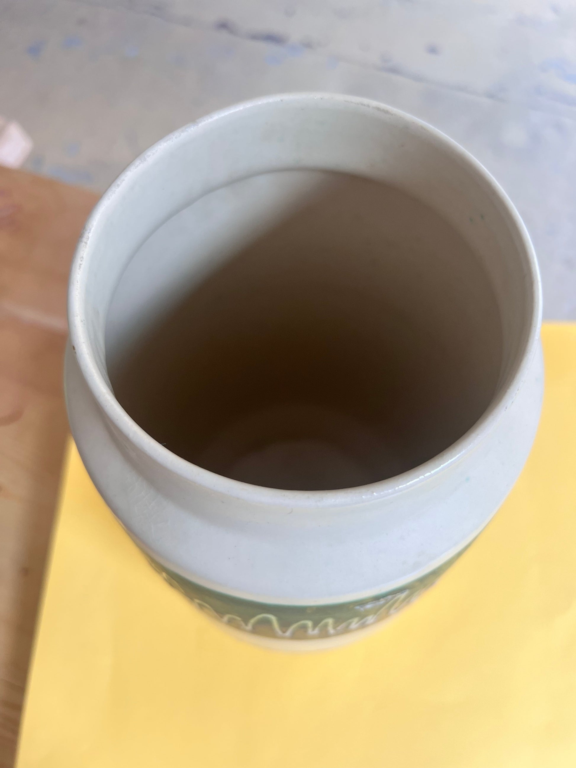 Die Vintage Bodenvase 666-40 von Bay Keramik ist ein echtes Highlight für Dein Zuhause. Mit ihrem zeitlosen Design und der harmonischen Farbkombination aus Grün und Creme bringt sie einen Hauch von Retro-Charme in jeden Raum. Die hochwertige Keramik sorgt für Langlebigkeit und macht die Vase zu einem stilvollen Blickfang. Perfekt geeignet für frische Blumenarrangements oder als dekoratives Einzelstück.