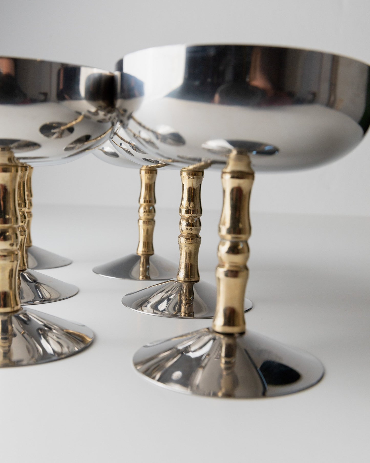 Vintage Champagnerschale Edelstahl Bambus Italien 1970er Set von 6