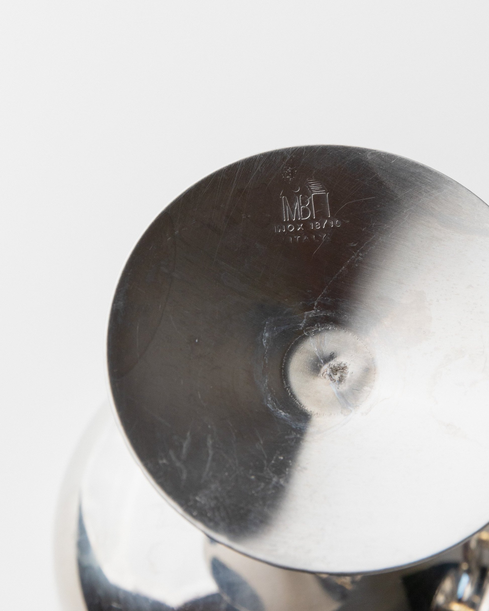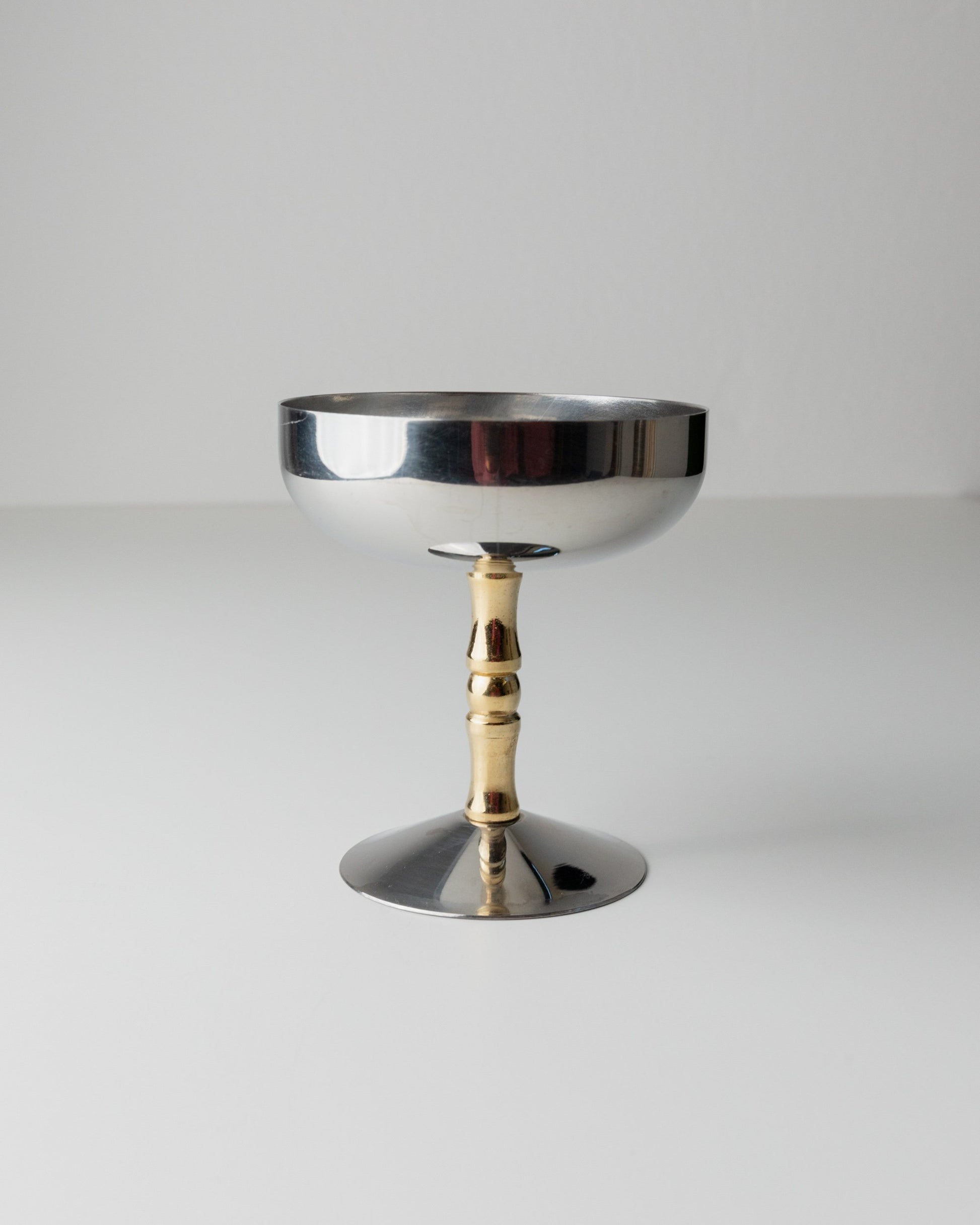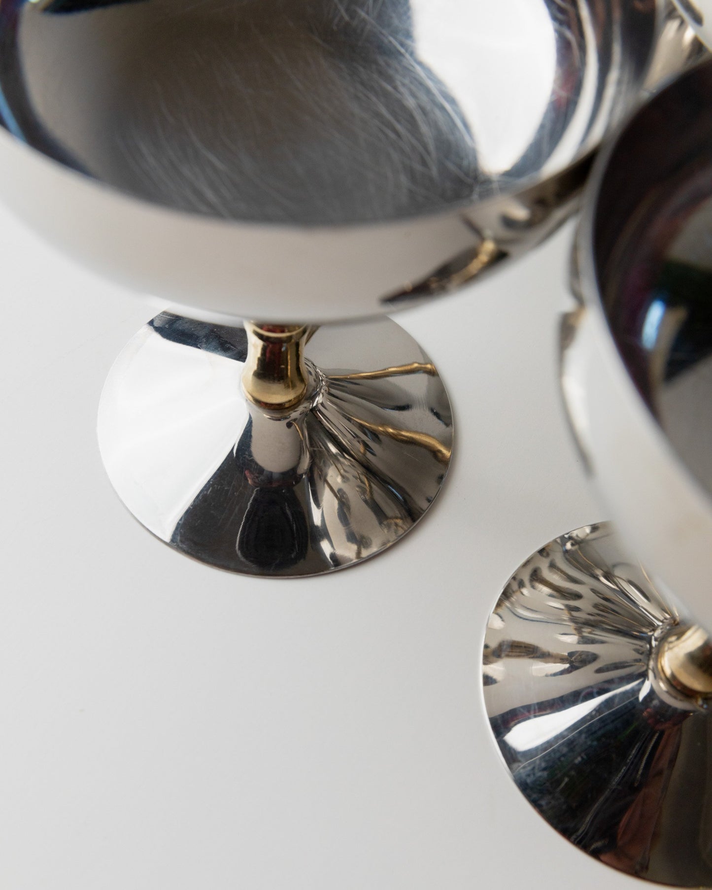 Verleihe Deinem Tisch mit diesem Set aus 6 Vintage Champagnerschalen aus Edelstahl im Bambus-Design aus den 1970er Jahren einen Hauch von italienischem Flair. Diese eleganten Schalen sind nicht nur perfekt für Eiscreme, sondern auch ideal für Cocktails und Champagner. Die goldbeschichteten Griffe in Bambusstruktur machen sie zu einem stilvollen Highlight bei jedem Anlass. Ob als Geschenk oder für besondere Anlässe, diese Schalen sind ein Muss für Liebhaber des Mid-Century-Modern-Stils.