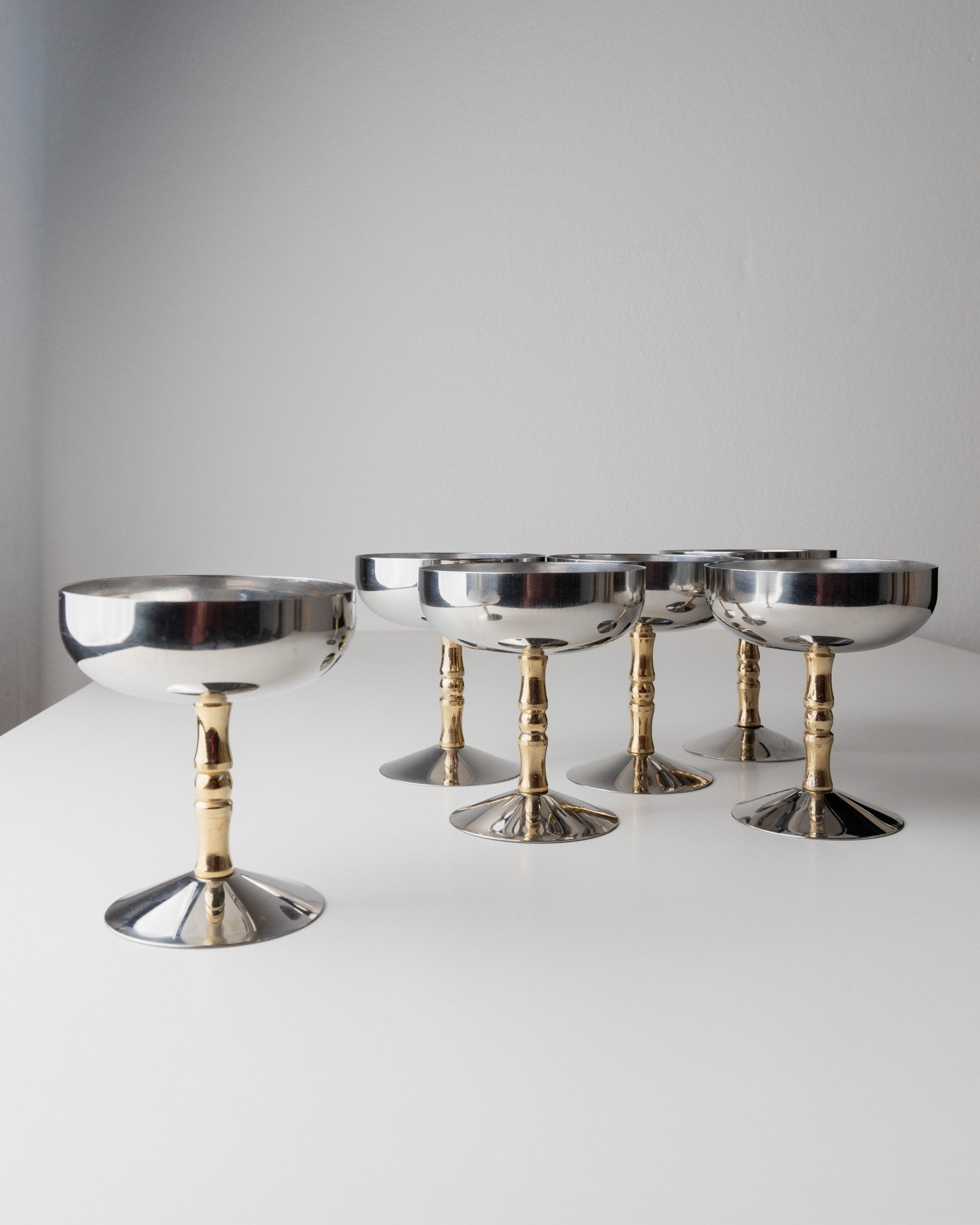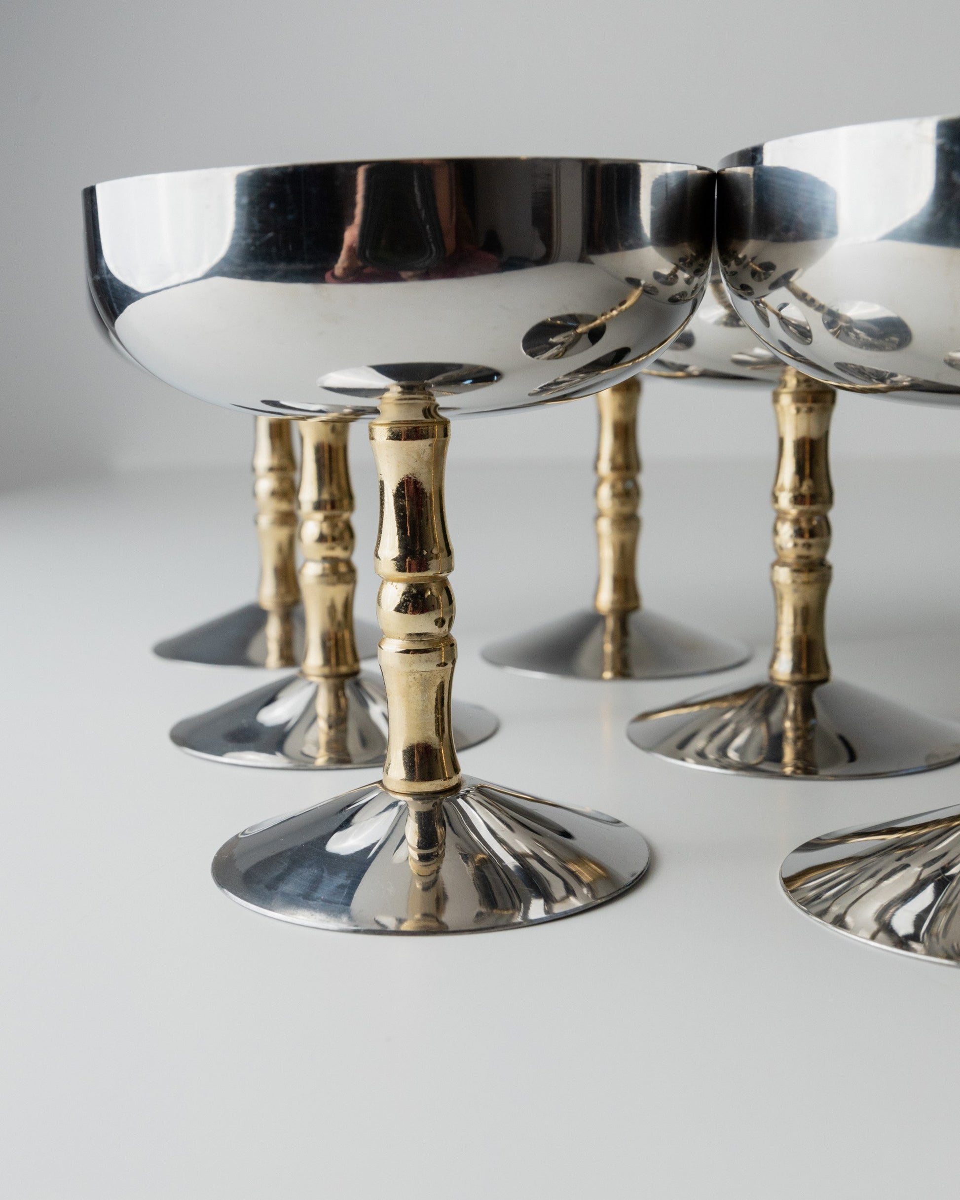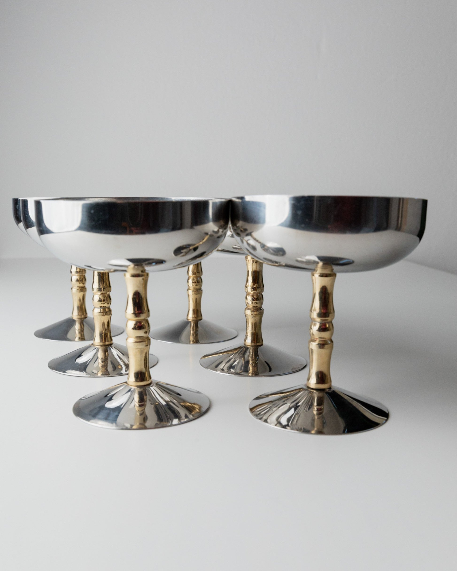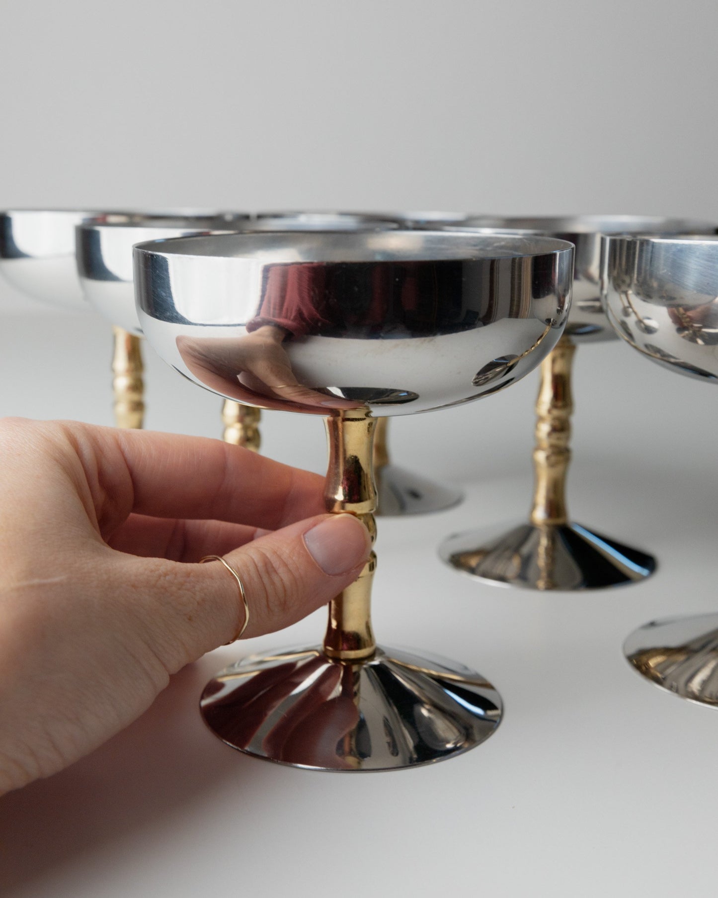 Vintage Champagnerschale Edelstahl Bambus Italien 1970er Set von 6