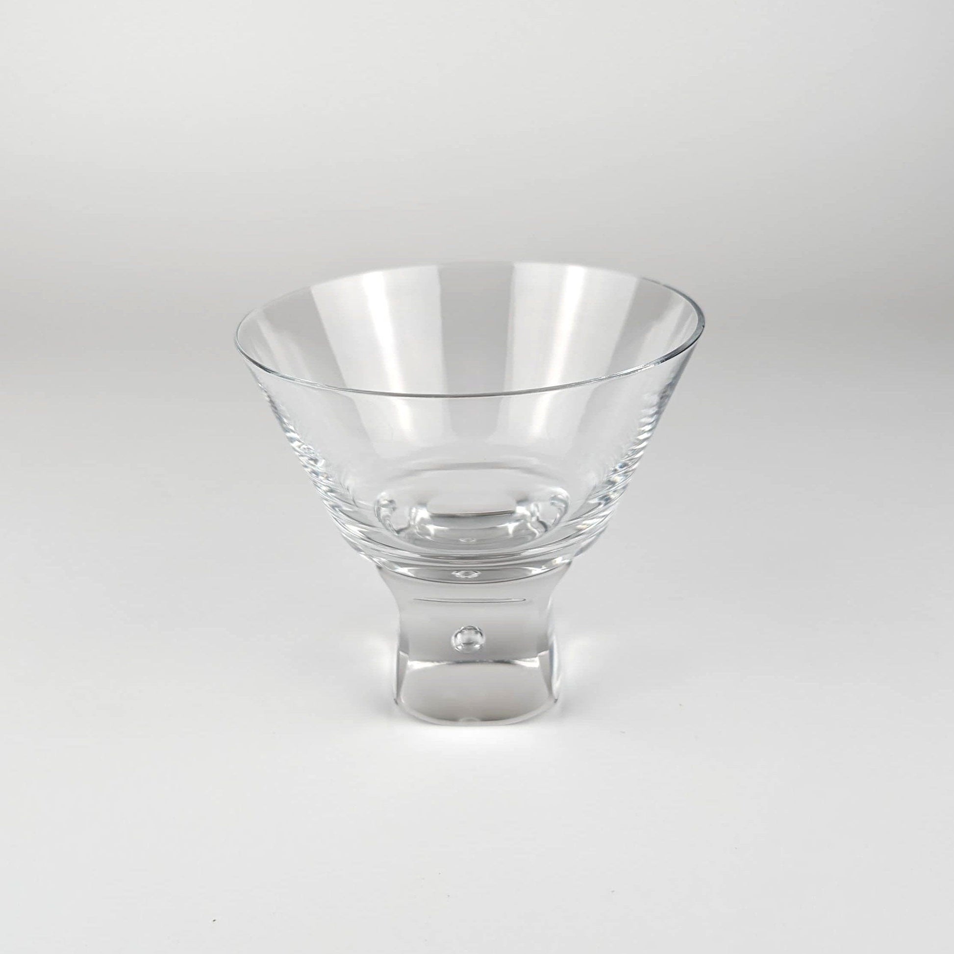 Entdecke ein außergewöhnliches Set aus fünf Vintage Dessert- und Eisschalen aus den 1970er Jahren, entworfen von dem renommierten Designer Sergio Asti für Arnolfo di Cambio in Italien. Diese Schalen vereinen Space Age Ästhetik mit mid century modern Design und sind ein echtes Highlight für jede stilbewusste Tischkultur. Die elegante Formensprache und der stabile Standfuß machen sie nicht nur zu einem Blickfang, sondern auch zu praktischen Begleitern für Desserts, Eis, Kompott, Vorspeisen oder sogar Whiskey. Das hochwertige, geschliffene Kristallglas mit charakteristischem Lufteinschluss ("Bubble") im Fuß unterstreicht die sehr gute Qualität und das besondere Design.