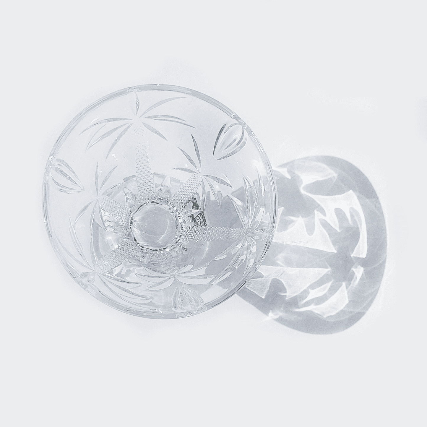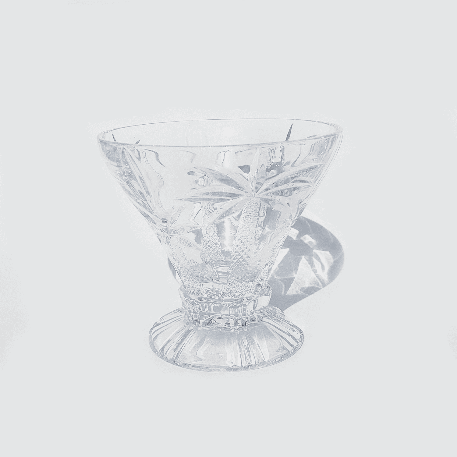 Entdecke die zeitlose Eleganz der Vintage Dessertschale Palmito, ein Set von sechs exquisiten Kristallschalen, die jedem Dessert eine besondere Note verleihen. Diese Schalen sind nicht nur funktional, sondern auch ein stilvolles Statement für Deine Tischdekoration. Mit ihrem raffinierten Palmenmuster fangen sie das Licht auf faszinierende Weise ein und schaffen eine einladende Atmosphäre. Perfekt für besondere Anlässe oder um Deinem Alltag einen Hauch von Luxus zu verleihen.
