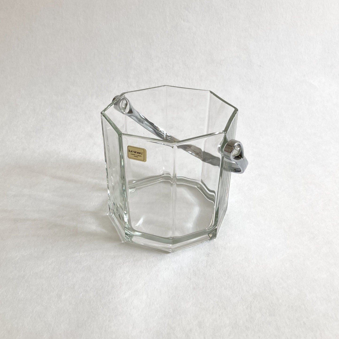 Entdecke den Charme vergangener Zeiten mit diesem exquisiten Vintage Eiswürfelbehälter von Luminarc France. Perfekt für Liebhaber des Mid-Century Modern Designs, vereint dieser Behälter Funktionalität mit einem Hauch von Nostalgie. Die Kombination aus Glas und einem eleganten Metallhenkel verleiht ihm eine zeitlose Ästhetik, die in jeder Küche oder Bar zum Blickfang wird. Luminarc, bekannt für seine hochwertigen Glaswaren, steht für sehr gute Qualität und stilvolles Design.