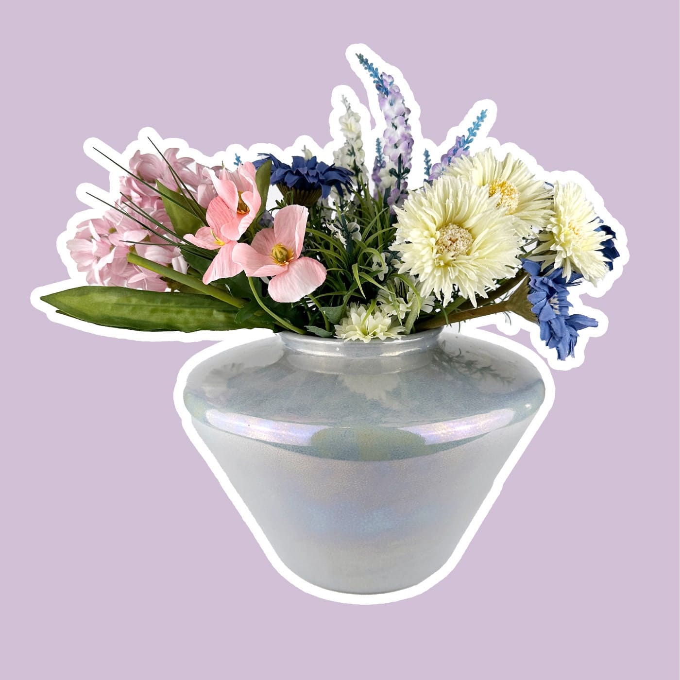 Vintage Keramikvase Grau Irisierend Art Deco 80er Jahre