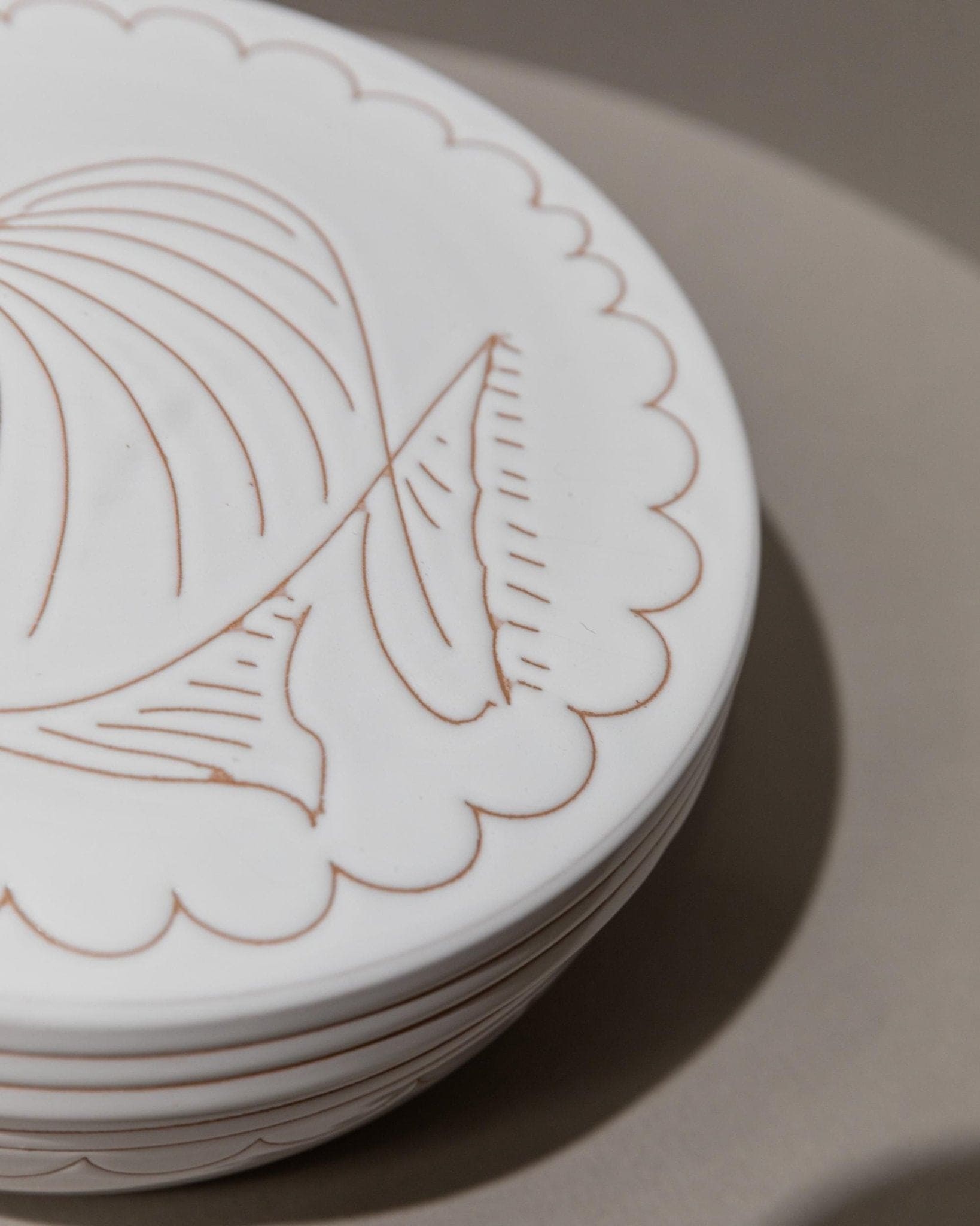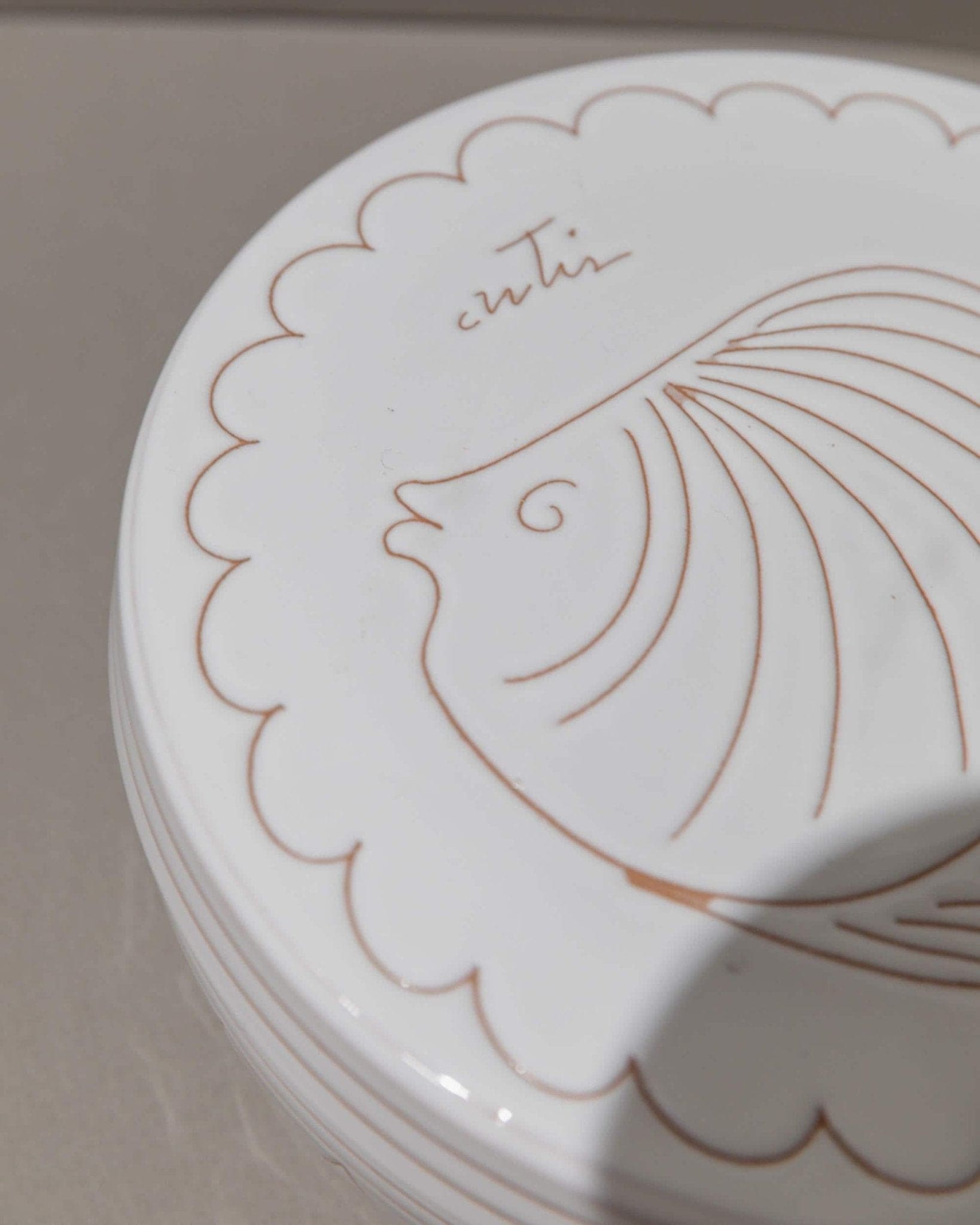 Vintage Keramikschale mit Deckel, handgeschnitzt, nautisches Motiv, Italien 1970er