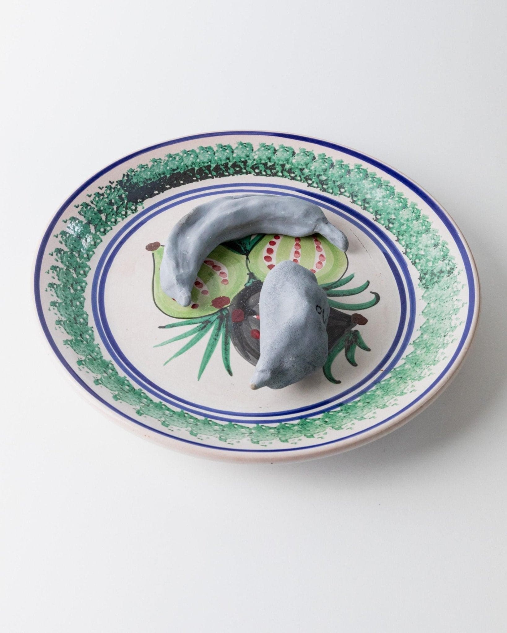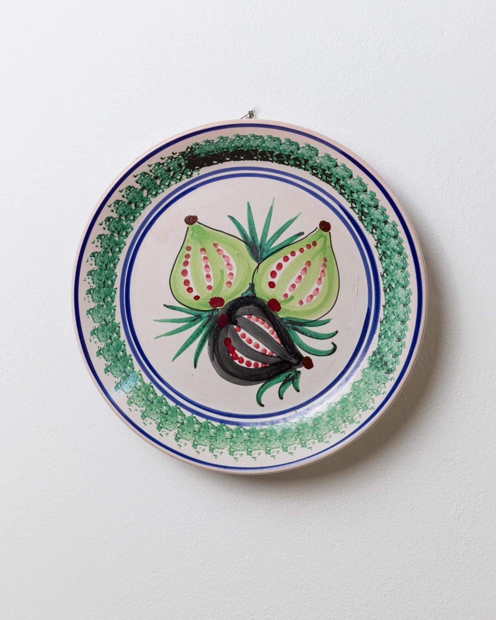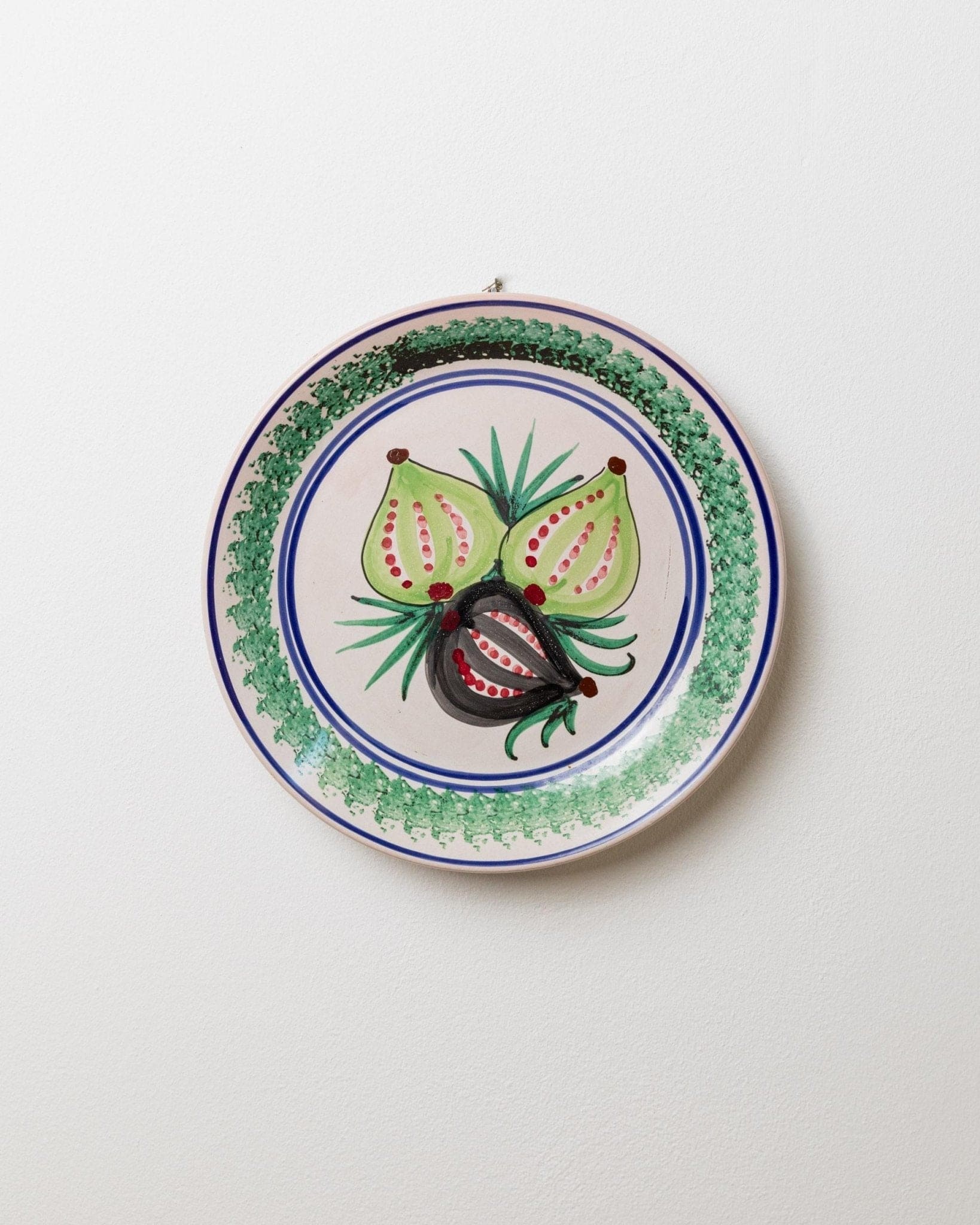 - Vintage Keramikteller, handbemalt mit Fruchtmotiv (3 Feigen)