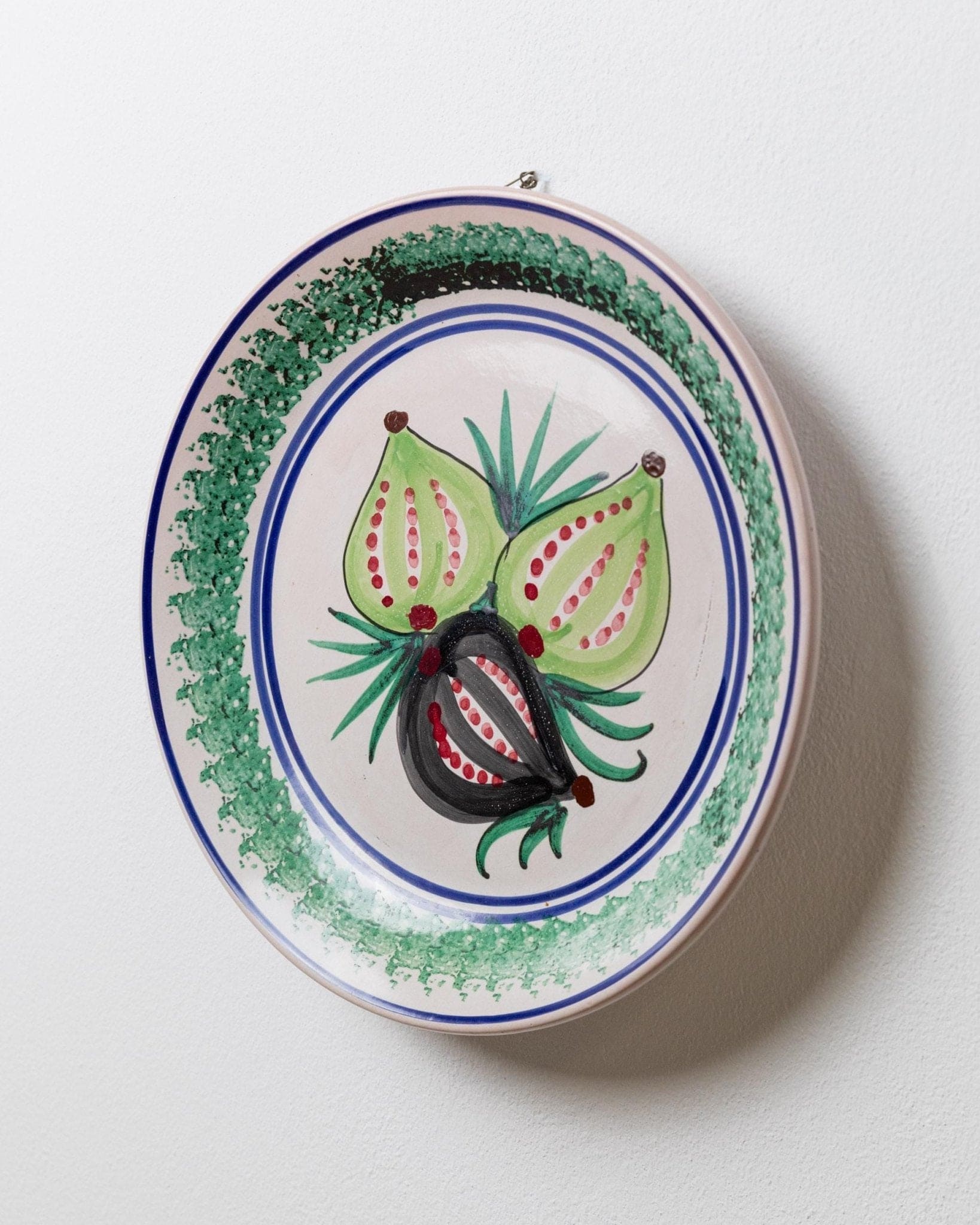 Vintage Keramikteller handbemalt Fruchtmotiv 3 Feigen Sizilien 1960er retro