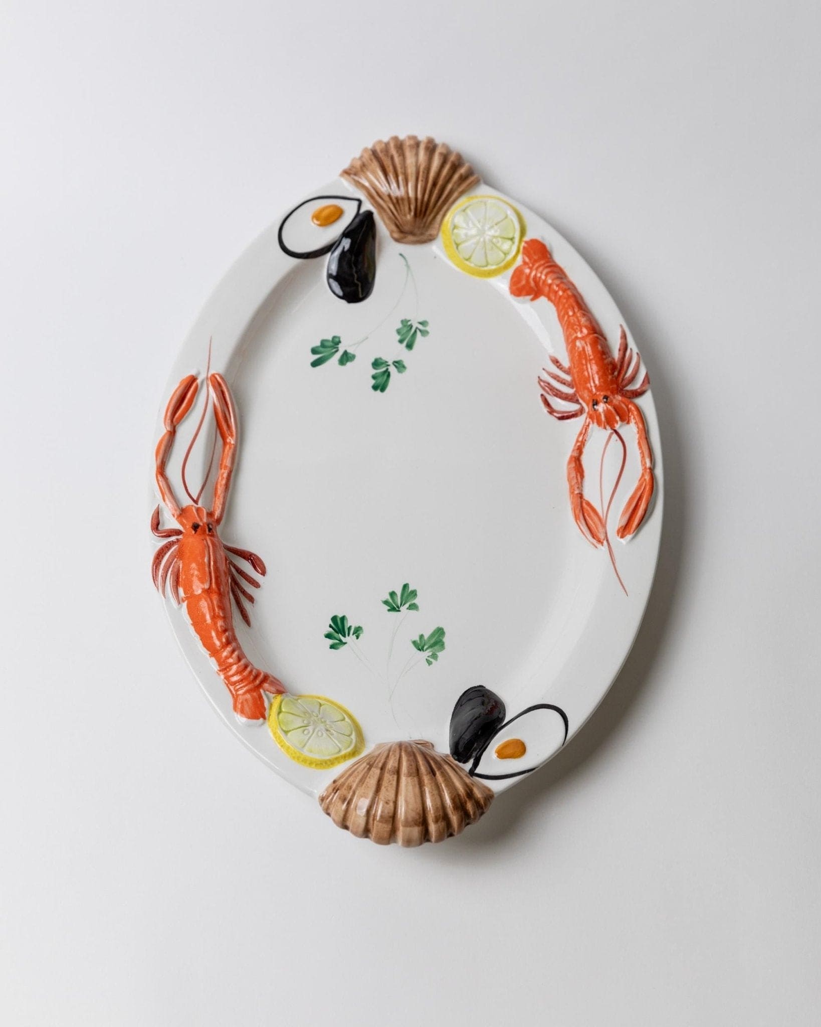 Entdecke den Charme der 1980er Jahre mit diesem großen, ovalen Vintage Keramikteller von Siro aus Italien. Das kunstvolle Meeresfrüchte-Relief und die elegante weiße Oberfläche machen dieses Stück zu einem echten Blickfang – ob als Servierplatte für Meeresfrüchte oder als dekoratives Wandobjekt in Deiner Küche oder im Esszimmer. Die hochwertige Verarbeitung und das zeitlose Design spiegeln die sehr gute Qualität wider, für die Siro bekannt ist. Ein Must-have für Sammler und Liebhaber von mid century modern und Space Age Design.