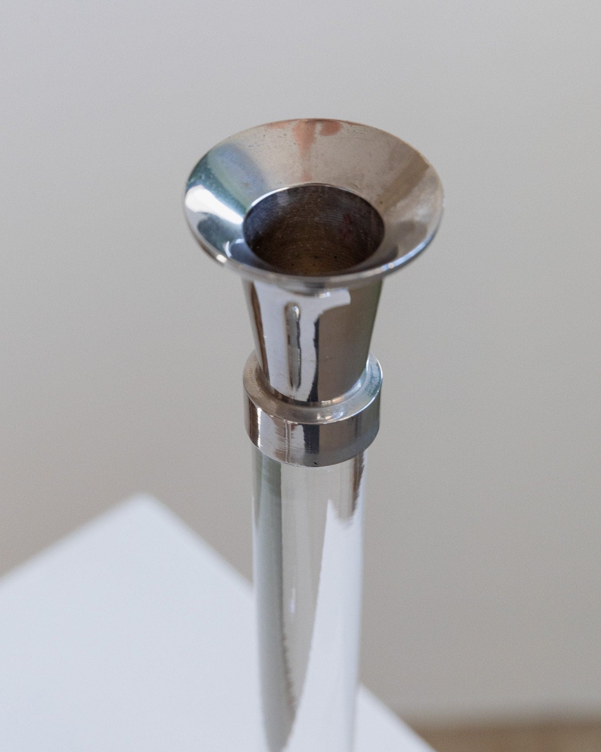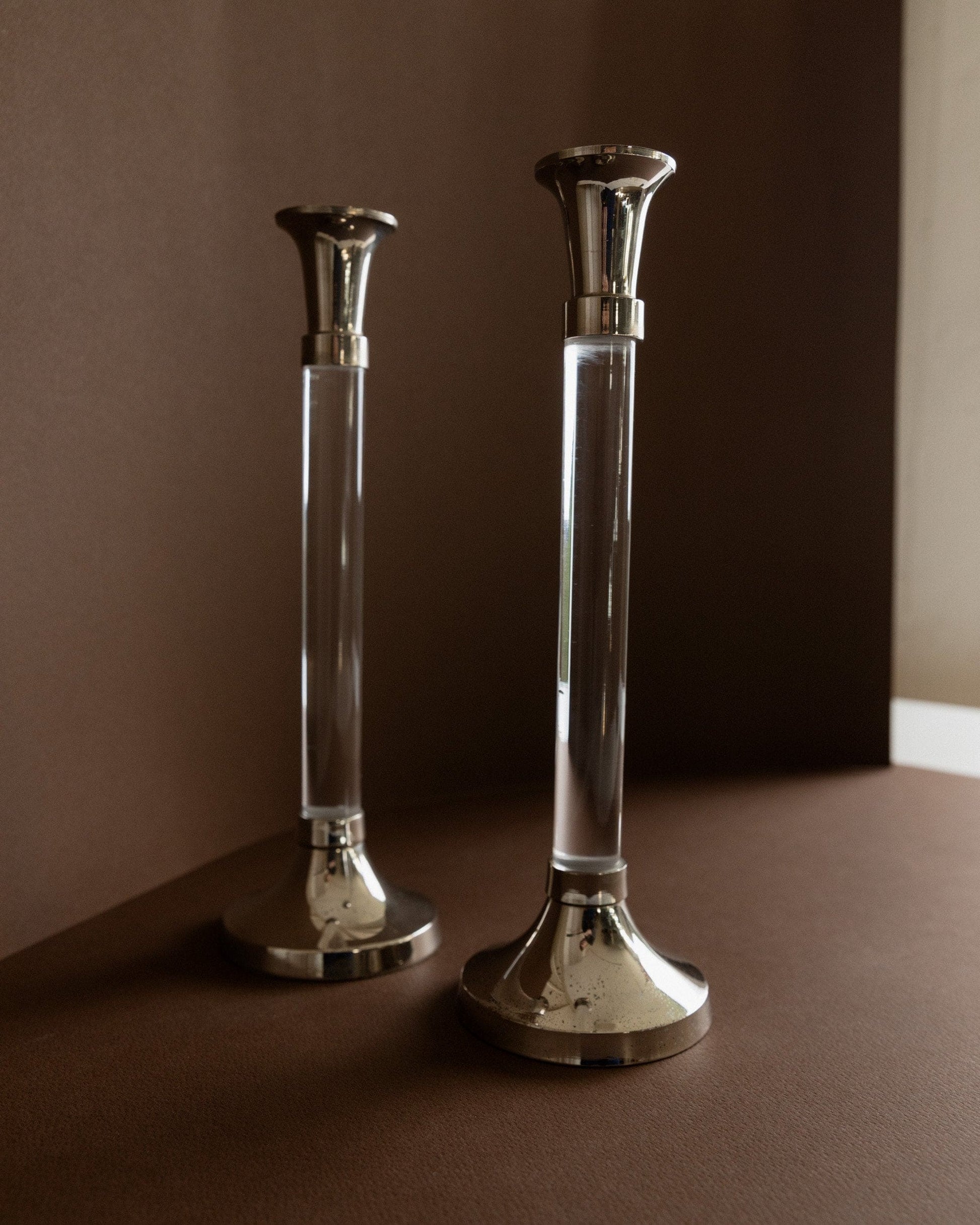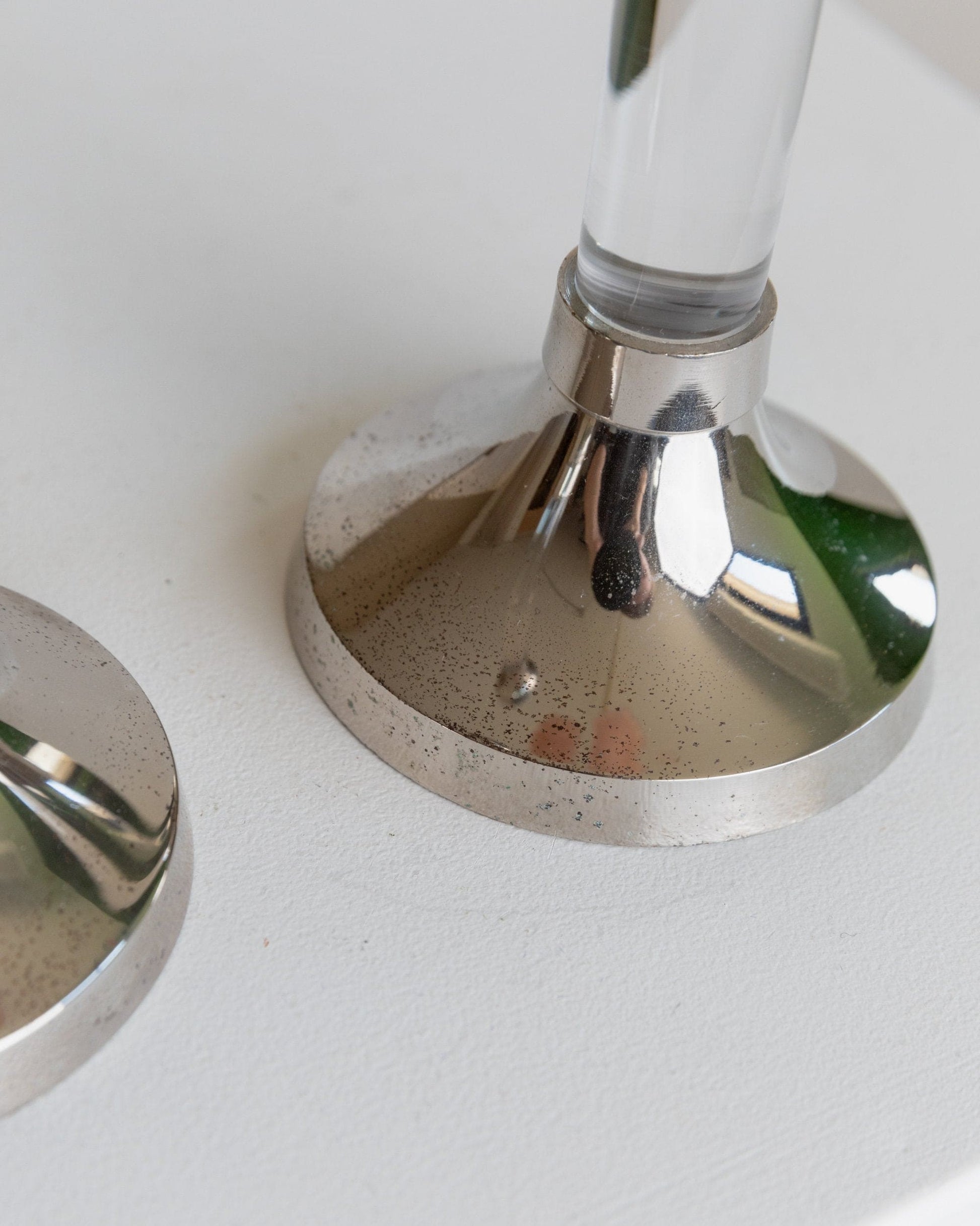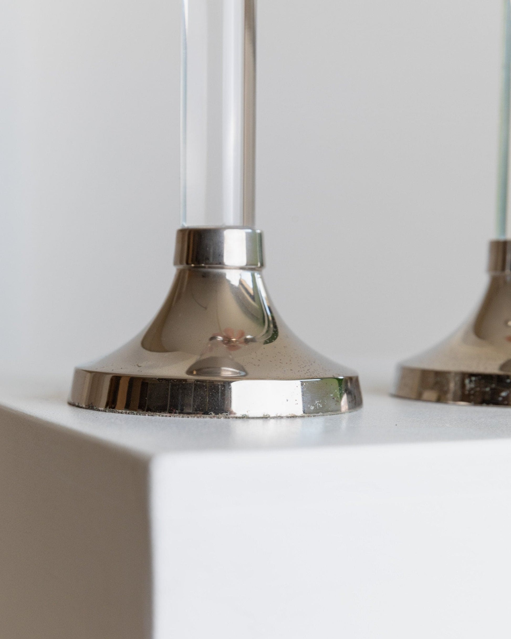 Vintage Kerzenhalter Acrylglas und verchromtes Metall klassisches Design Italien 1970er