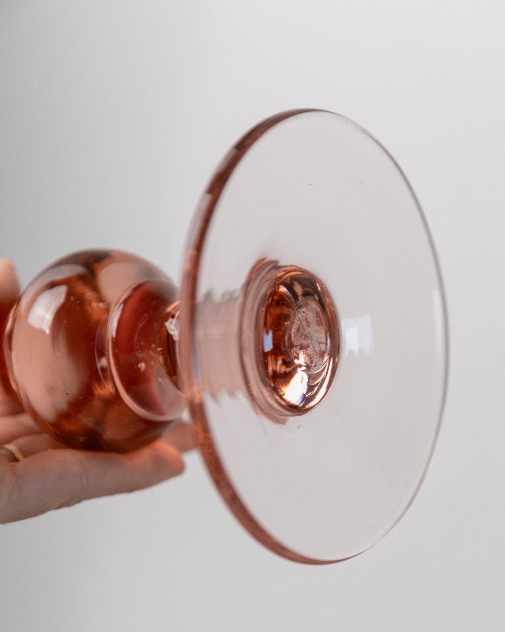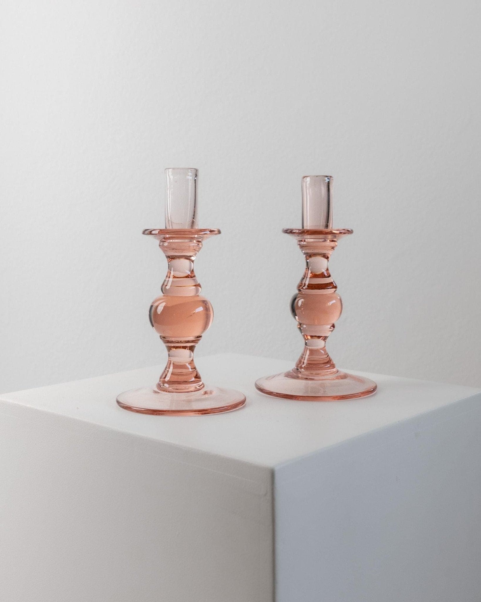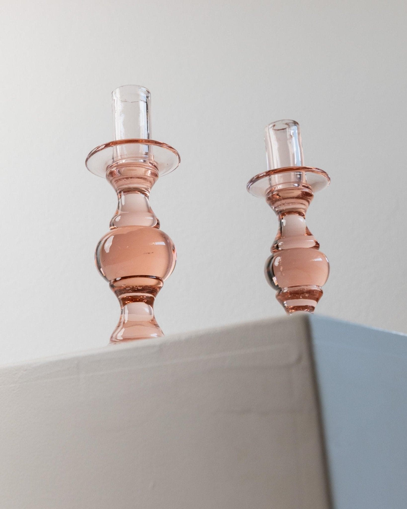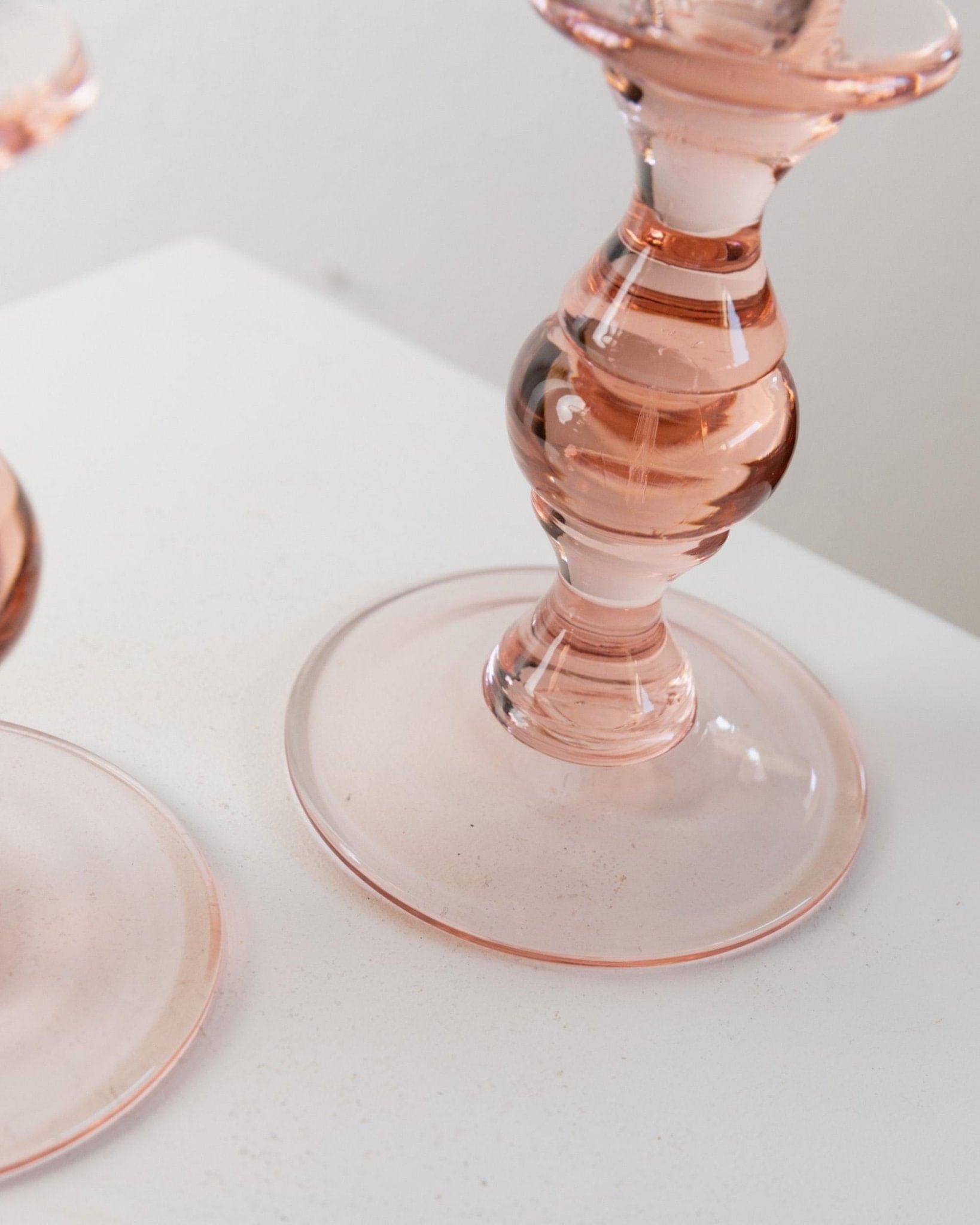 Vintage Kerzenhalter Glas Pfirsich Italien 1980er Retro Set von 2